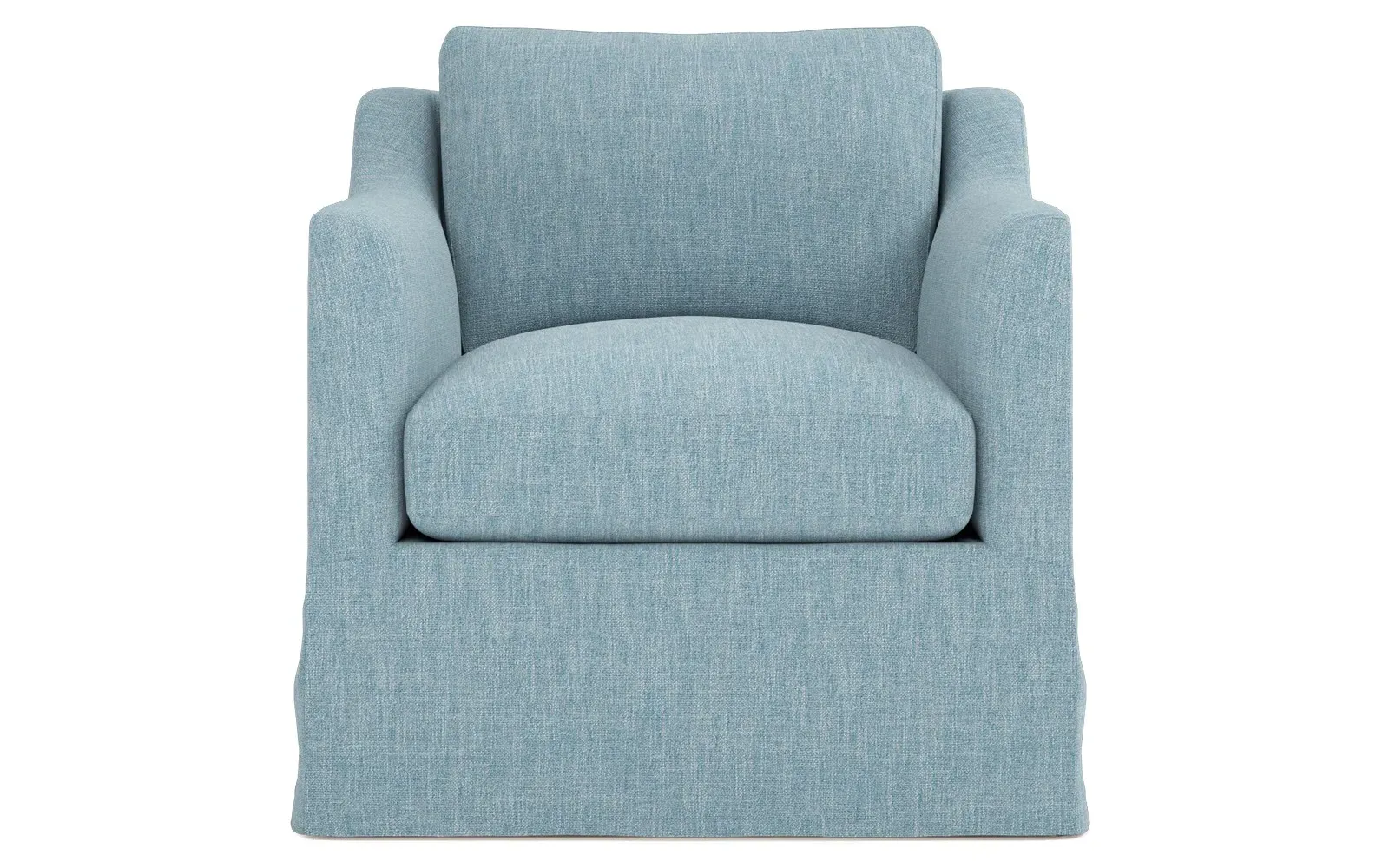 Gently curved lines form a casual silhouette on the Madeline slipcovered swivel chair, a versatile piece that brings relaxed sophistication to any room. Soft yet supportive, the seat cushion is designed for supreme comfort, with a foam core surrounded by a blend of fiber, down, and feather fill. The loose back pillow and seat cushion make it easy to fluff and enliven the shape as needed. Choose from washable slipcover fabrics in a variety of serene hues. <b>Overall Dimensions:</b> 33" W x 36" D x 32" H. <b>Seat Dimensions:</b> 23” D x 20” H; <b>Distance Between Arms:</b> 24”; <b>Arm Height:</b> 25”. <b>Materials: </b>FSC®-certified, US-sourced, formaldehyde-free, solid kiln-dried hardwood and furniture-grade laminates. <b>Cushion Fill:</b> A CertiPUR-US® certified, high-resiliency foam core wrapped with a super soft foam layer then inserted into a channel-quilted casing filled with a blend of 50% fiber, 5% down, and 45% feather. <b>Back Fill:</b> 50% fiber, 5% down, and 45% feather blend, constructed with multiple compartments to keep materials evenly distributed and securely in place.
