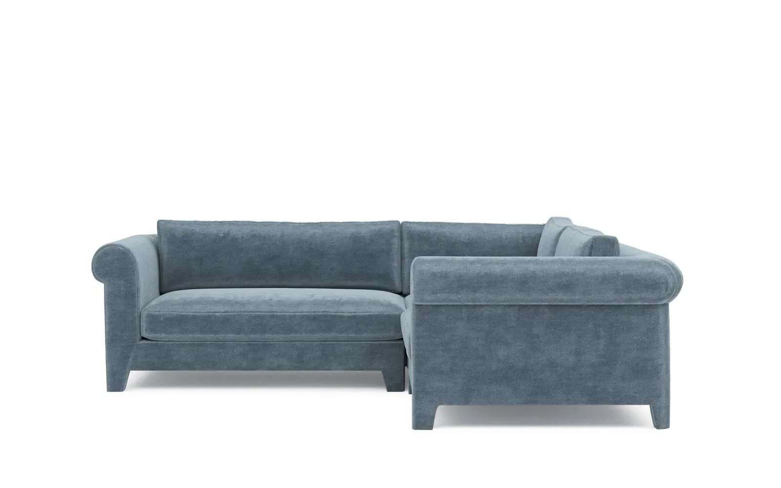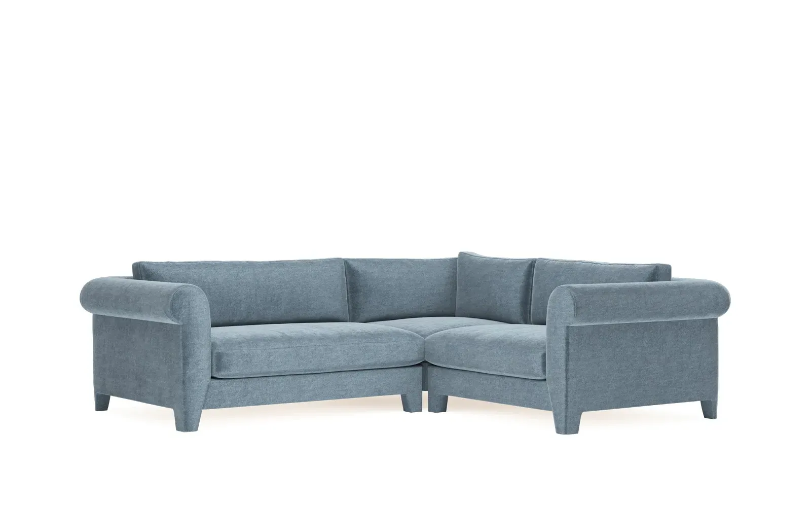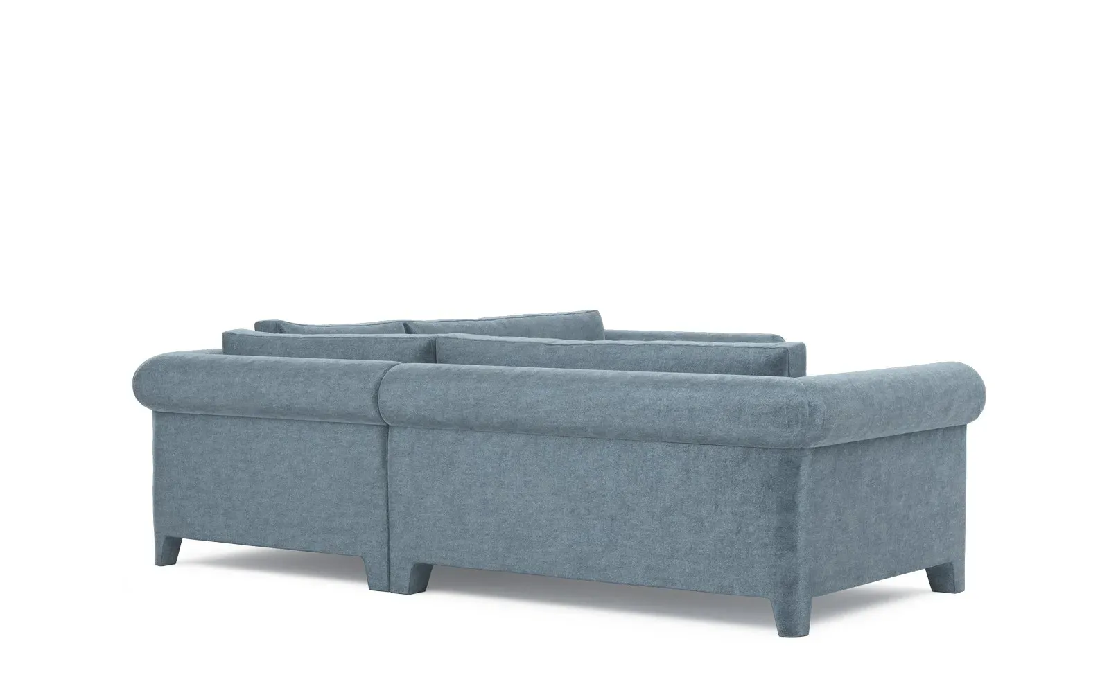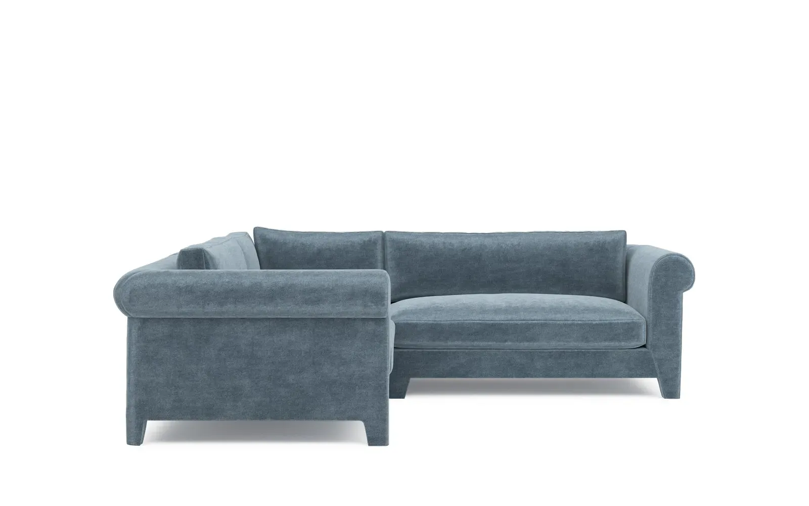 The McKinley Corner Sectional offers spacious seating with its three-piece configuration, featuring a left large one-arm sofa, corner seat, and right small one-arm sofa. Its hardwood and plywood construction provides lasting durability, while the 25-inch seat depth ensures comfortable lounging. The 4-inch legs elevate the frame for easy cleaning underneath, and the 28-inch arm height adds supportive comfort. W267 x D234 x H79 cm.