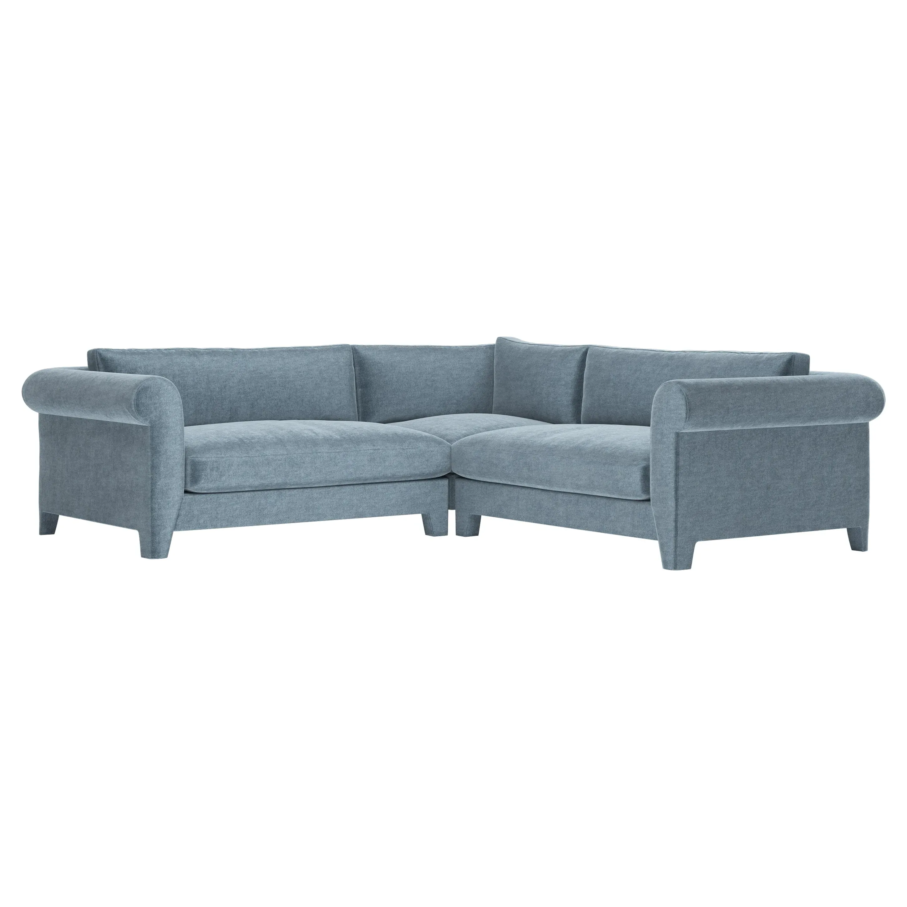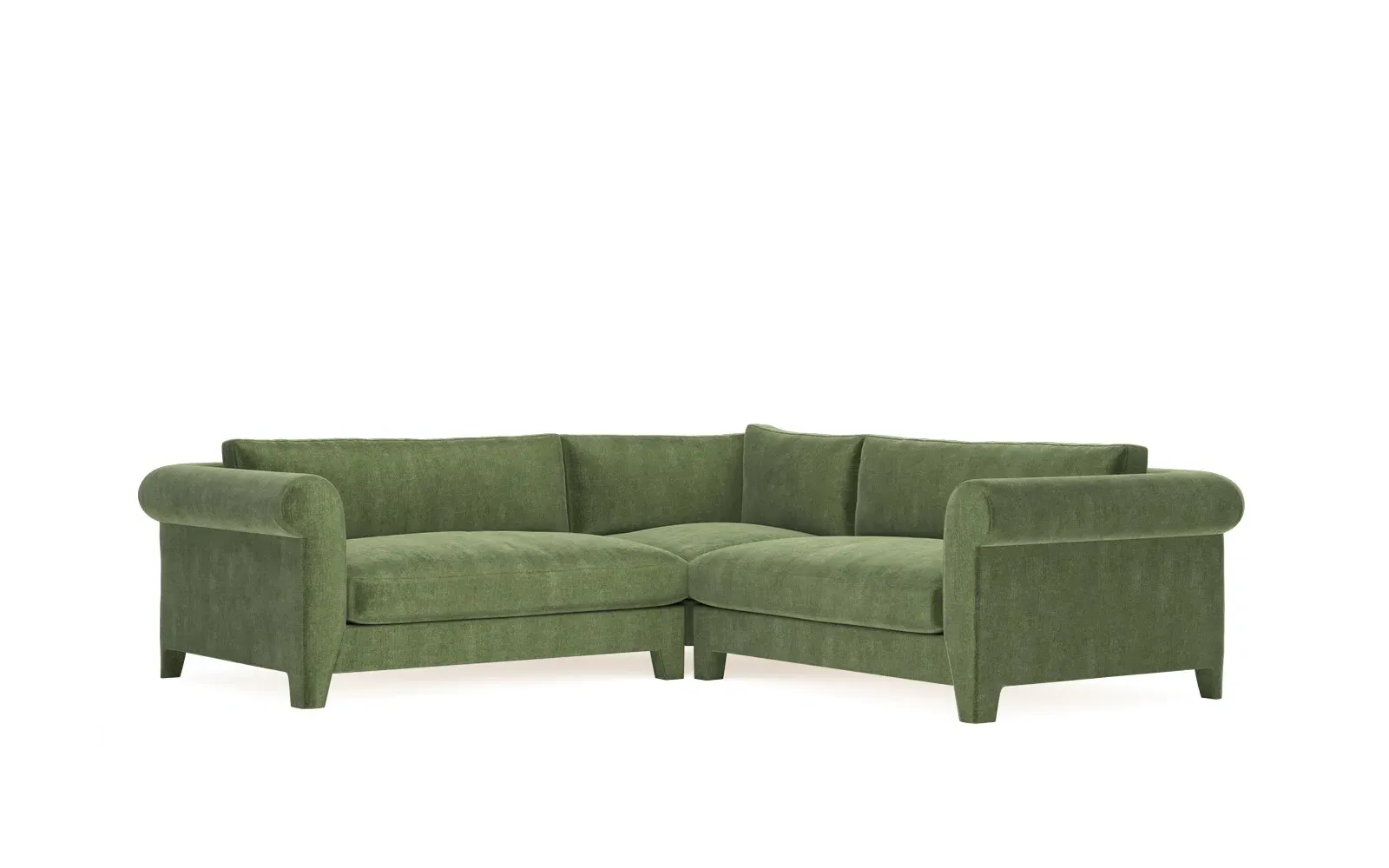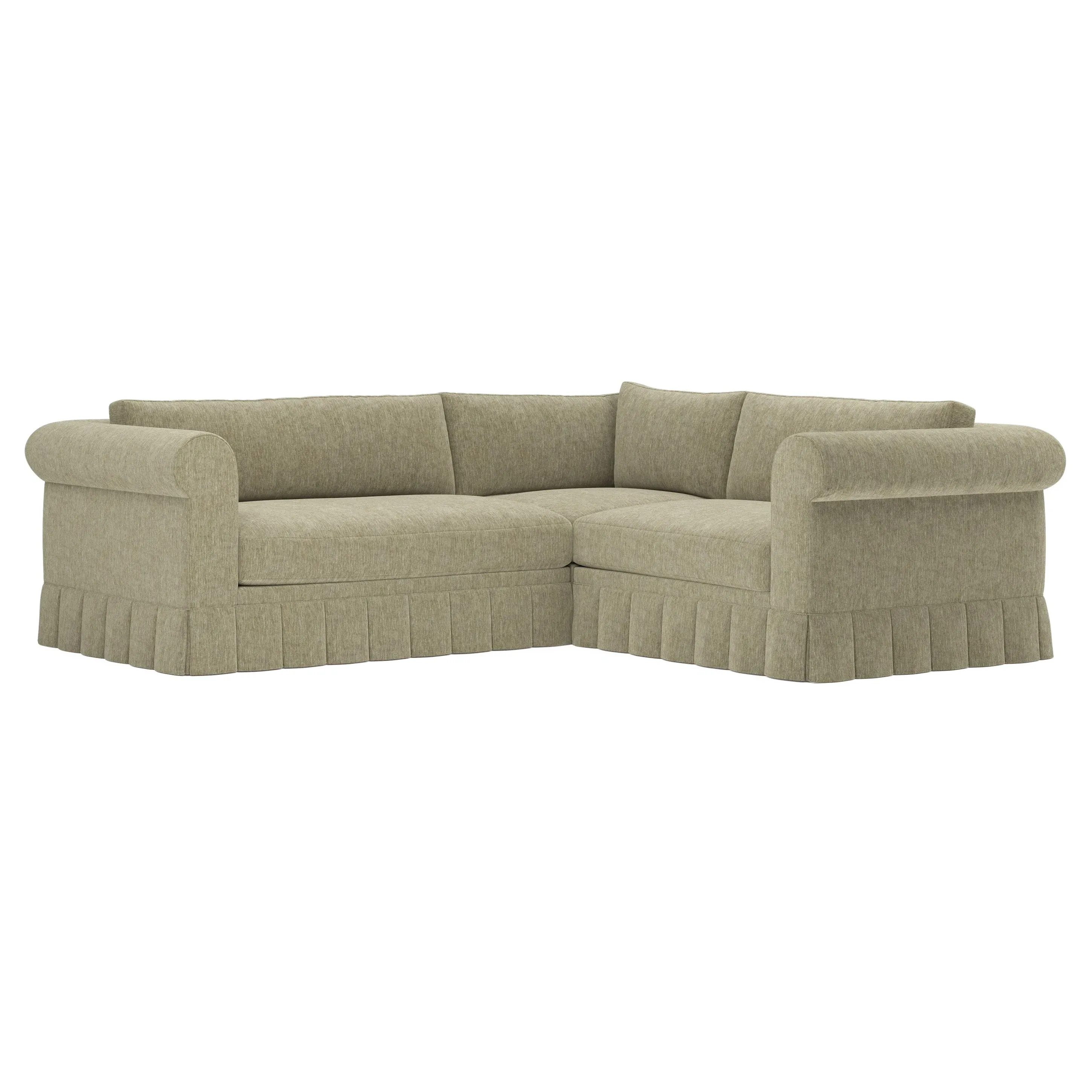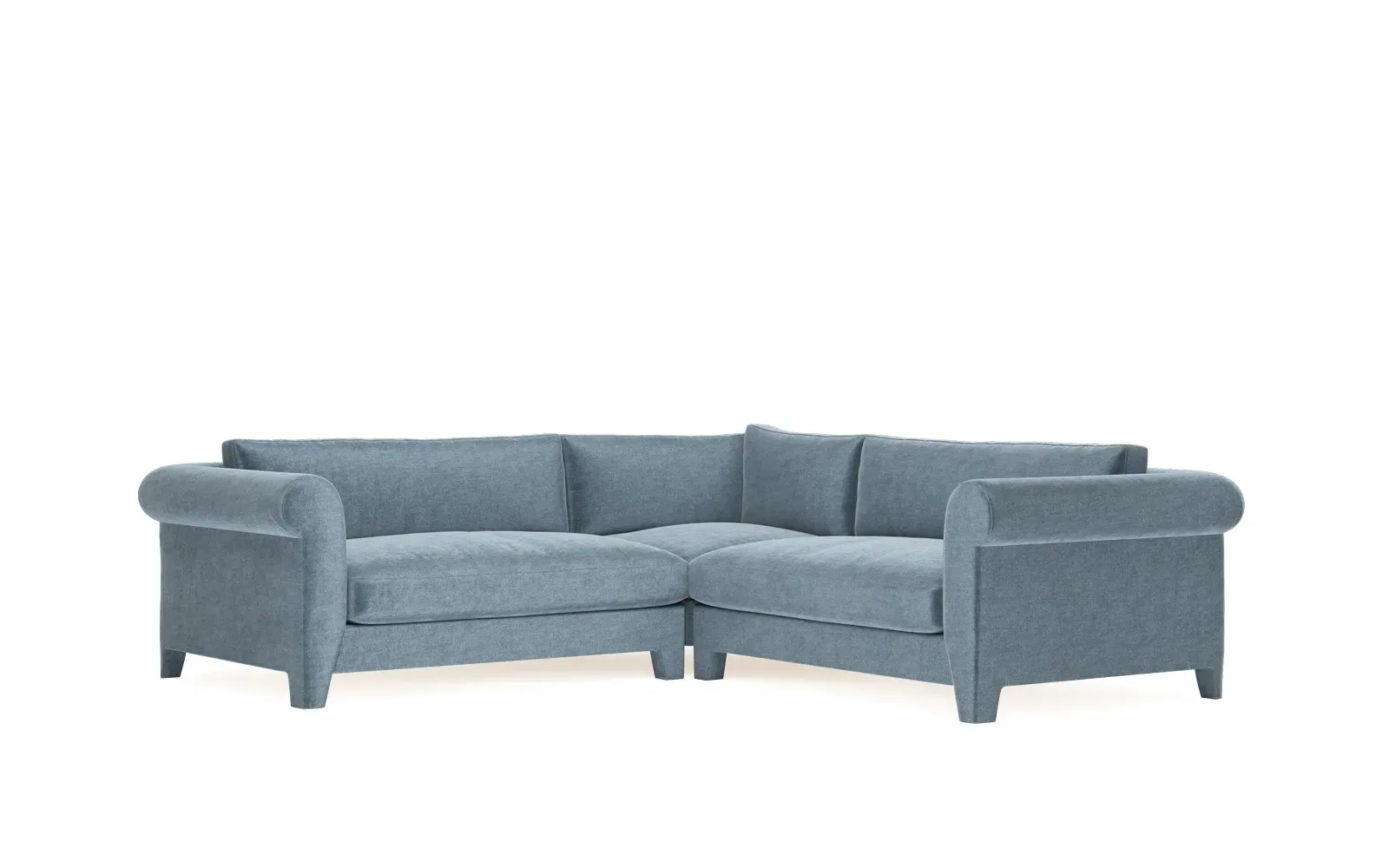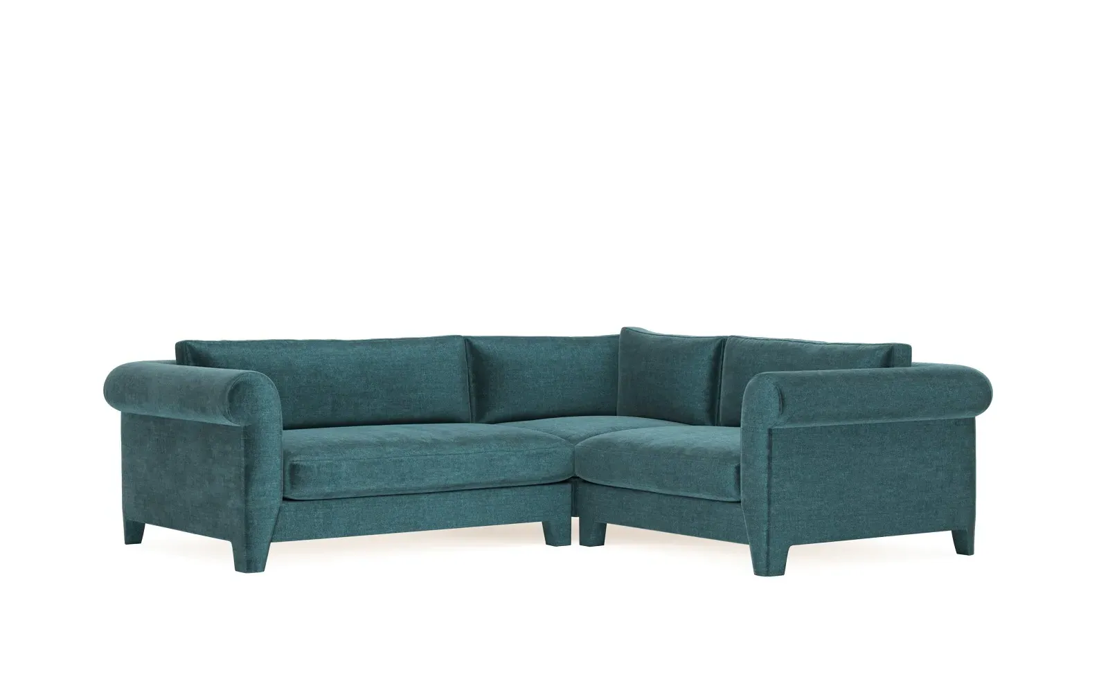 The McKinley Corner Sectional offers spacious seating with its three-piece configuration, featuring a left large one-arm sofa, corner seat, and right small one-arm sofa. Its hardwood and plywood construction provides lasting durability, while the 25-inch seat depth ensures comfortable lounging. The 4-inch legs elevate the frame for easy cleaning underneath, and the 28-inch arm height adds supportive comfort. W267 x D234 x H79 cm.