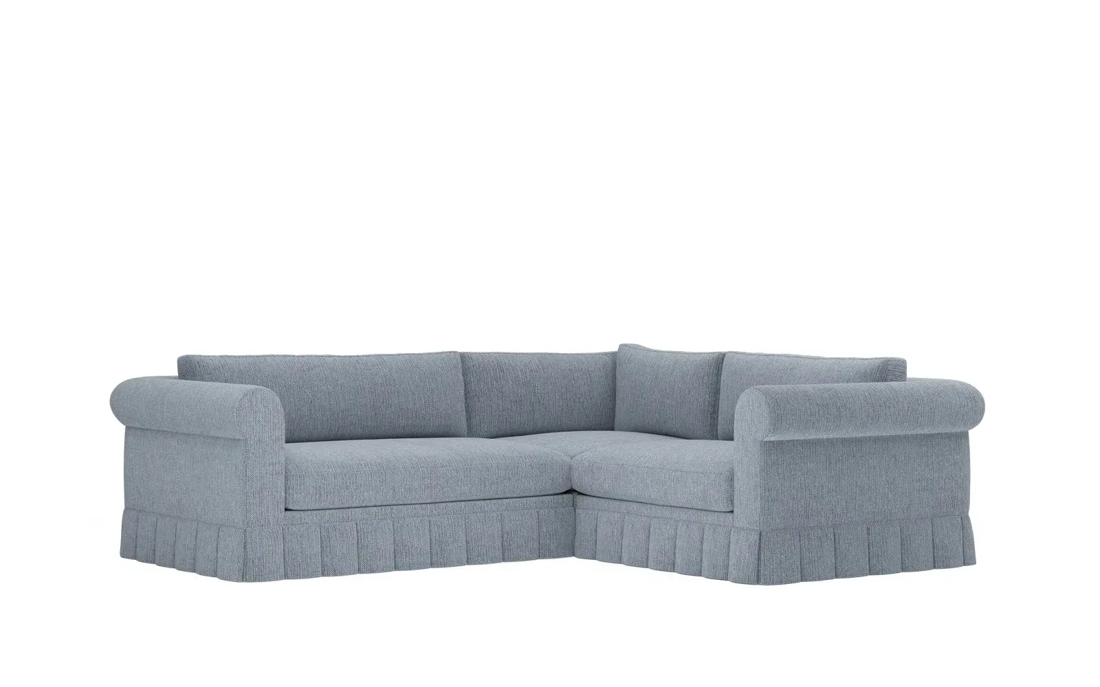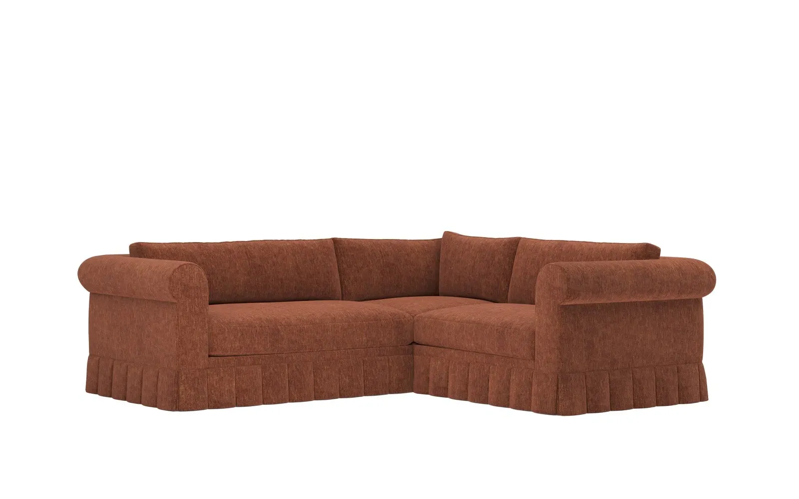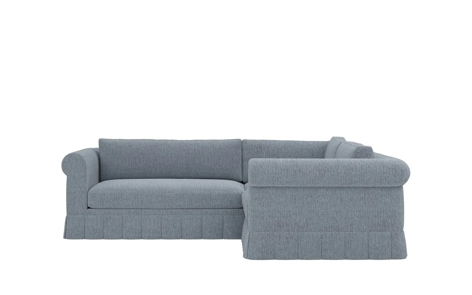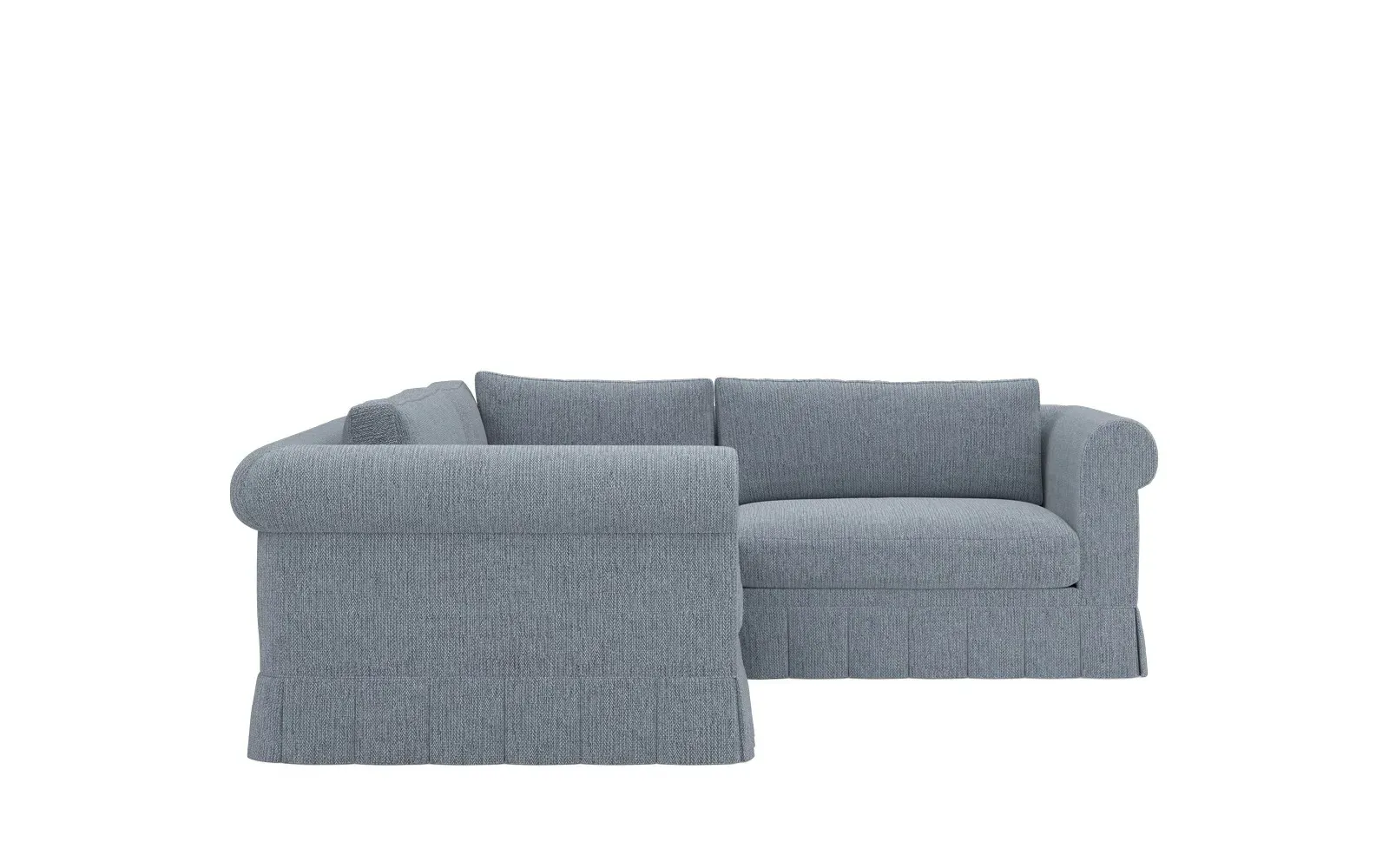 The McKinley Corner Sectional offers spacious seating with its three-piece configuration, featuring a left large one-arm sofa, corner seat, and right small one-arm sofa. Its hardwood and plywood construction provides lasting durability, while the 25-inch seat depth ensures comfortable lounging. The 4-inch legs elevate the frame for easy cleaning underneath, and the 28-inch arm height adds supportive comfort. W267 x D234 x H79 cm.