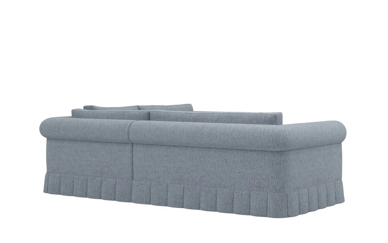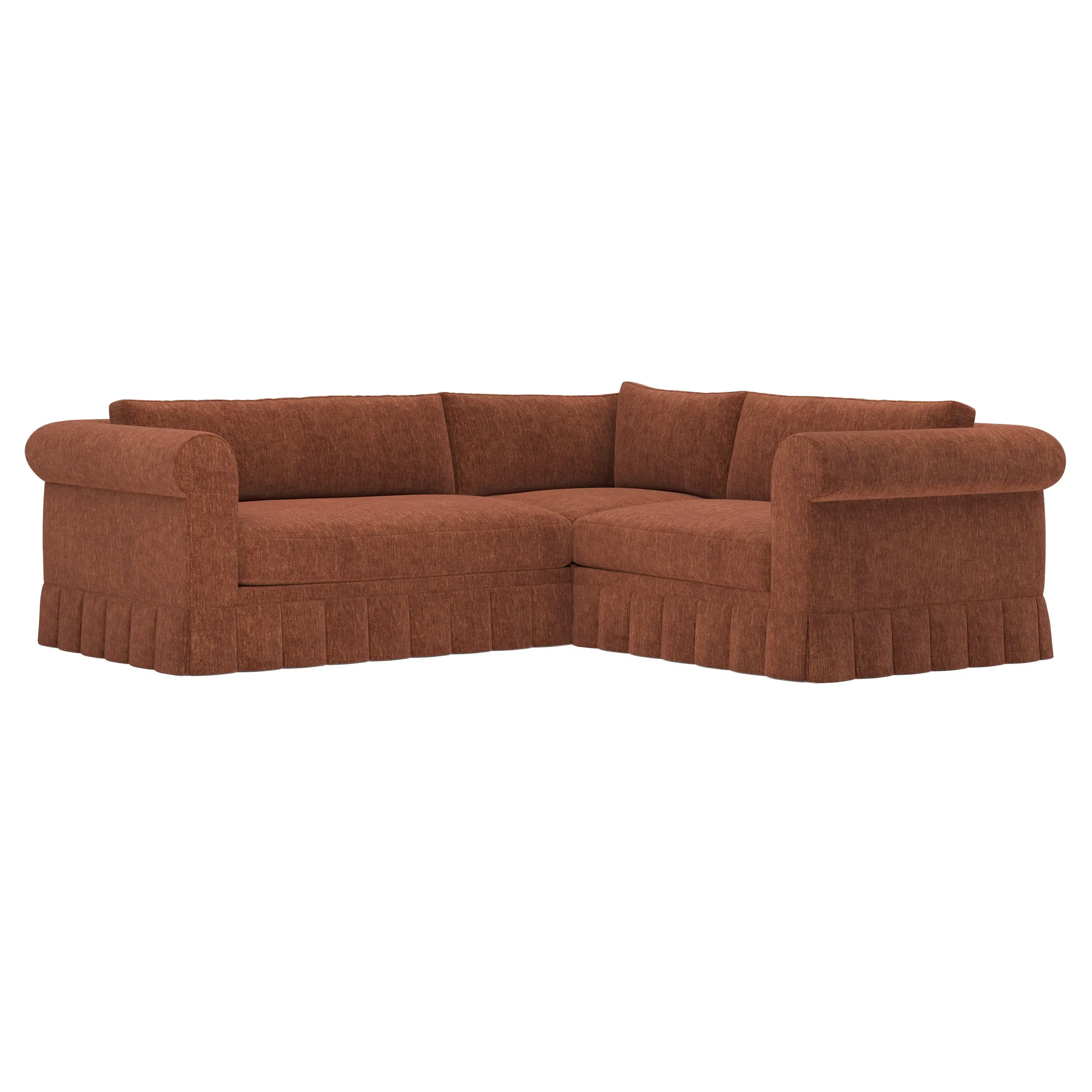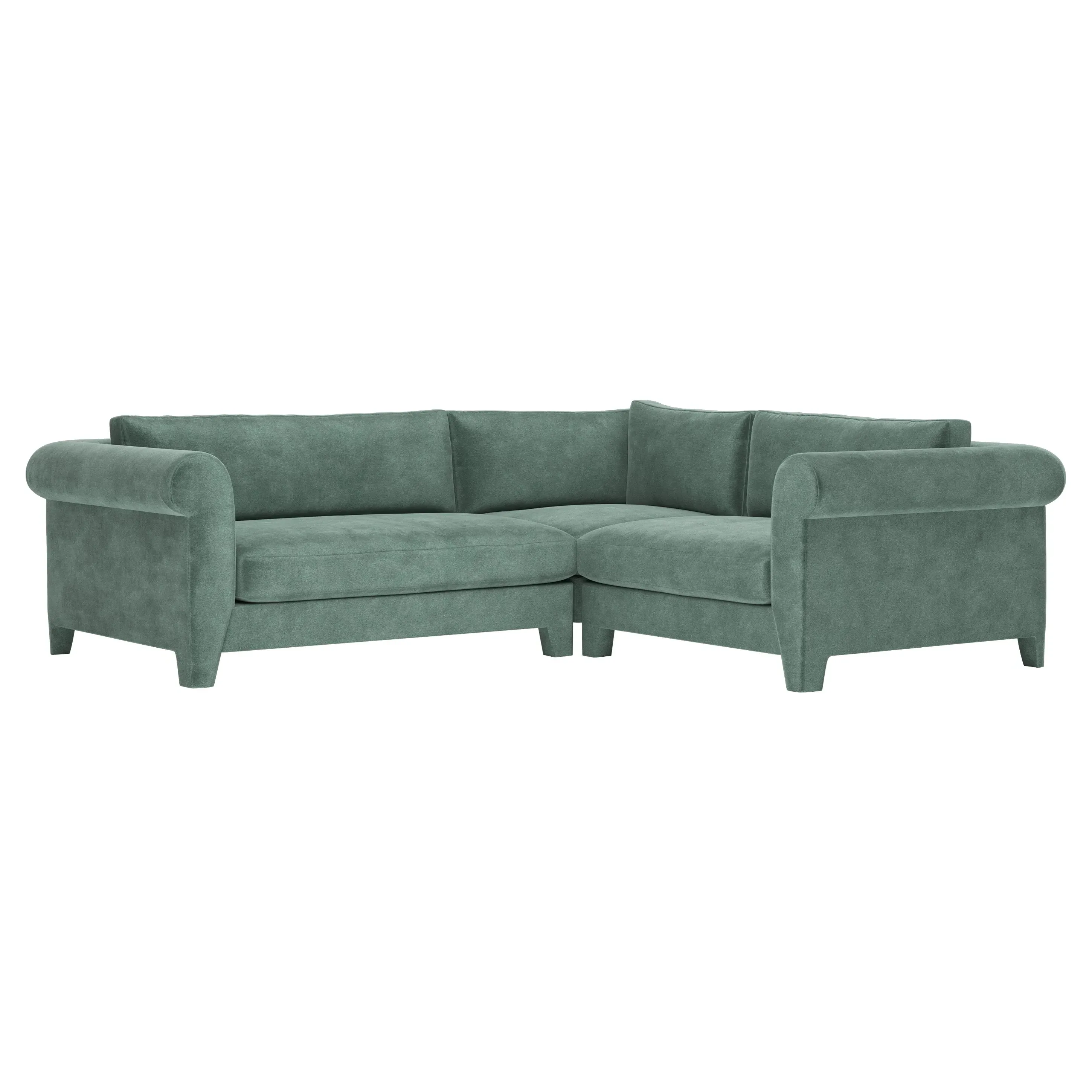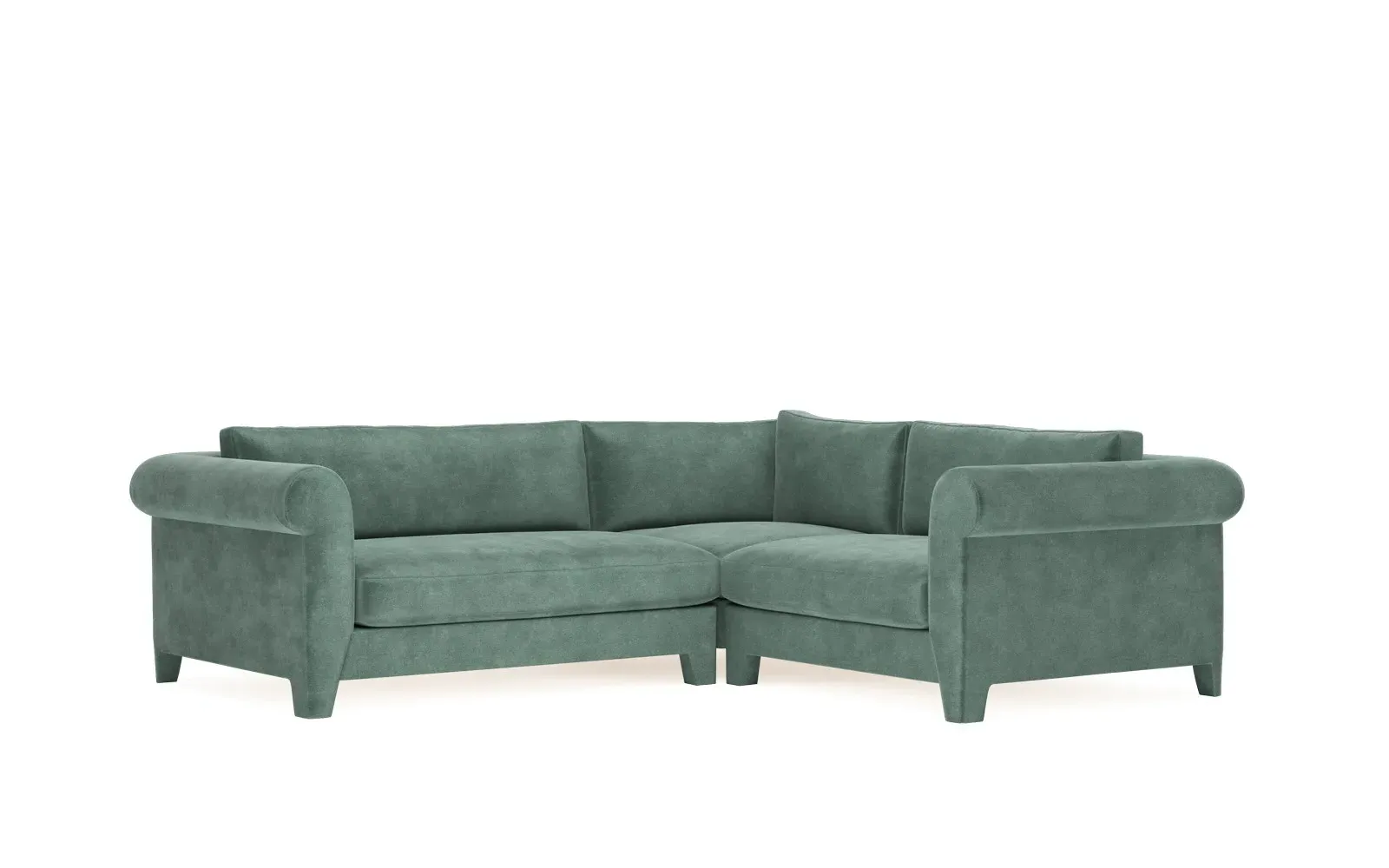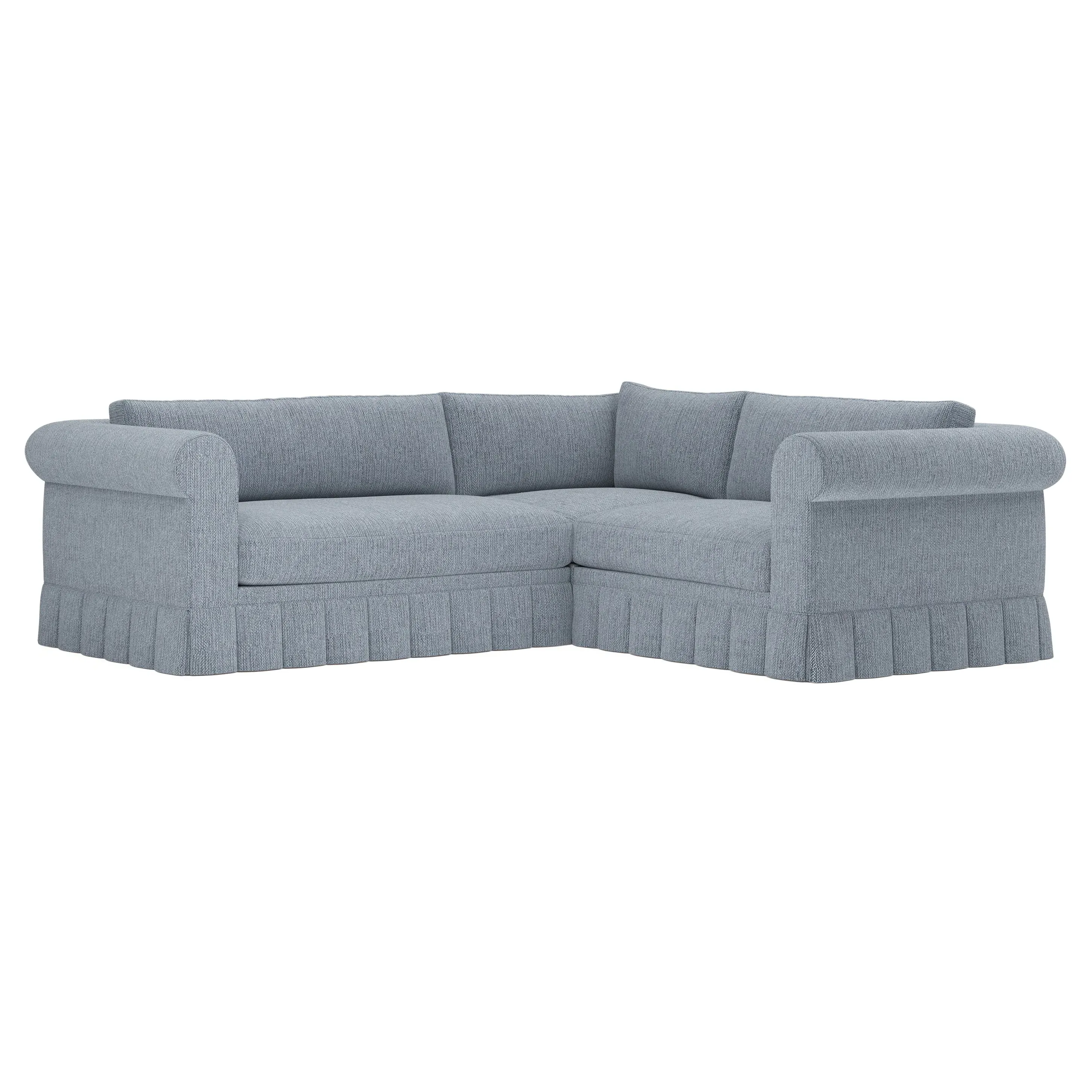 The McKinley Corner Sectional offers spacious seating with its three-piece configuration, featuring a left large one-arm sofa, corner seat, and right small one-arm sofa. Its hardwood and plywood construction provides lasting durability, while the 25-inch seat depth ensures comfortable lounging. The 4-inch legs elevate the frame for easy cleaning underneath, and the 28-inch arm height adds supportive comfort. W267 x D234 x H79 cm.