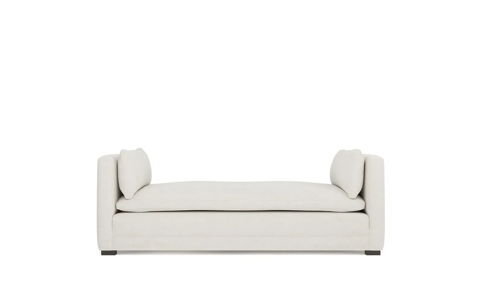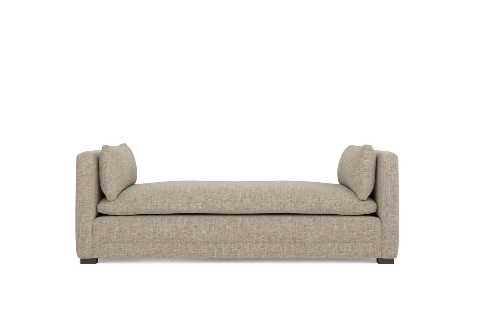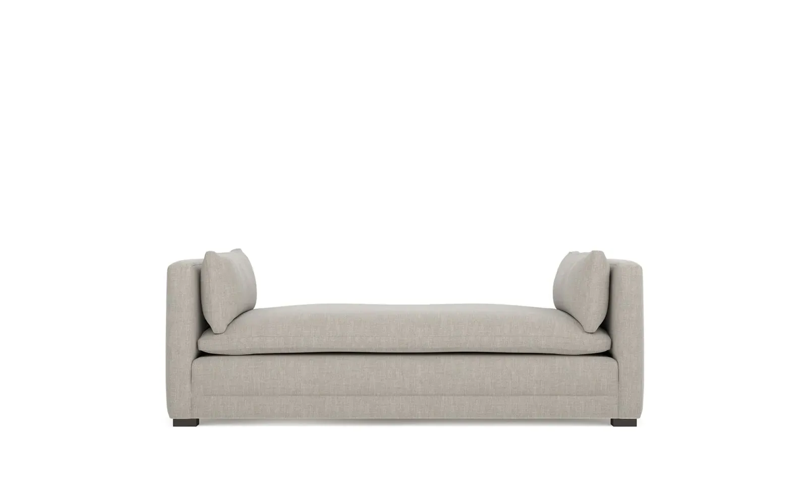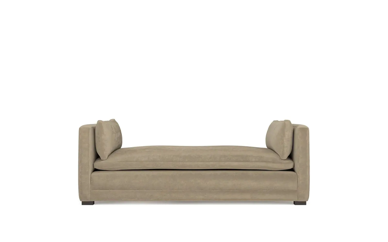 Perfect for a bedroom or living room, the Olivia daybed invites you to unwind with a good book or cozy up for an intimate conversation. Gracious details include classic track arms, plush bolster pillows, and low wood legs, elevating the chic silhouette. Incredibly soft and extraordinarily comfortable, the cloud-like cushion features a foam core surrounded by a blend of fiber, down, and feather fill. Choose from a variety of upholstery options, including linen, velvet, and performance fabrics. <b>Overall Dimensions:</b> 81" W x 37" D x 31" H. <b>Seat Height:</b> 20”; <b>Distance Between Arms:</b> 53”; <b>Arm Height:</b> 29”; <b>Leg Height:</b> 1 ¼”. <b>Materials:</b> FSC®-certified, US-sourced, formaldehyde-free solid kiln-dried hardwood and furniture-grade laminates. <b>Material FInish:</b> Espresso legs. <b>Cushion Fill:</b> A CertiPUR-US® certified, high-resiliency foam core wrapped with a super soft foam layer then inserted into a channel-quilted casing filled with a blend of 50% fiber, 5% down, and 45% feather.