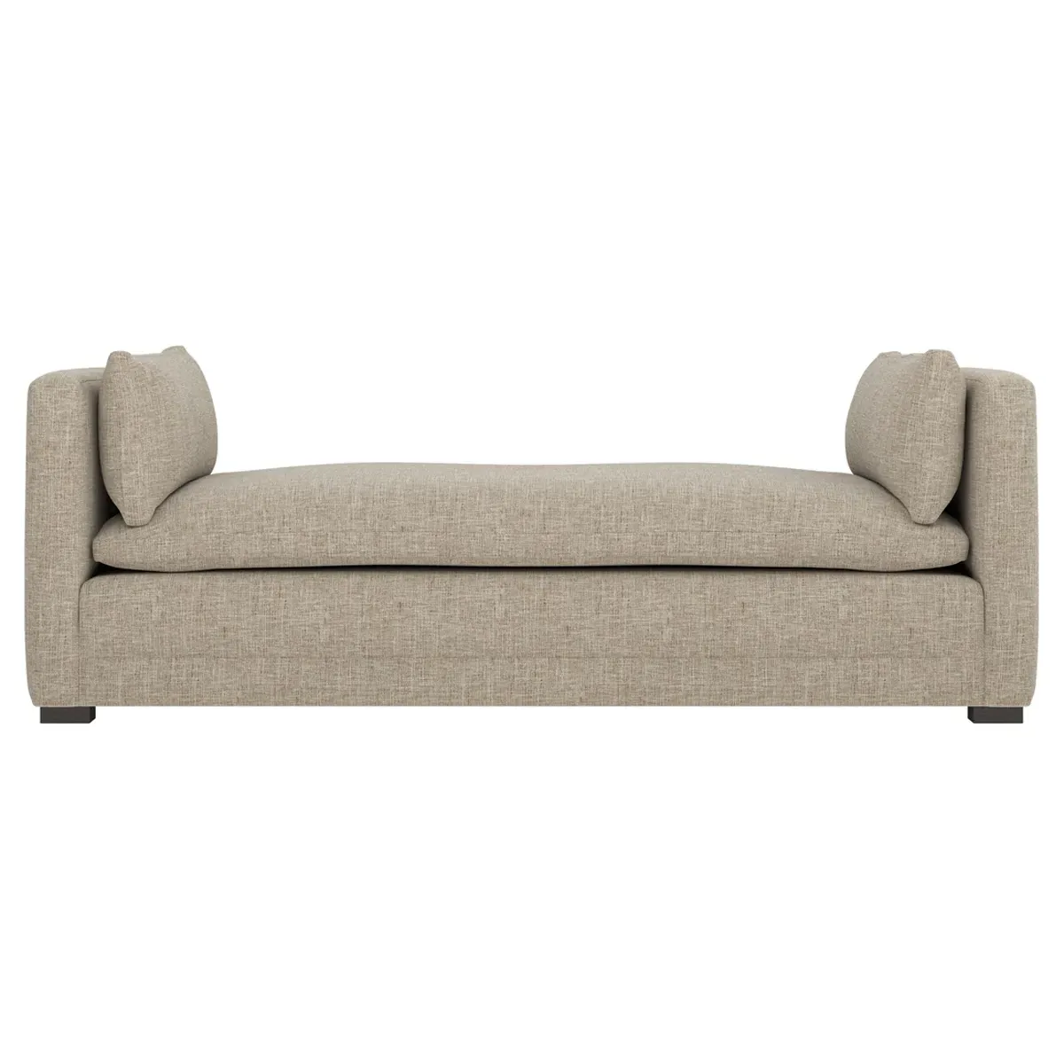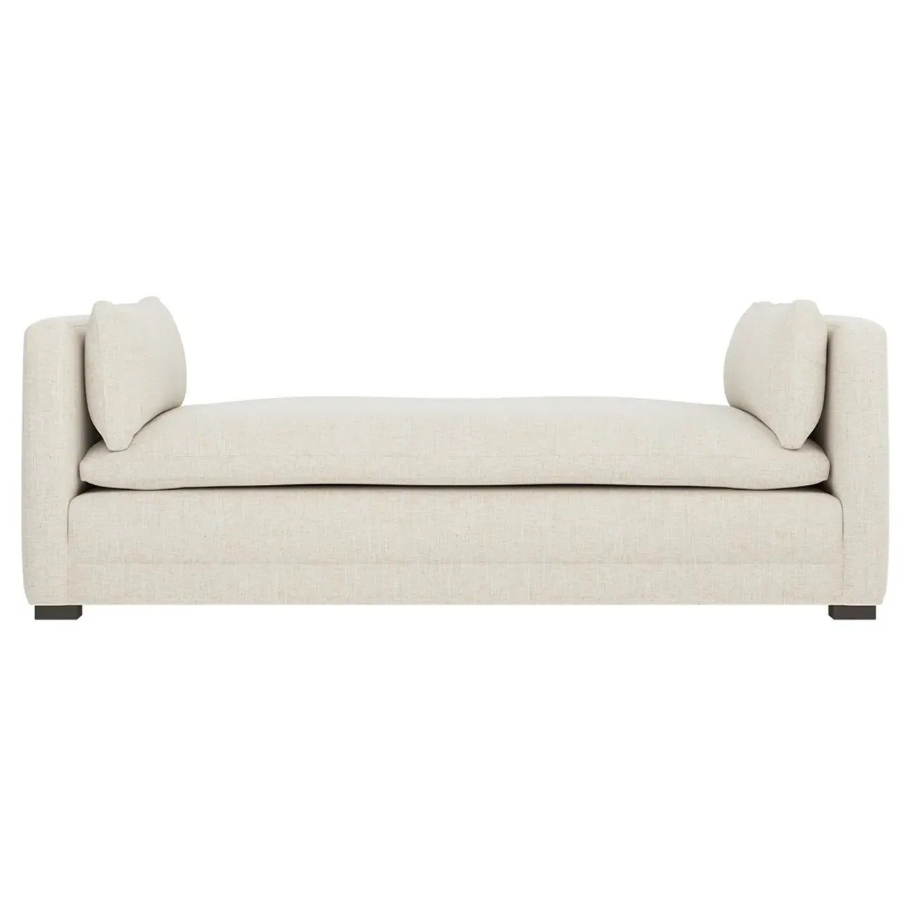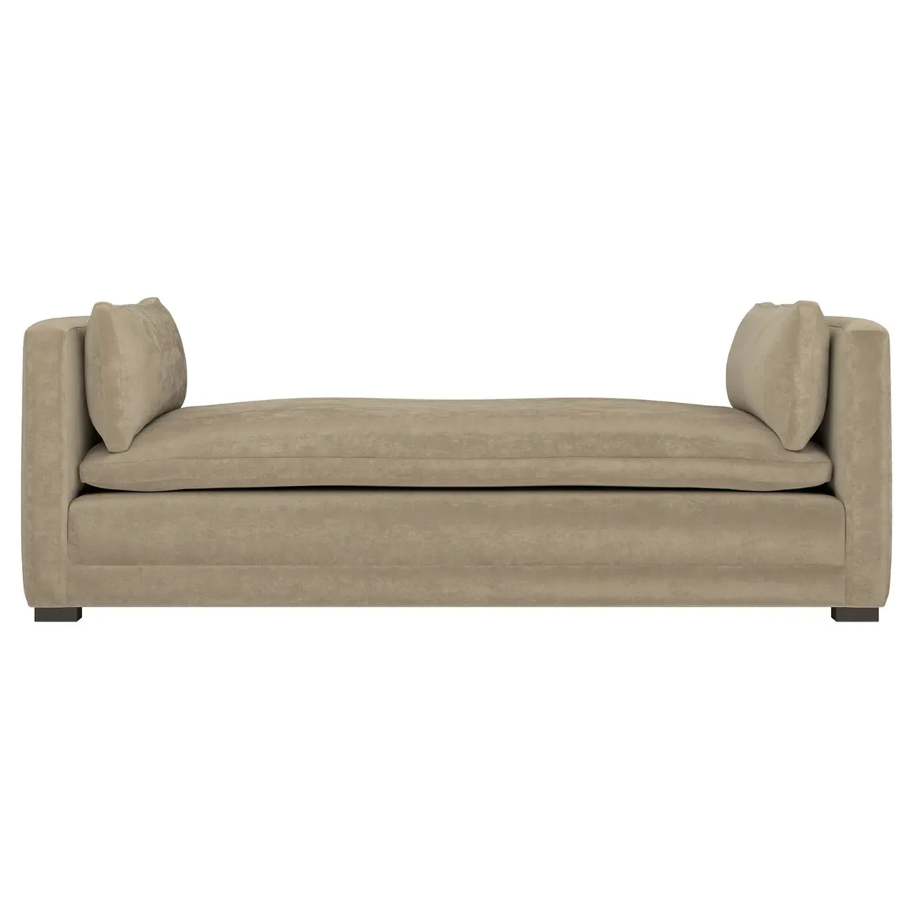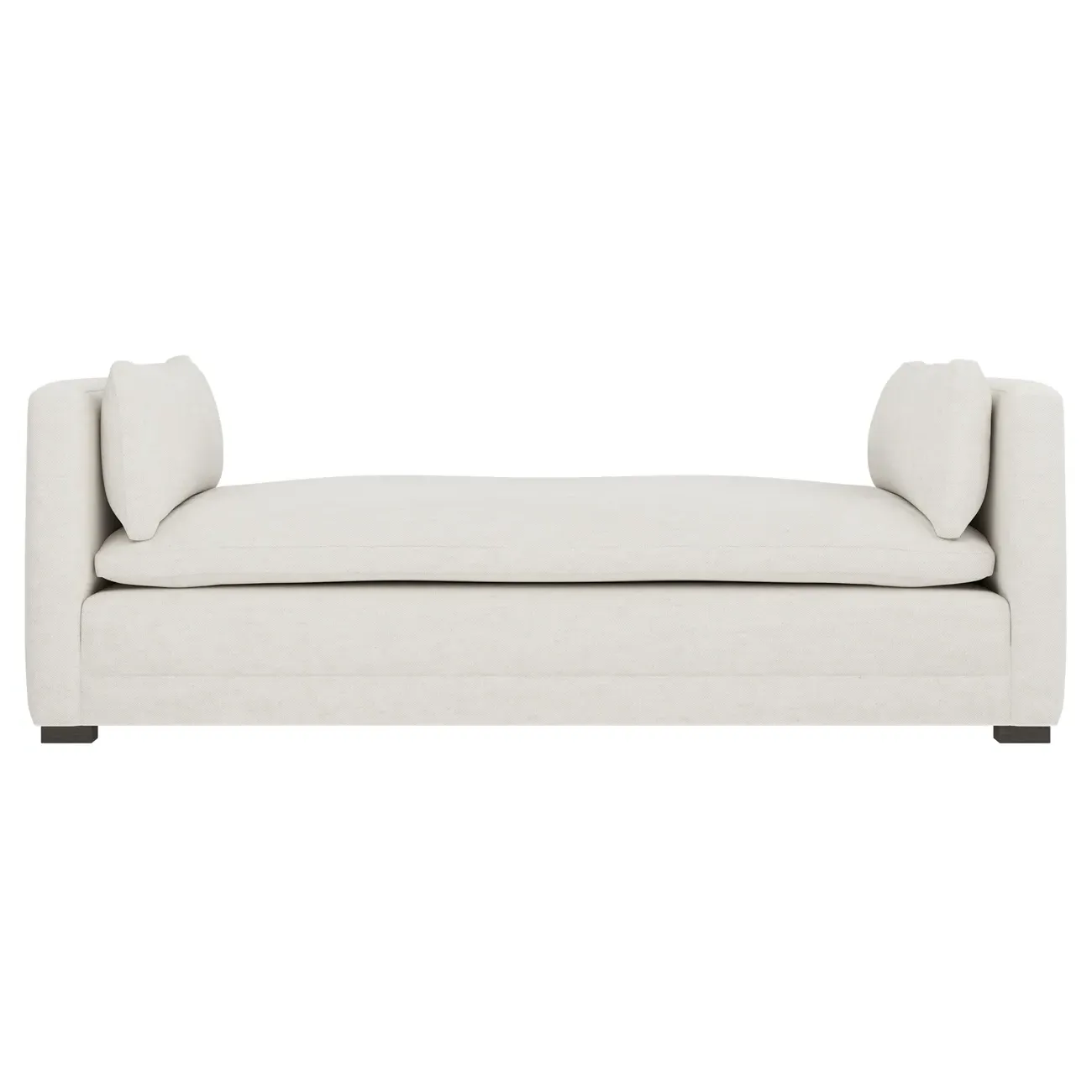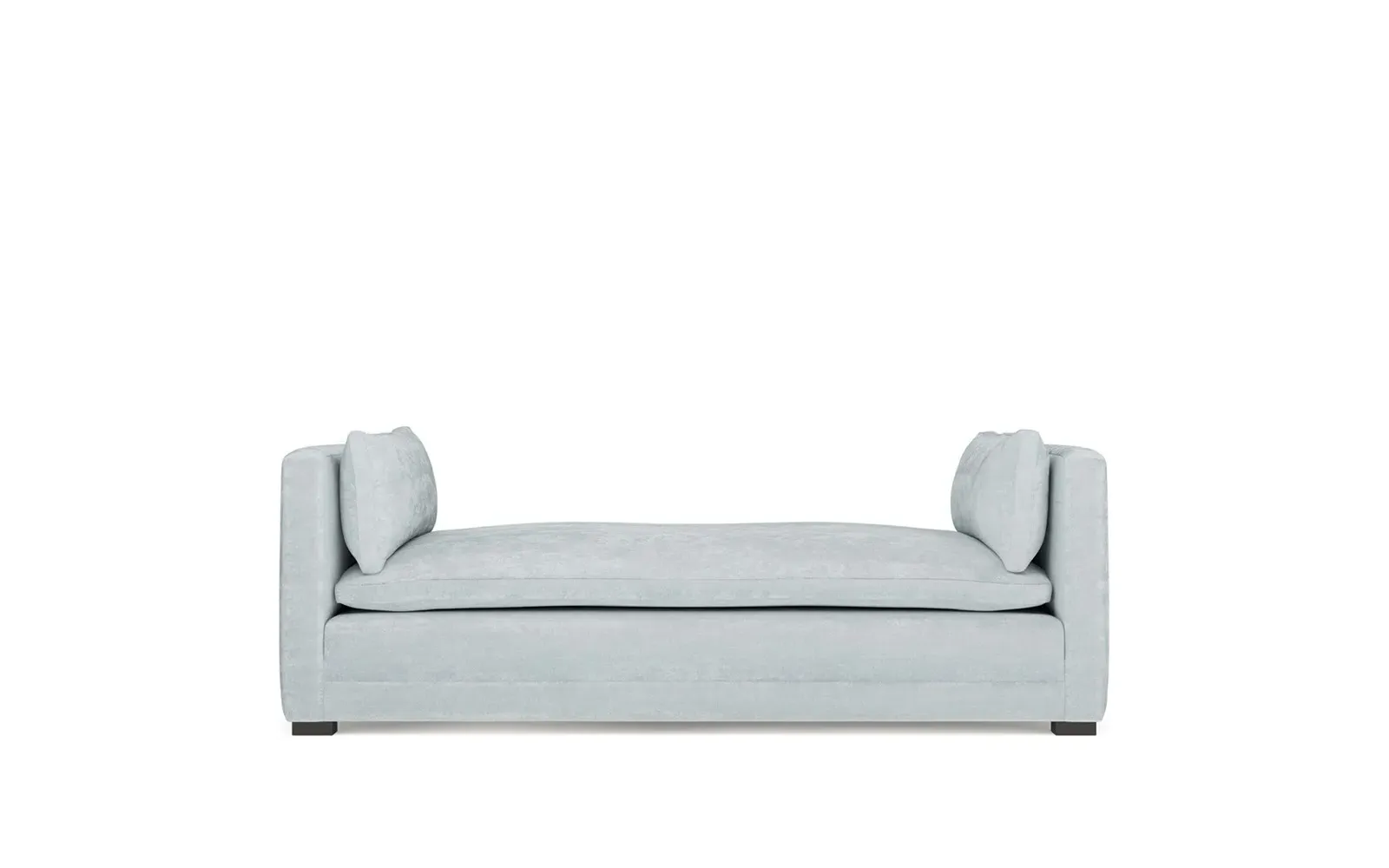 Perfect for a bedroom or living room, the Olivia daybed invites you to unwind with a good book or cozy up for an intimate conversation. Gracious details include classic track arms, plush bolster pillows, and low wood legs, elevating the chic silhouette. Incredibly soft and extraordinarily comfortable, the cloud-like cushion features a foam core surrounded by a blend of fiber, down, and feather fill. Choose from a variety of upholstery options, including linen, velvet, and performance fabrics. <b>Overall Dimensions:</b> 81" W x 37" D x 31" H. <b>Seat Height:</b> 20”; <b>Distance Between Arms:</b> 53”; <b>Arm Height:</b> 29”; <b>Leg Height:</b> 1 ¼”. <b>Materials:</b> FSC®-certified, US-sourced, formaldehyde-free solid kiln-dried hardwood and furniture-grade laminates. <b>Material FInish:</b> Espresso legs. <b>Cushion Fill:</b> A CertiPUR-US® certified, high-resiliency foam core wrapped with a super soft foam layer then inserted into a channel-quilted casing filled with a blend of 50% fiber, 5% down, and 45% feather.