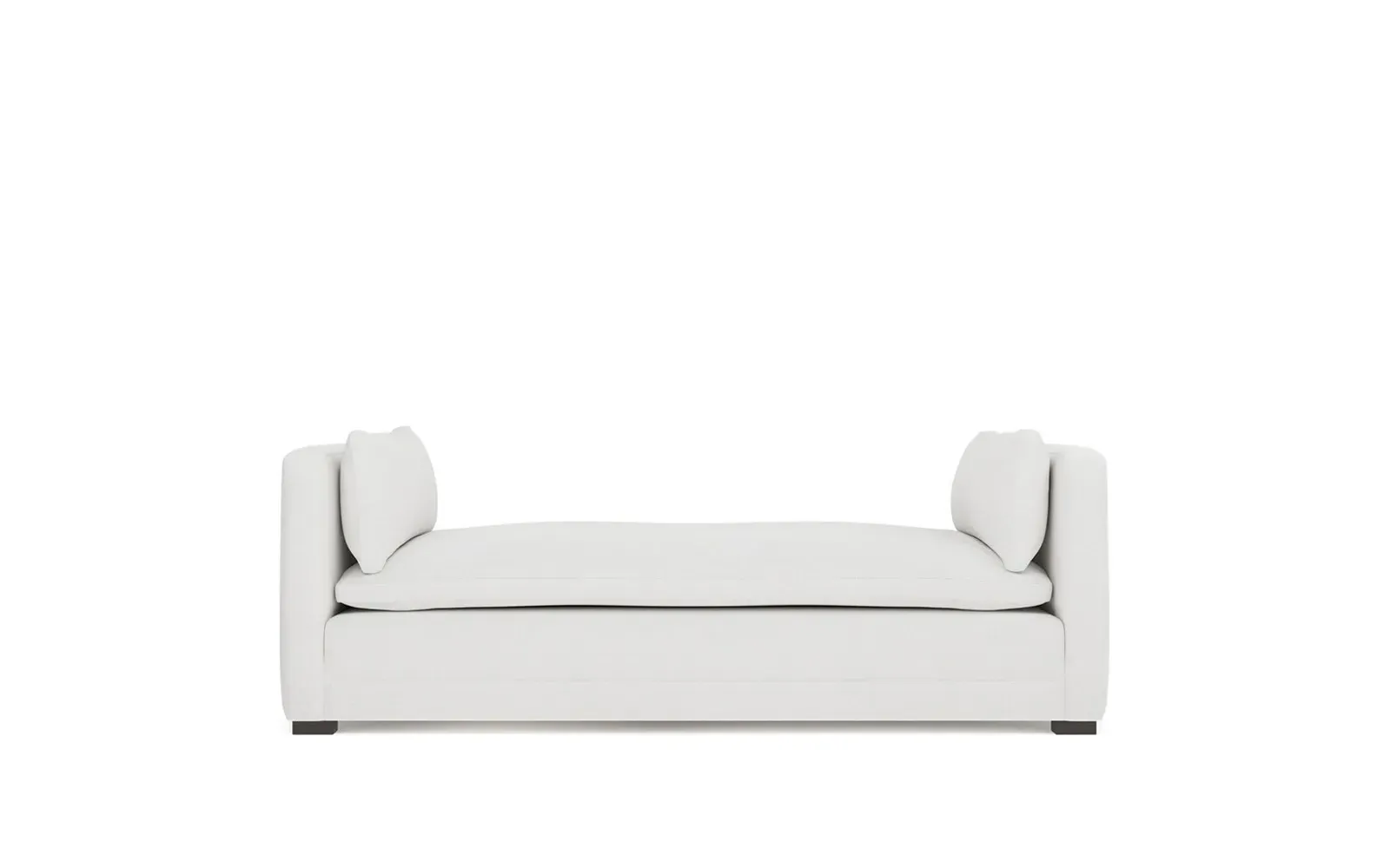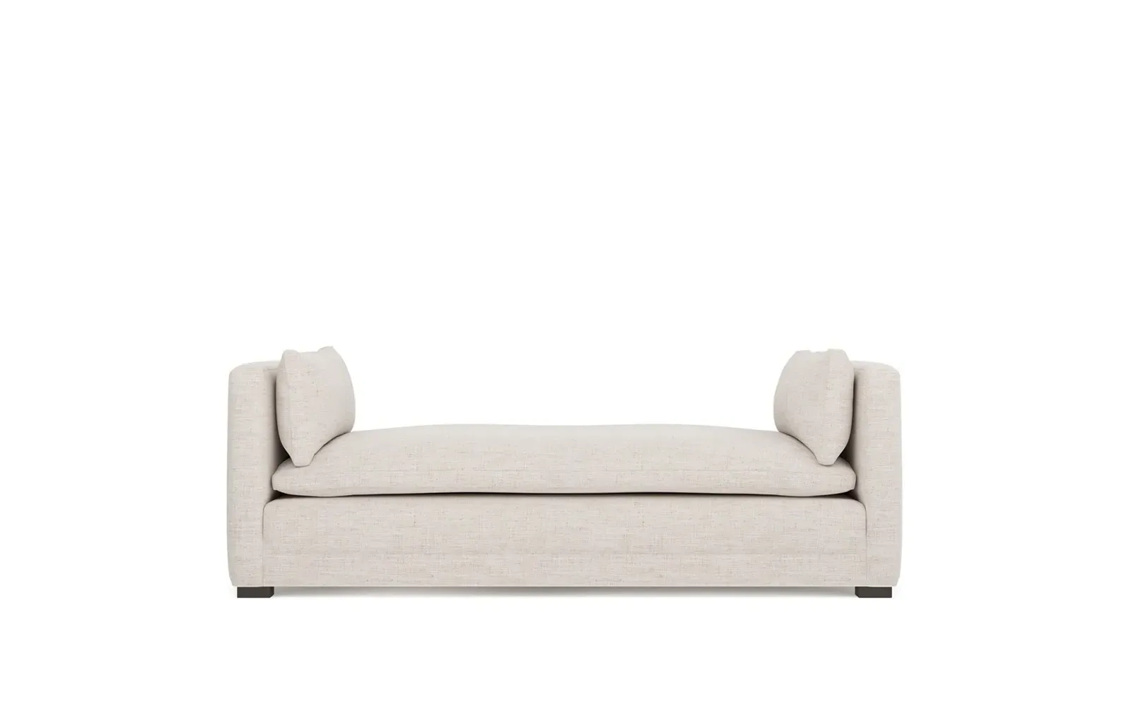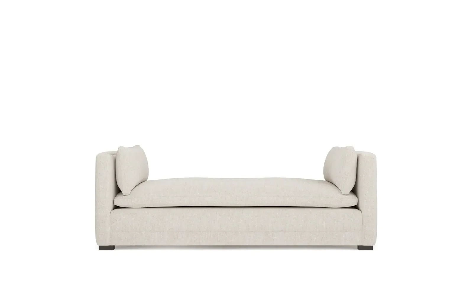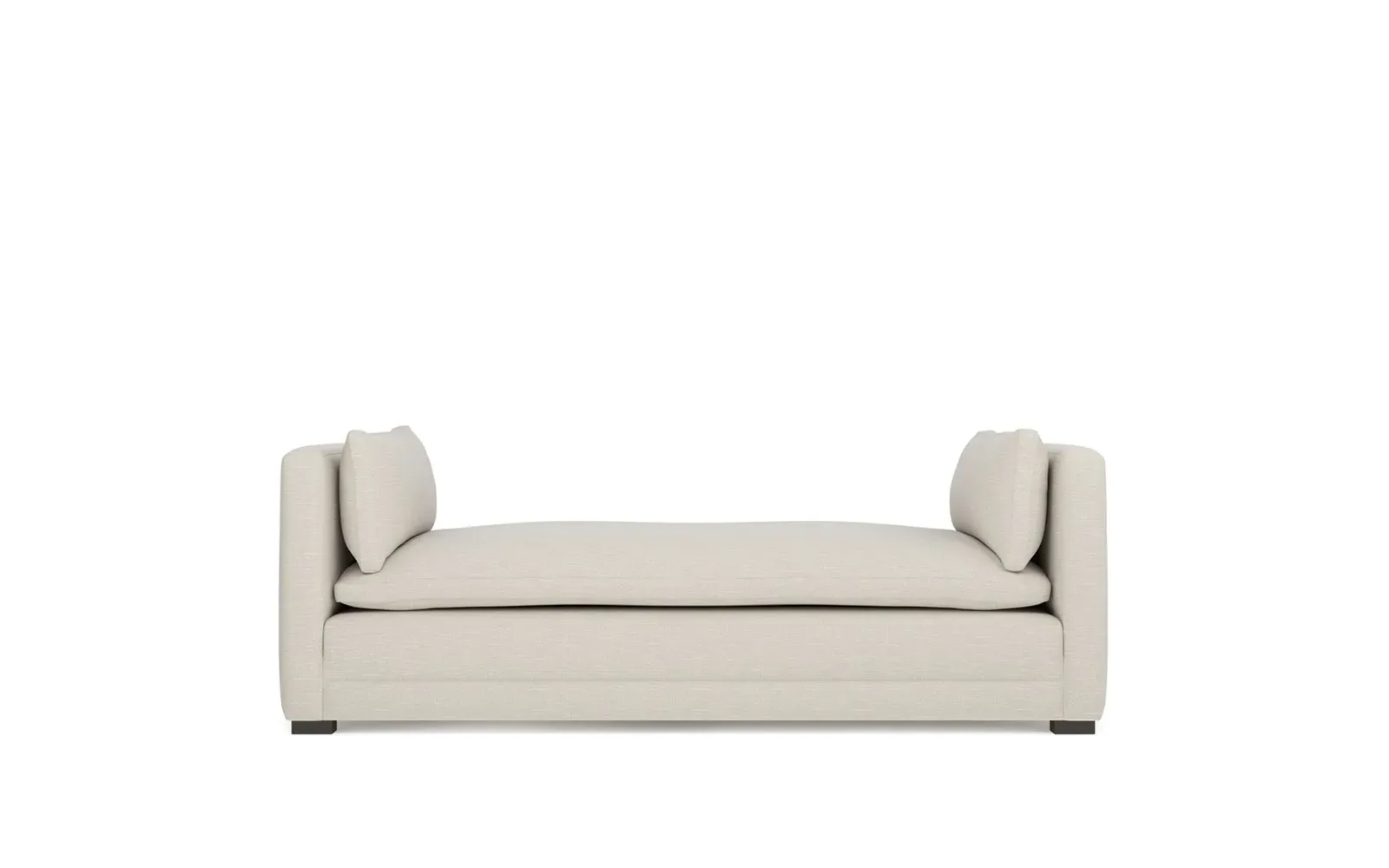 Perfect for a bedroom or living room, the Olivia daybed invites you to unwind with a good book or cozy up for an intimate conversation. Gracious details include classic track arms, plush bolster pillows, and low wood legs, elevating the chic silhouette. Incredibly soft and extraordinarily comfortable, the cloud-like cushion features a foam core surrounded by a blend of fiber, down, and feather fill. Choose from a variety of upholstery options, including linen, velvet, and performance fabrics. <b>Overall Dimensions:</b> 81" W x 37" D x 31" H. <b>Seat Height:</b> 20”; <b>Distance Between Arms:</b> 53”; <b>Arm Height:</b> 29”; <b>Leg Height:</b> 1 ¼”. <b>Materials:</b> FSC®-certified, US-sourced, formaldehyde-free solid kiln-dried hardwood and furniture-grade laminates. <b>Material FInish:</b> Espresso legs. <b>Cushion Fill:</b> A CertiPUR-US® certified, high-resiliency foam core wrapped with a super soft foam layer then inserted into a channel-quilted casing filled with a blend of 50% fiber, 5% down, and 45% feather.