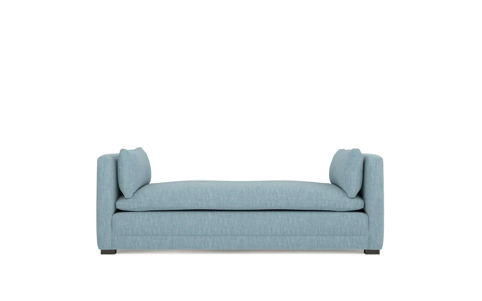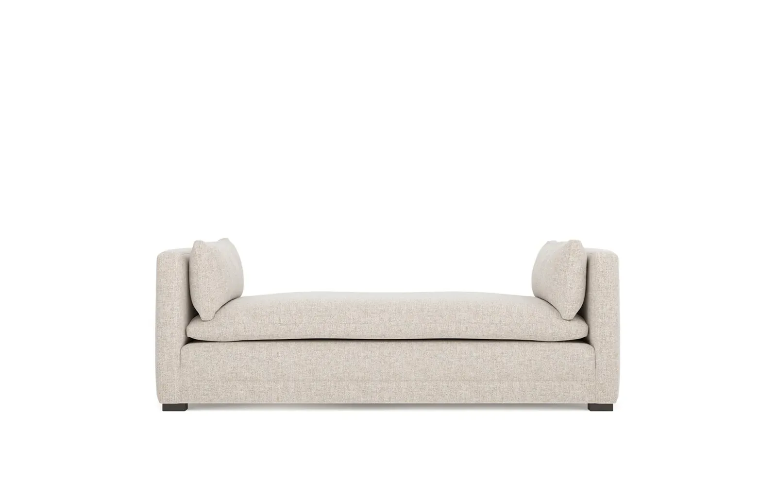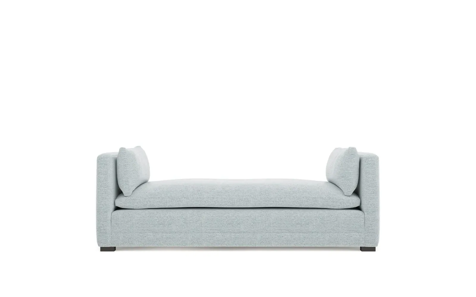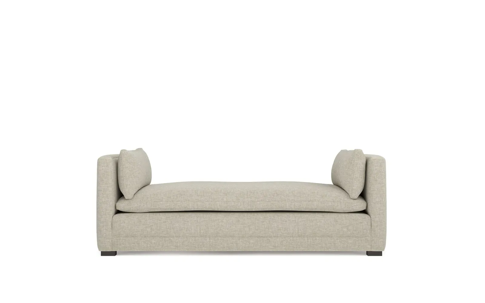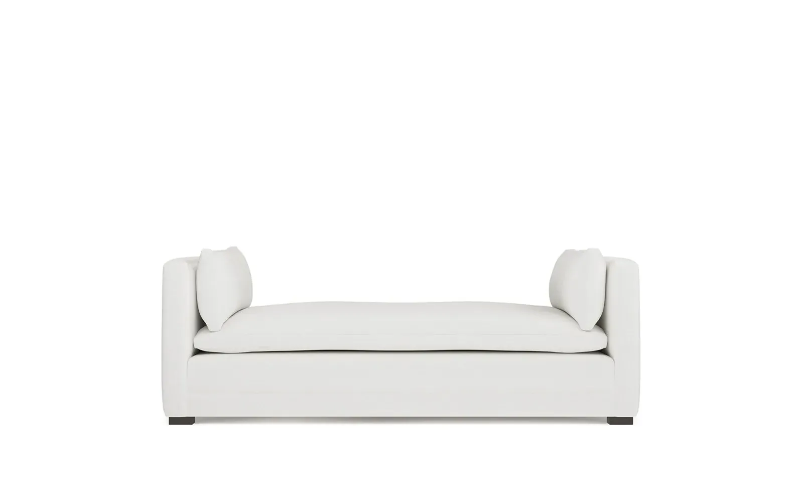 Perfect for a bedroom or living room, the Olivia daybed invites you to unwind with a good book or cozy up for an intimate conversation. Gracious details include classic track arms, plush bolster pillows, and low wood legs, elevating the chic silhouette. Incredibly soft and extraordinarily comfortable, the cloud-like cushion features a foam core surrounded by a blend of fiber, down, and feather fill. Choose from a variety of upholstery options, including linen, velvet, and performance fabrics. <b>Overall Dimensions:</b> 81" W x 37" D x 31" H. <b>Seat Height:</b> 20”; <b>Distance Between Arms:</b> 53”; <b>Arm Height:</b> 29”; <b>Leg Height:</b> 1 ¼”. <b>Materials:</b> FSC®-certified, US-sourced, formaldehyde-free solid kiln-dried hardwood and furniture-grade laminates. <b>Material FInish:</b> Espresso legs. <b>Cushion Fill:</b> A CertiPUR-US® certified, high-resiliency foam core wrapped with a super soft foam layer then inserted into a channel-quilted casing filled with a blend of 50% fiber, 5% down, and 45% feather.