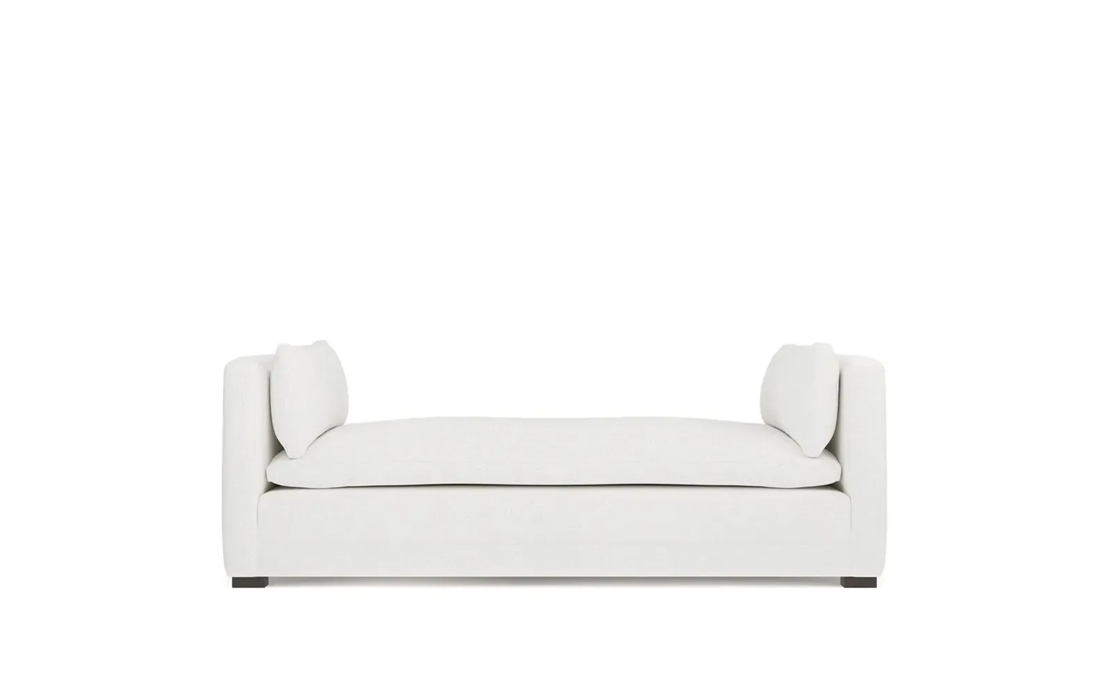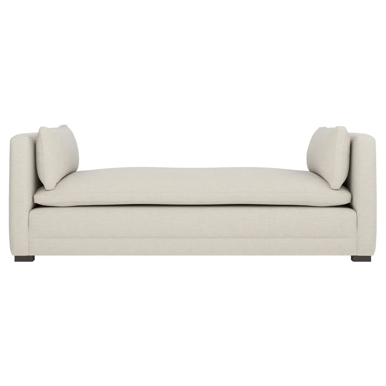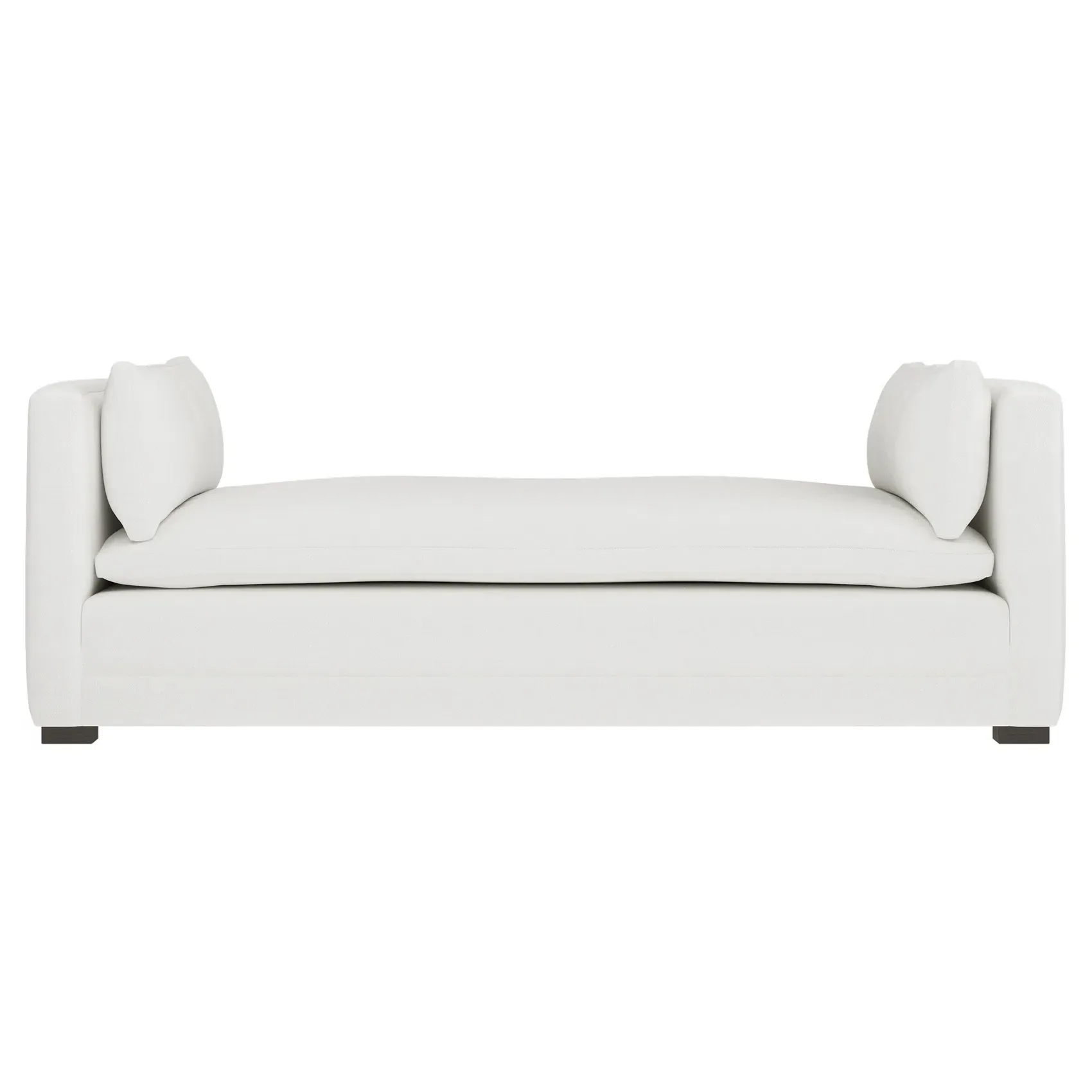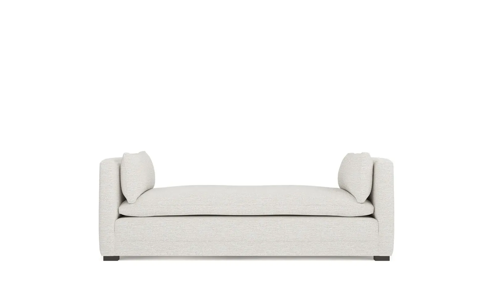 Perfect for a bedroom or living room, the Olivia daybed invites you to unwind with a good book or cozy up for an intimate conversation. Gracious details include classic track arms, plush bolster pillows, and low wood legs, elevating the chic silhouette. Incredibly soft and extraordinarily comfortable, the cloud-like cushion features a foam core surrounded by a blend of fiber, down, and feather fill. Choose from a variety of upholstery options, including linen, velvet, and performance fabrics. <b>Overall Dimensions:</b> 81" W x 37" D x 31" H. <b>Seat Height:</b> 20”; <b>Distance Between Arms:</b> 53”; <b>Arm Height:</b> 29”; <b>Leg Height:</b> 1 ¼”. <b>Materials:</b> FSC®-certified, US-sourced, formaldehyde-free solid kiln-dried hardwood and furniture-grade laminates. <b>Material FInish:</b> Espresso legs. <b>Cushion Fill:</b> A CertiPUR-US® certified, high-resiliency foam core wrapped with a super soft foam layer then inserted into a channel-quilted casing filled with a blend of 50% fiber, 5% down, and 45% feather.