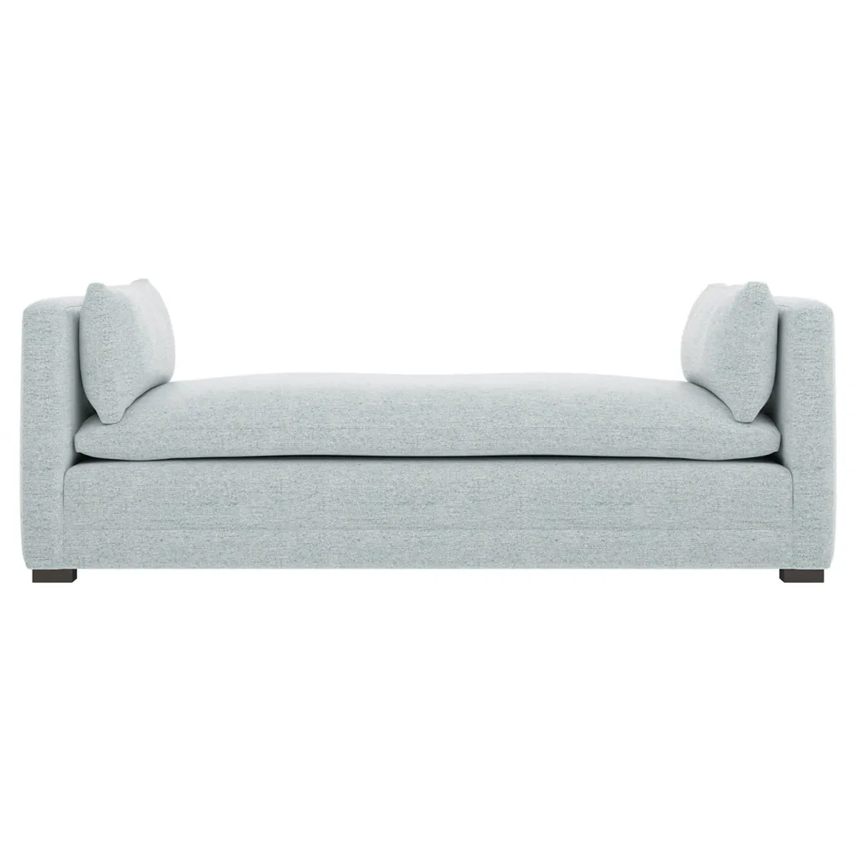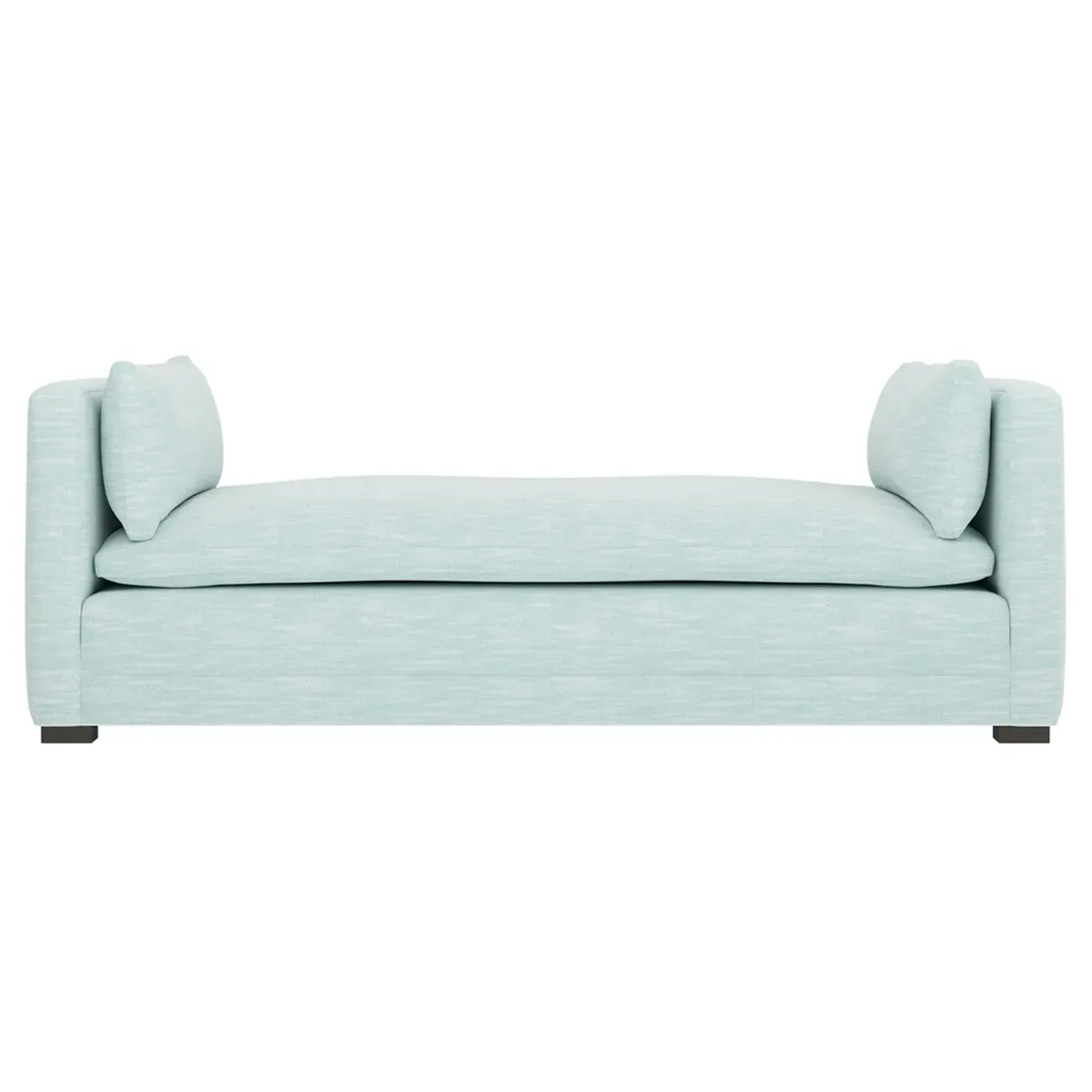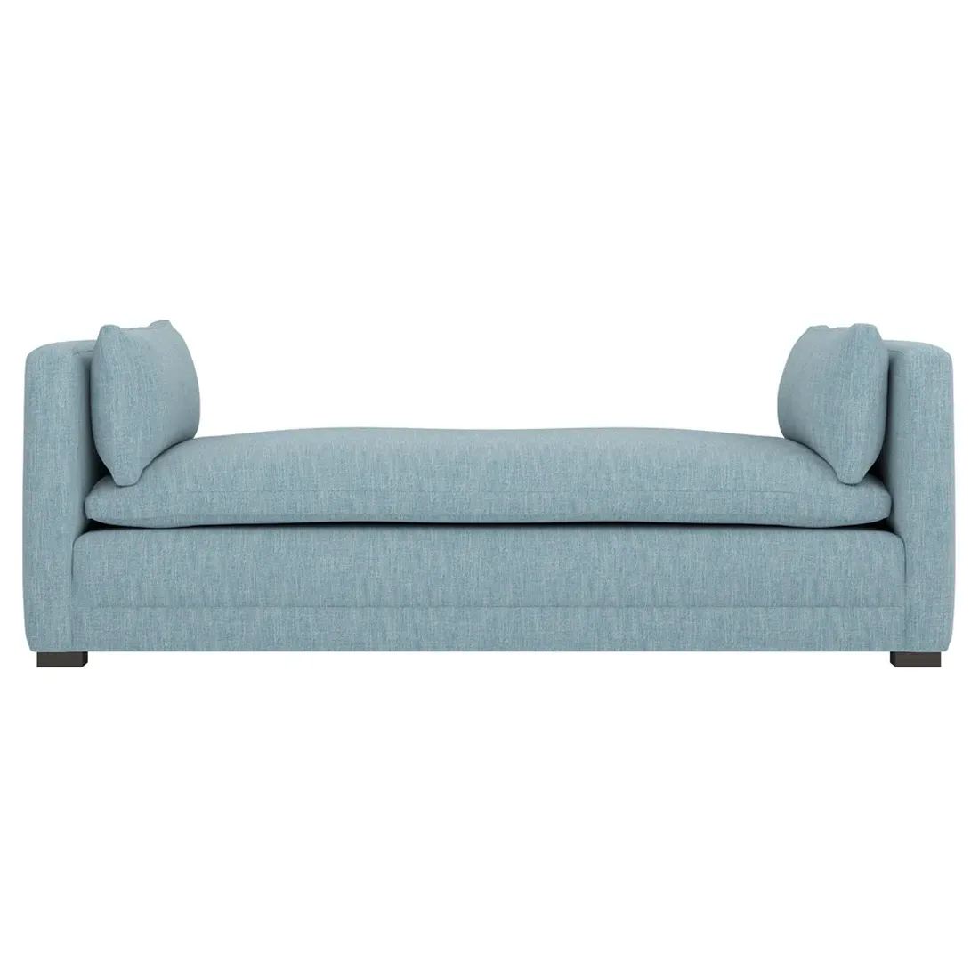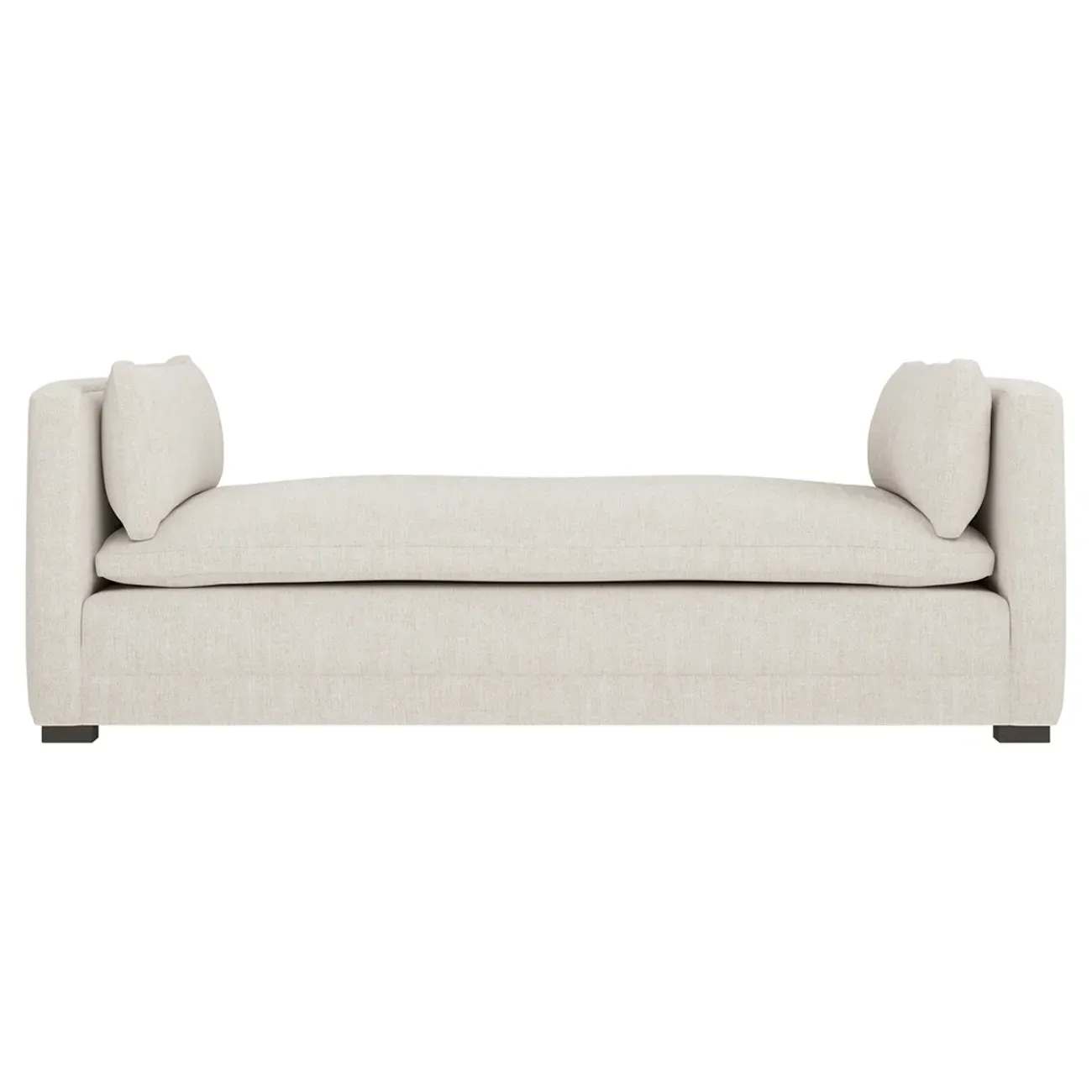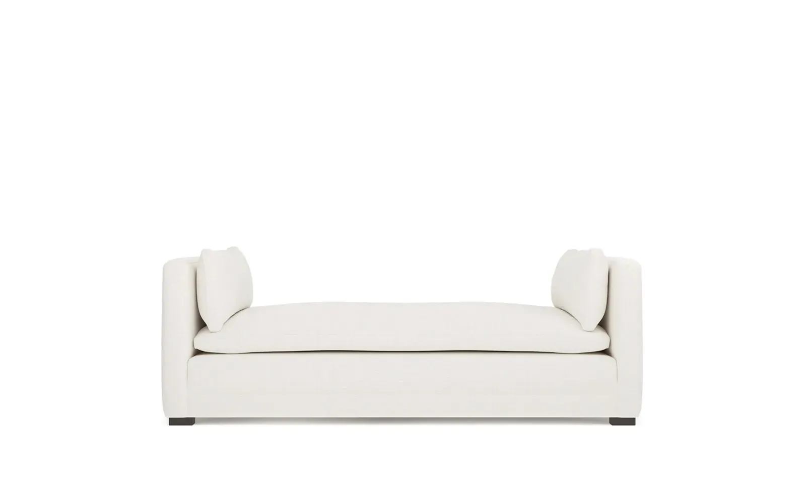 Perfect for a bedroom or living room, the Olivia daybed invites you to unwind with a good book or cozy up for an intimate conversation. Gracious details include classic track arms, plush bolster pillows, and low wood legs, elevating the chic silhouette. Incredibly soft and extraordinarily comfortable, the cloud-like cushion features a foam core surrounded by a blend of fiber, down, and feather fill. Choose from a variety of upholstery options, including linen, velvet, and performance fabrics. <b>Overall Dimensions:</b> 81" W x 37" D x 31" H. <b>Seat Height:</b> 20”; <b>Distance Between Arms:</b> 53”; <b>Arm Height:</b> 29”; <b>Leg Height:</b> 1 ¼”. <b>Materials:</b> FSC®-certified, US-sourced, formaldehyde-free solid kiln-dried hardwood and furniture-grade laminates. <b>Material FInish:</b> Espresso legs. <b>Cushion Fill:</b> A CertiPUR-US® certified, high-resiliency foam core wrapped with a super soft foam layer then inserted into a channel-quilted casing filled with a blend of 50% fiber, 5% down, and 45% feather.