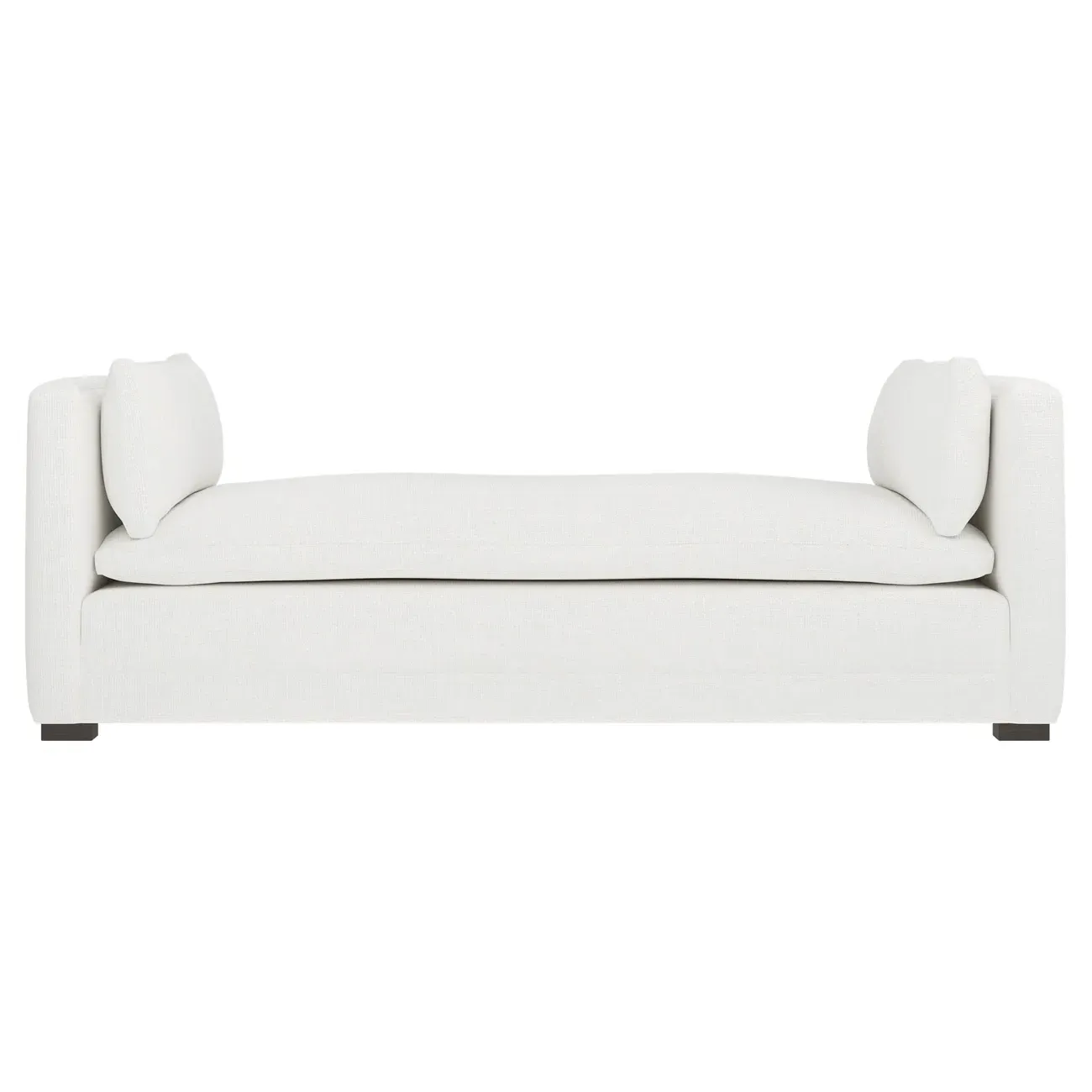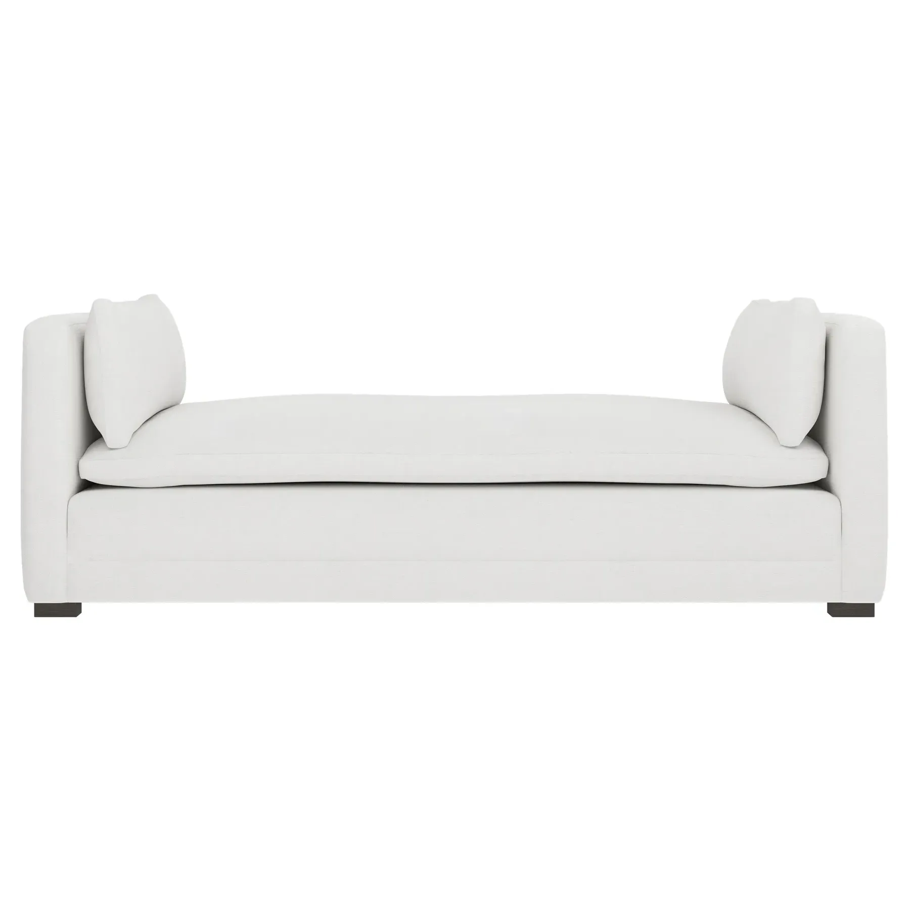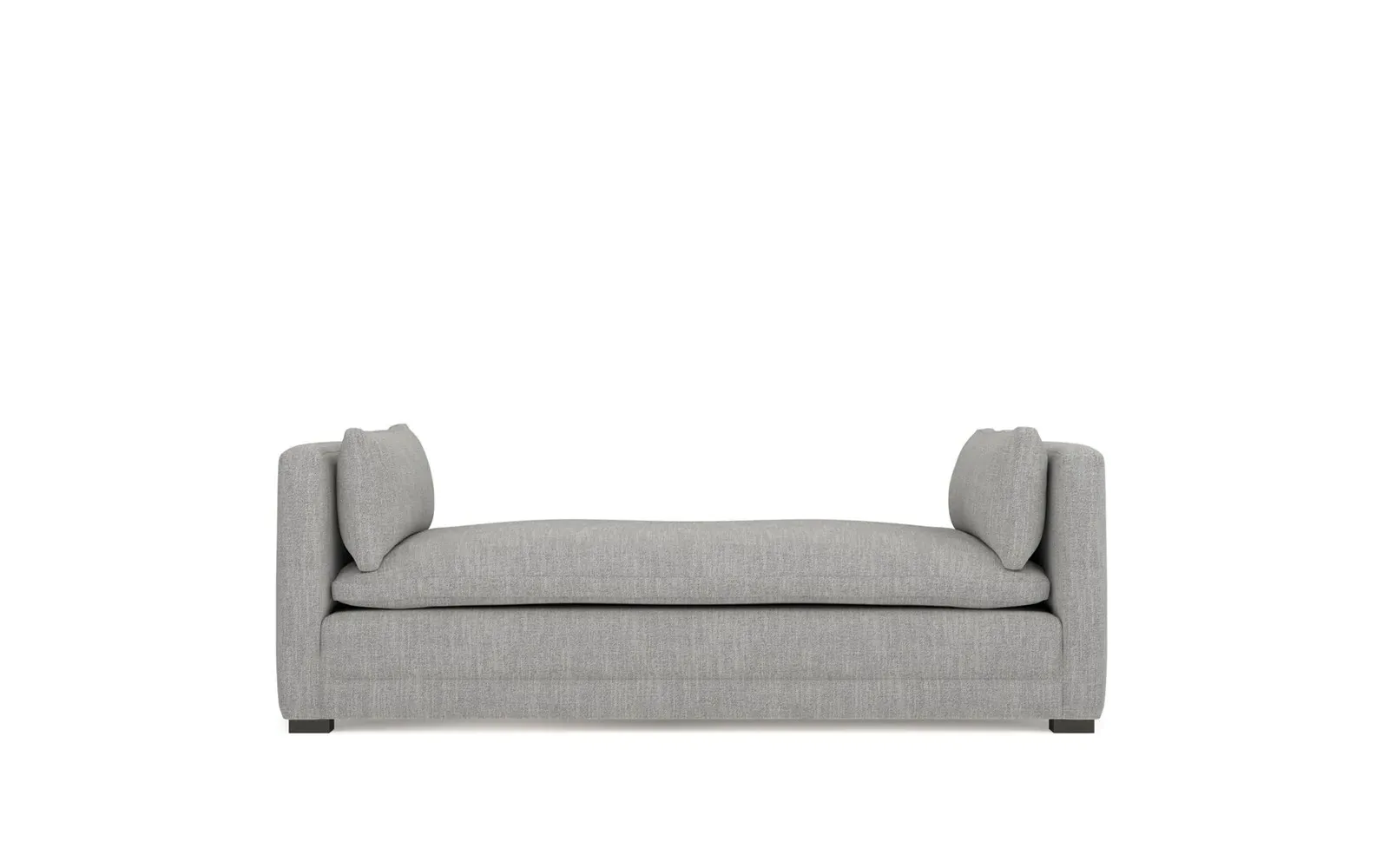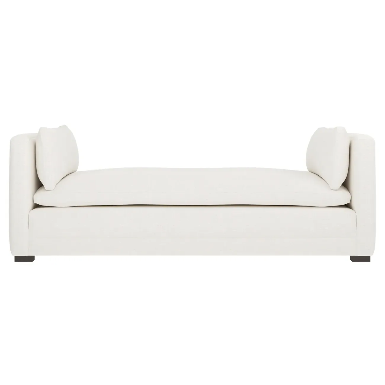 Perfect for a bedroom or living room, the Olivia daybed invites you to unwind with a good book or cozy up for an intimate conversation. Gracious details include classic track arms, plush bolster pillows, and low wood legs, elevating the chic silhouette. Incredibly soft and extraordinarily comfortable, the cloud-like cushion features a foam core surrounded by a blend of fiber, down, and feather fill. Choose from a variety of upholstery options, including linen, velvet, and performance fabrics. <b>Overall Dimensions:</b> 81" W x 37" D x 31" H. <b>Seat Height:</b> 20”; <b>Distance Between Arms:</b> 53”; <b>Arm Height:</b> 29”; <b>Leg Height:</b> 1 ¼”. <b>Materials:</b> FSC®-certified, US-sourced, formaldehyde-free solid kiln-dried hardwood and furniture-grade laminates. <b>Material FInish:</b> Espresso legs. <b>Cushion Fill:</b> A CertiPUR-US® certified, high-resiliency foam core wrapped with a super soft foam layer then inserted into a channel-quilted casing filled with a blend of 50% fiber, 5% down, and 45% feather.
