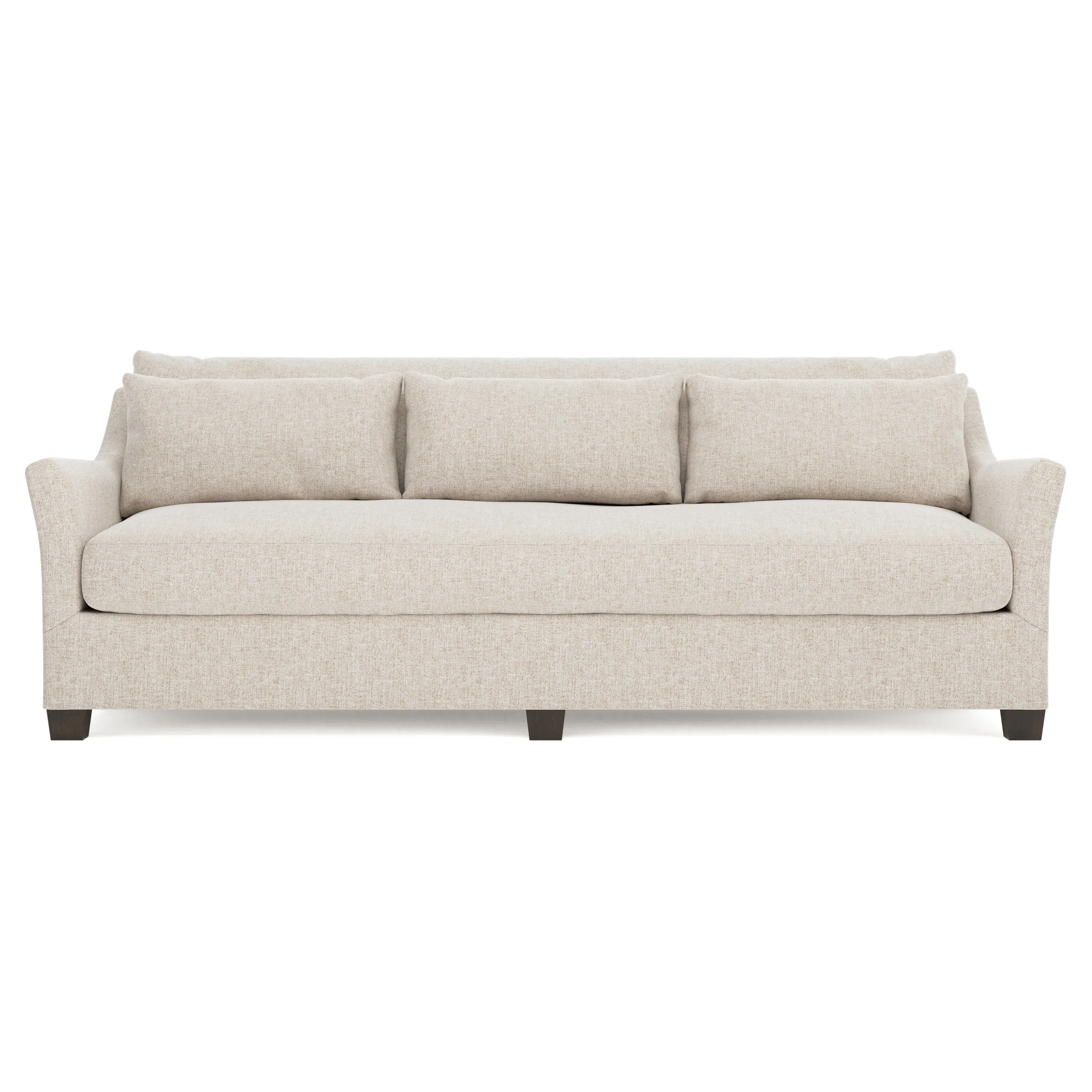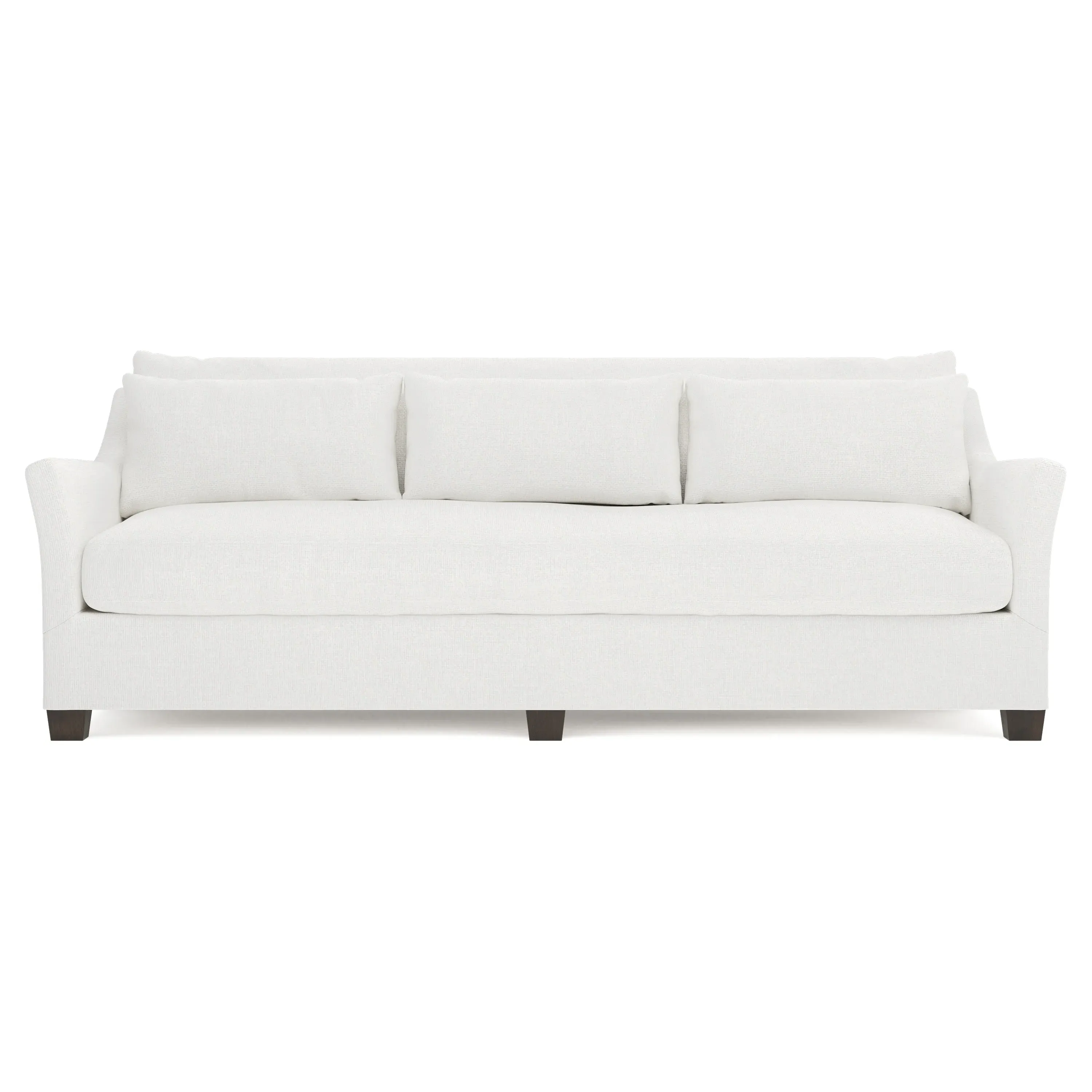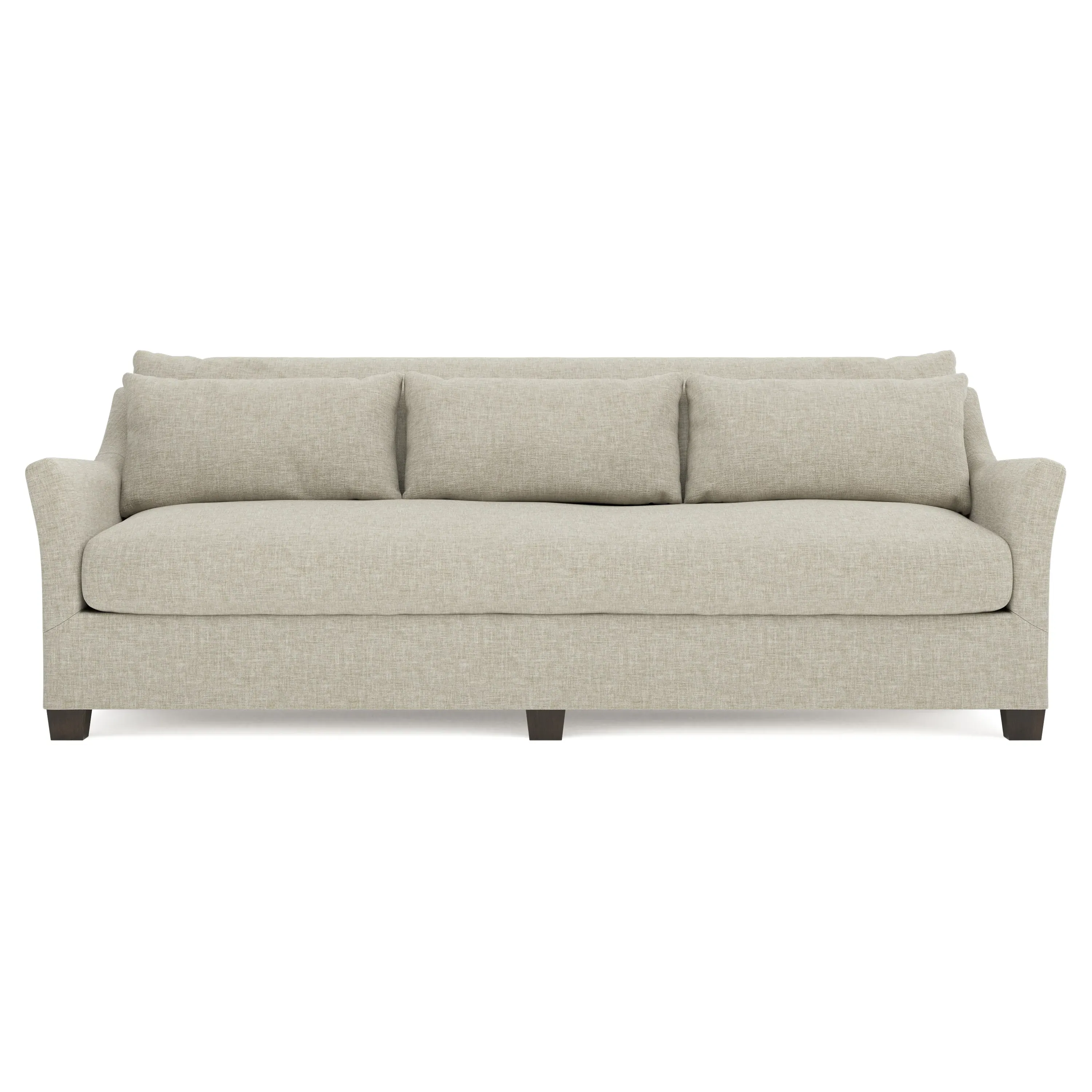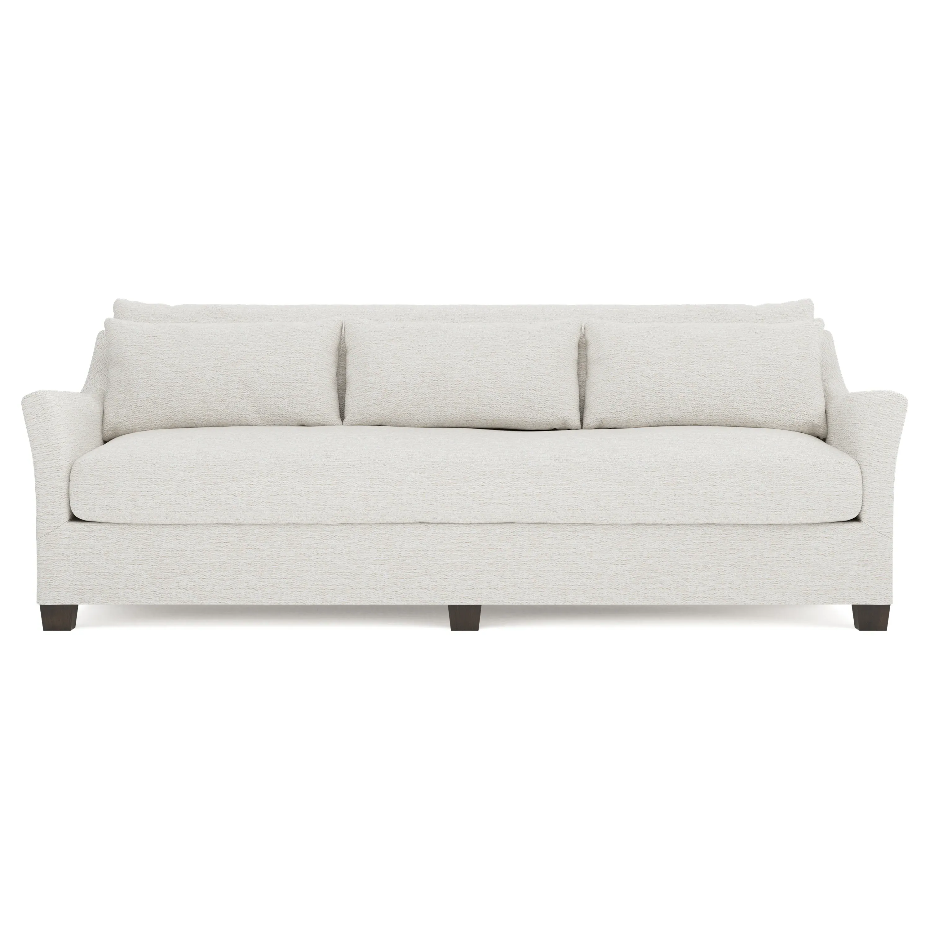 The Pauline sofa offers plush comfort with its bench seat design, featuring a high-resiliency foam core wrapped in soft foam and filled with a blend of fiber, down, and feather. Its gently sloped, flared arms and low espresso wood legs create a graceful silhouette, while the channel-quilted casing adds durability. Three lumbar pillows layer in front of the full-length back pillow for enhanced support. The FSC-certified kiln-dried hardwood frame ensures lasting stability. W249 x D104 x H89 cm.