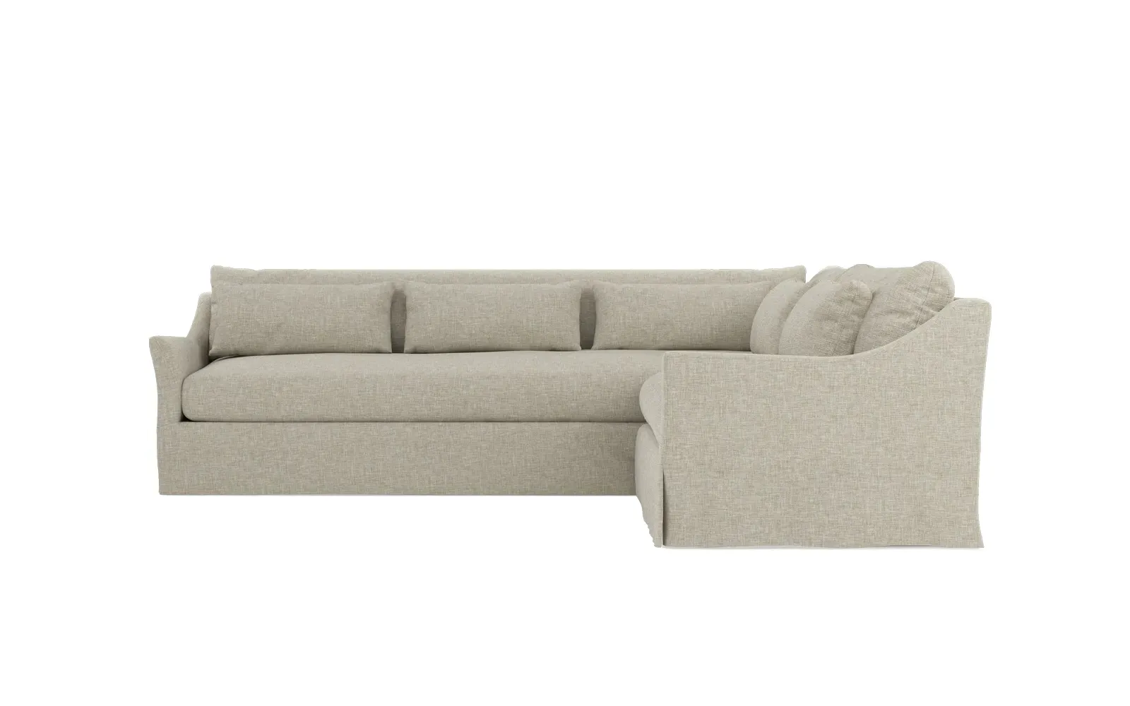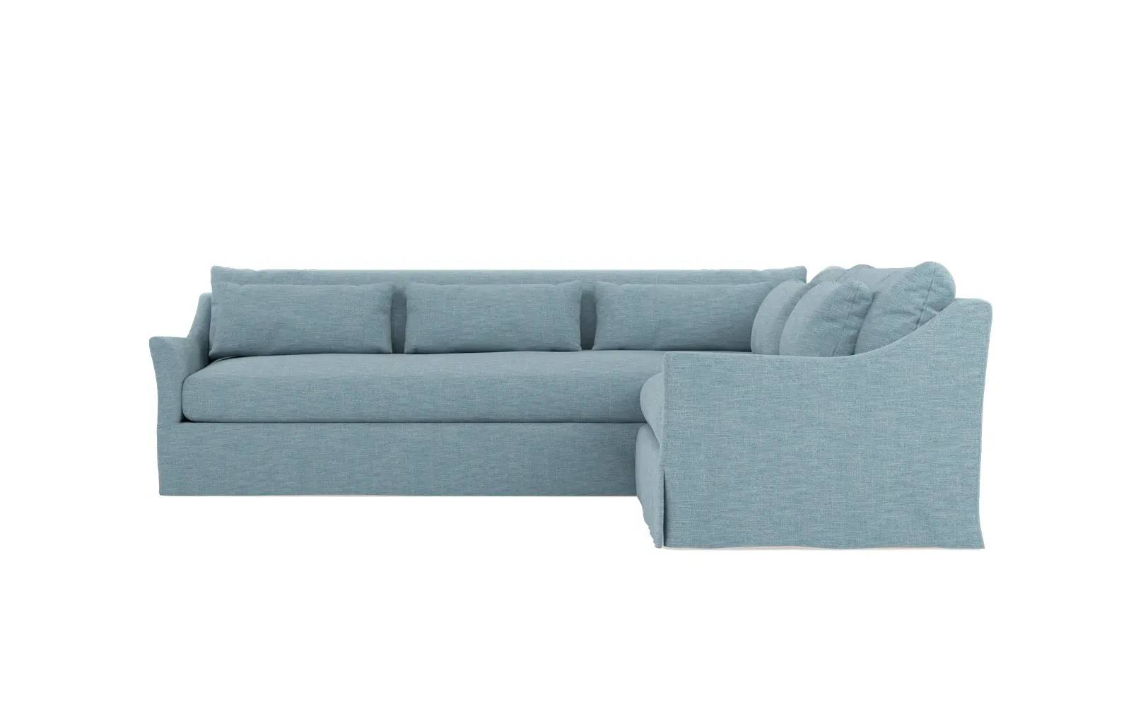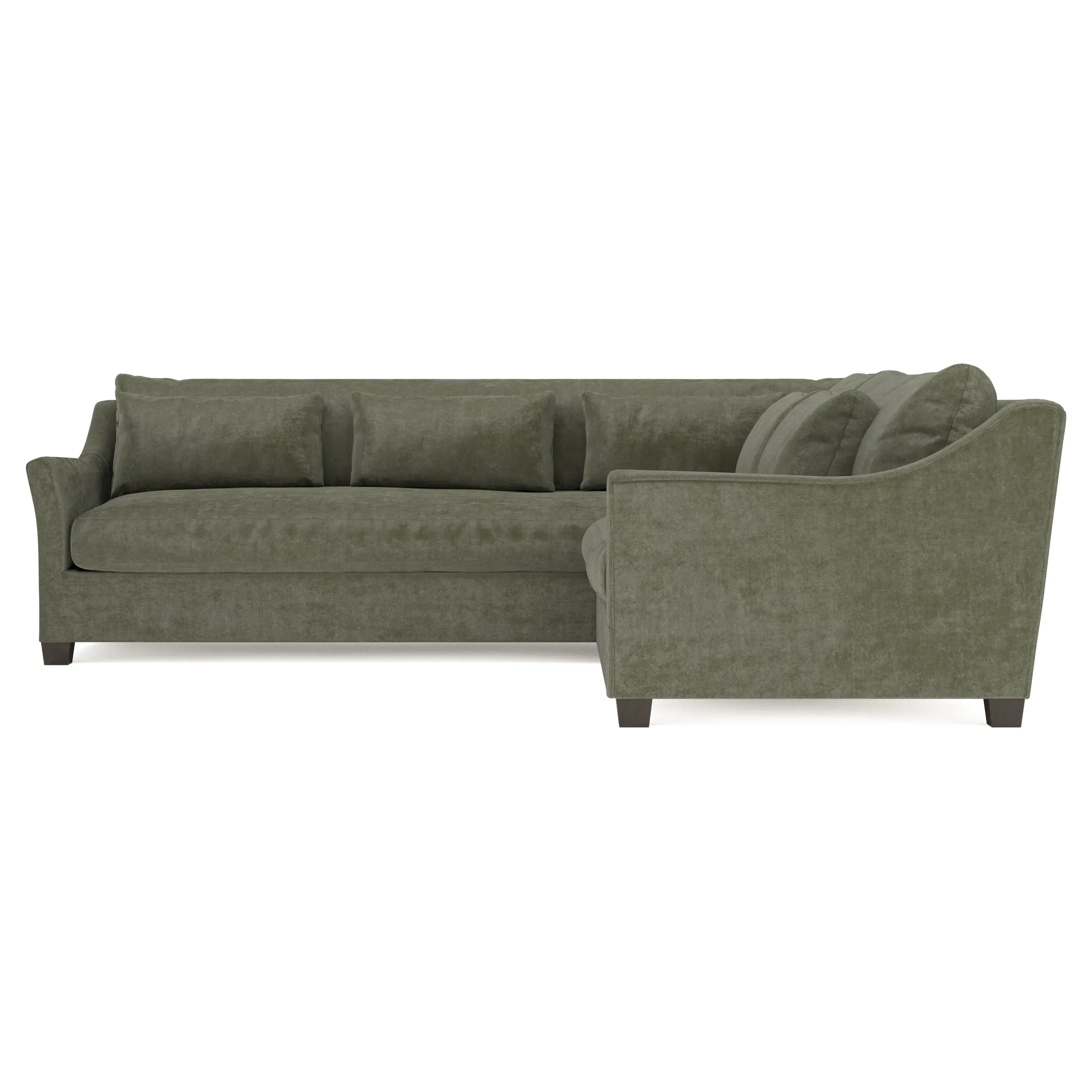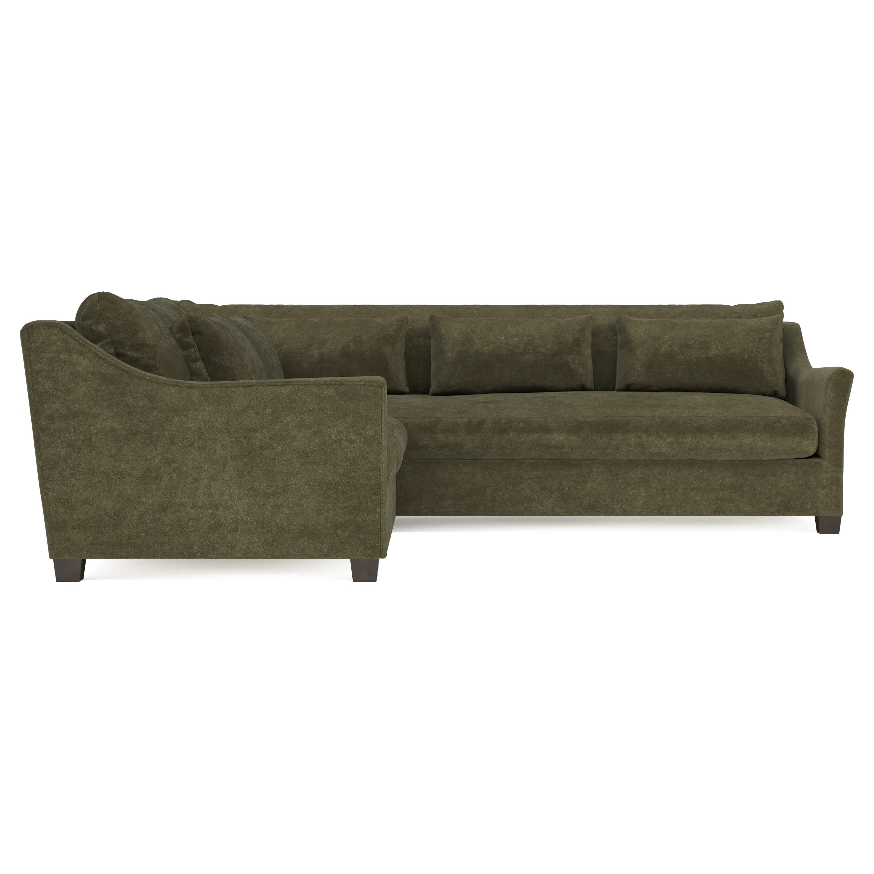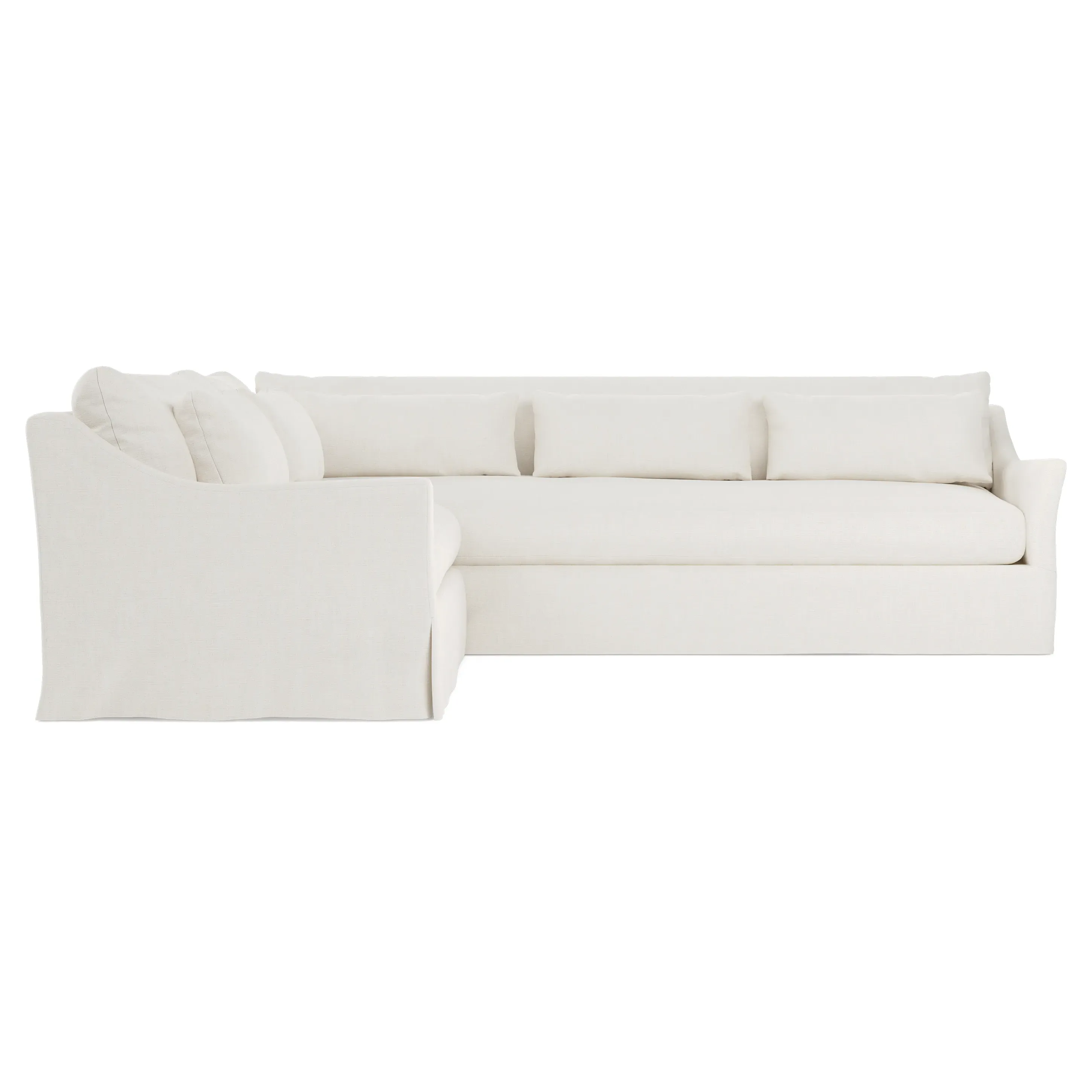 The left 106” Pauline corner sectional features gently sloped, flared arms, low wood legs, and a spacious seat. Its structured silhouette is a natural divider for great rooms, making it easy to define a seating area in open-concept spaces. Soft yet supportive, the seat cushions are designed for plush comfort, with a foam core surrounded by a blend of fiber, down, and feather fill. Choose from a variety of upholstery options, including linen, velvet, and performance fabrics. <b>Overall Dimensions: </b> 106" W x 118" D x 35" H. <b>End Sofa with Corner Dimensions: </b> 118" W x 41" D x 35" H; <b>End Sofa Dimensions: </b> 65” W x 41” D x 35” H; <b>Seat Depth: </b>19” to the front of lumbar pillows, 24” to the front of back cushions; <b>Seat Height: </b>22”; <b>Arm Height: </b> 25”; <b>Leg Height: </b> 3 ½”. <b>Materials:</b> FSC®-certified, US-sourced, formaldehyde-free solid kiln-dried hardwood and furniture-grade laminates. <b>Material Finish: </b> Espresso legs. <b>Pieces Included: </b> Right end sofa with corner and left end sofa.