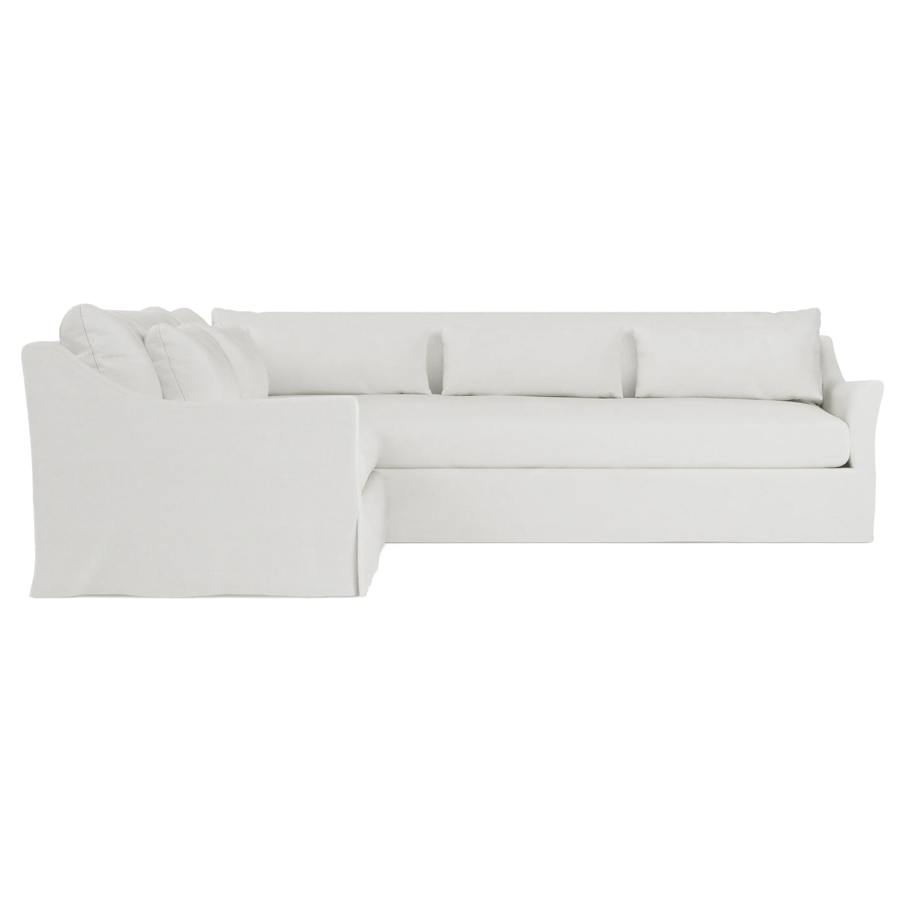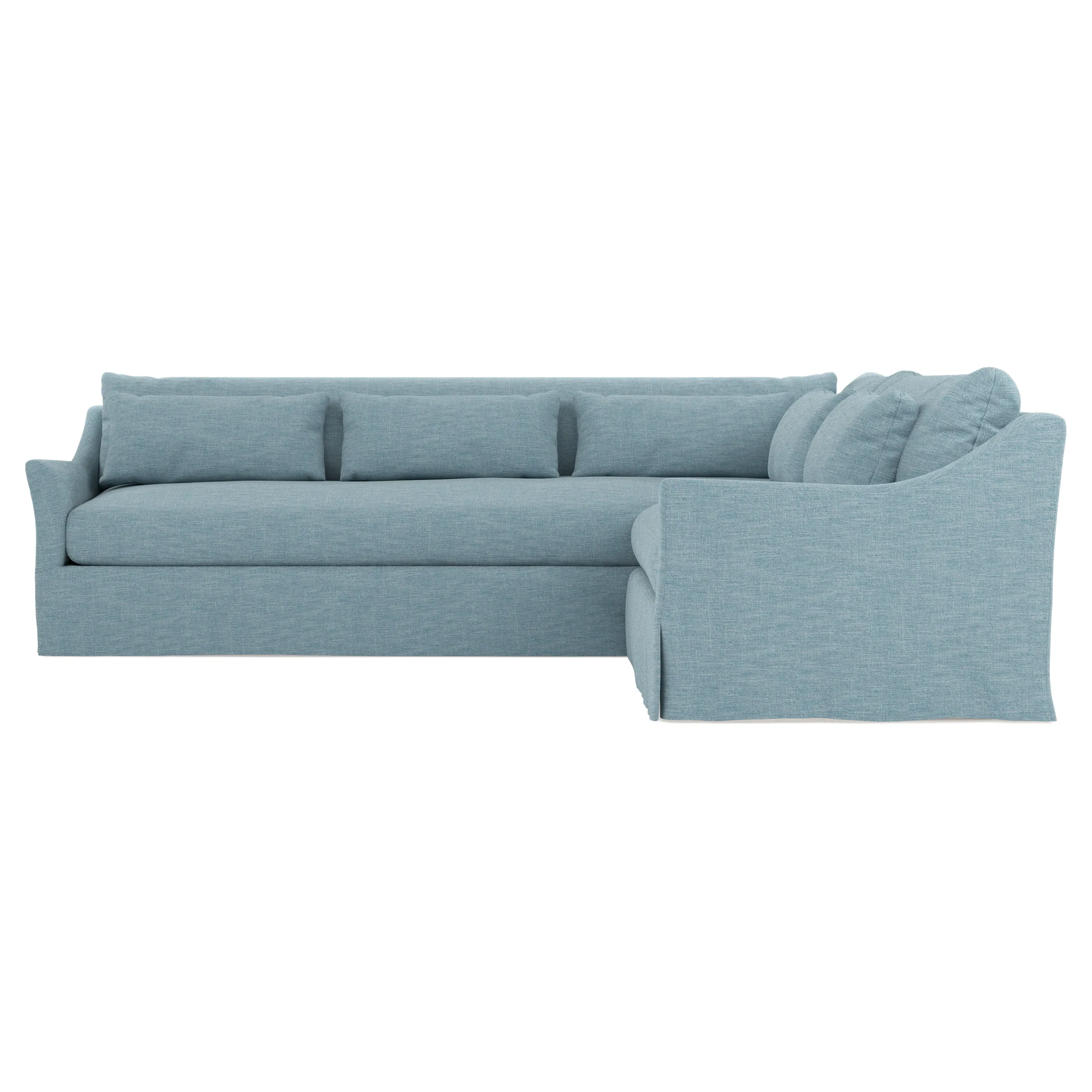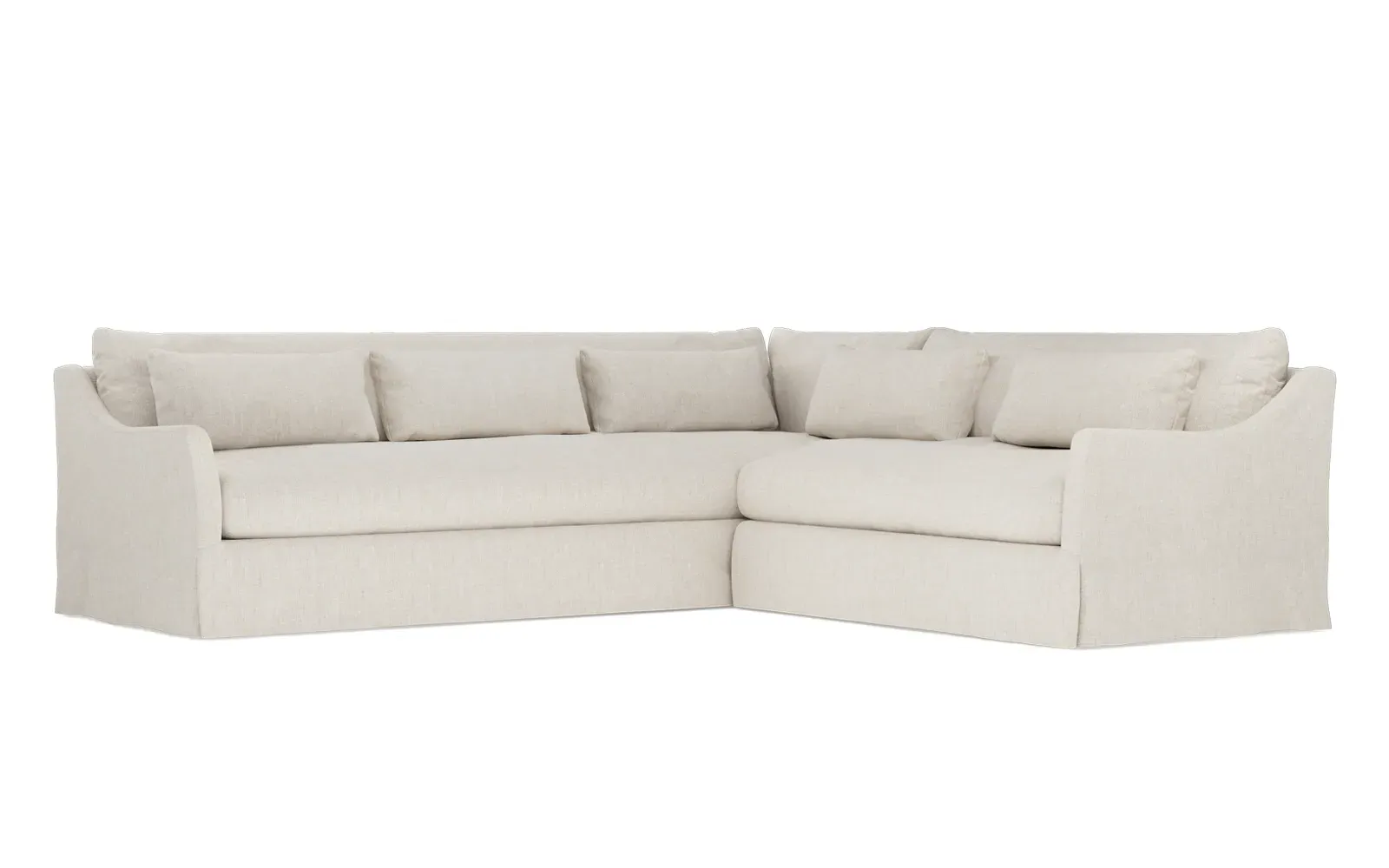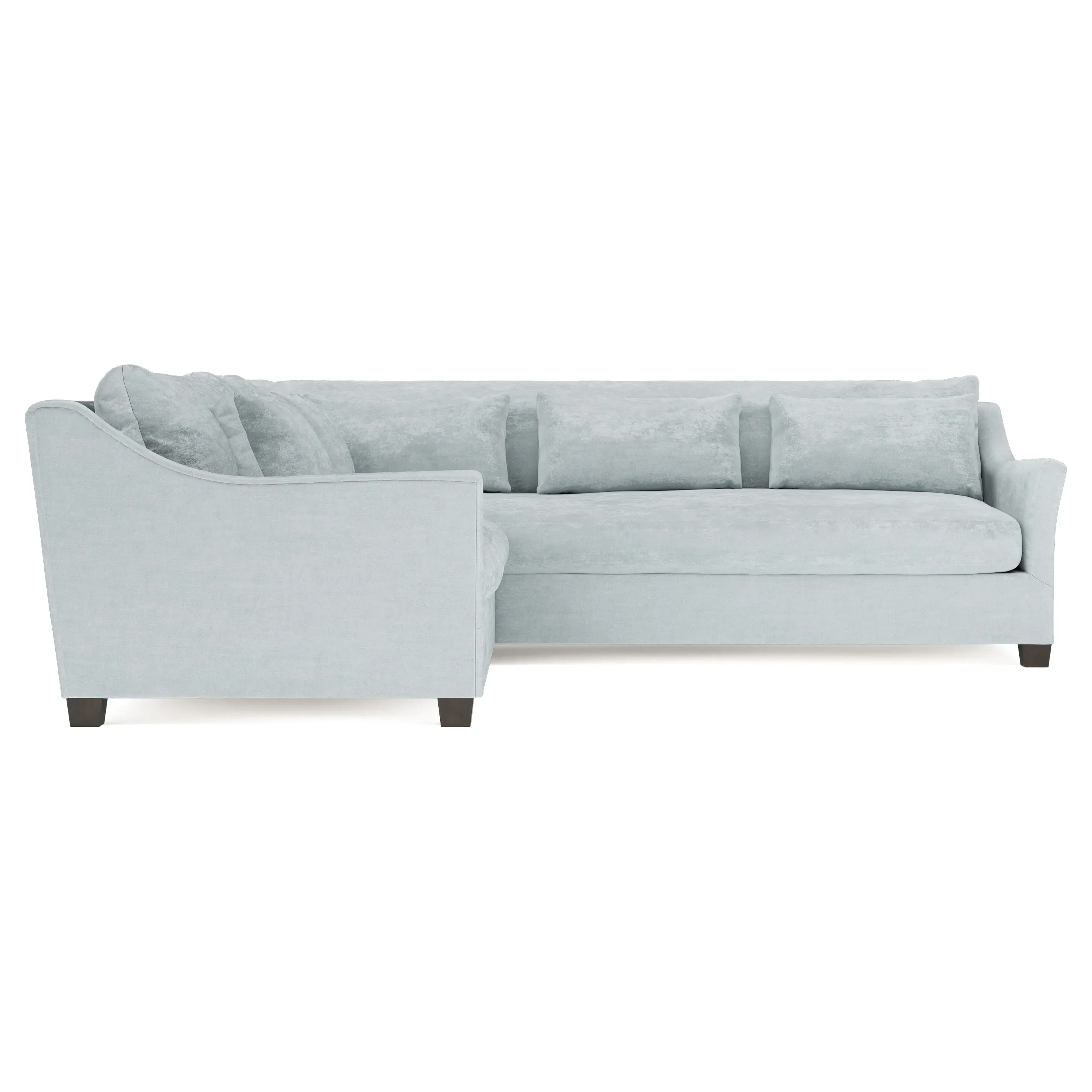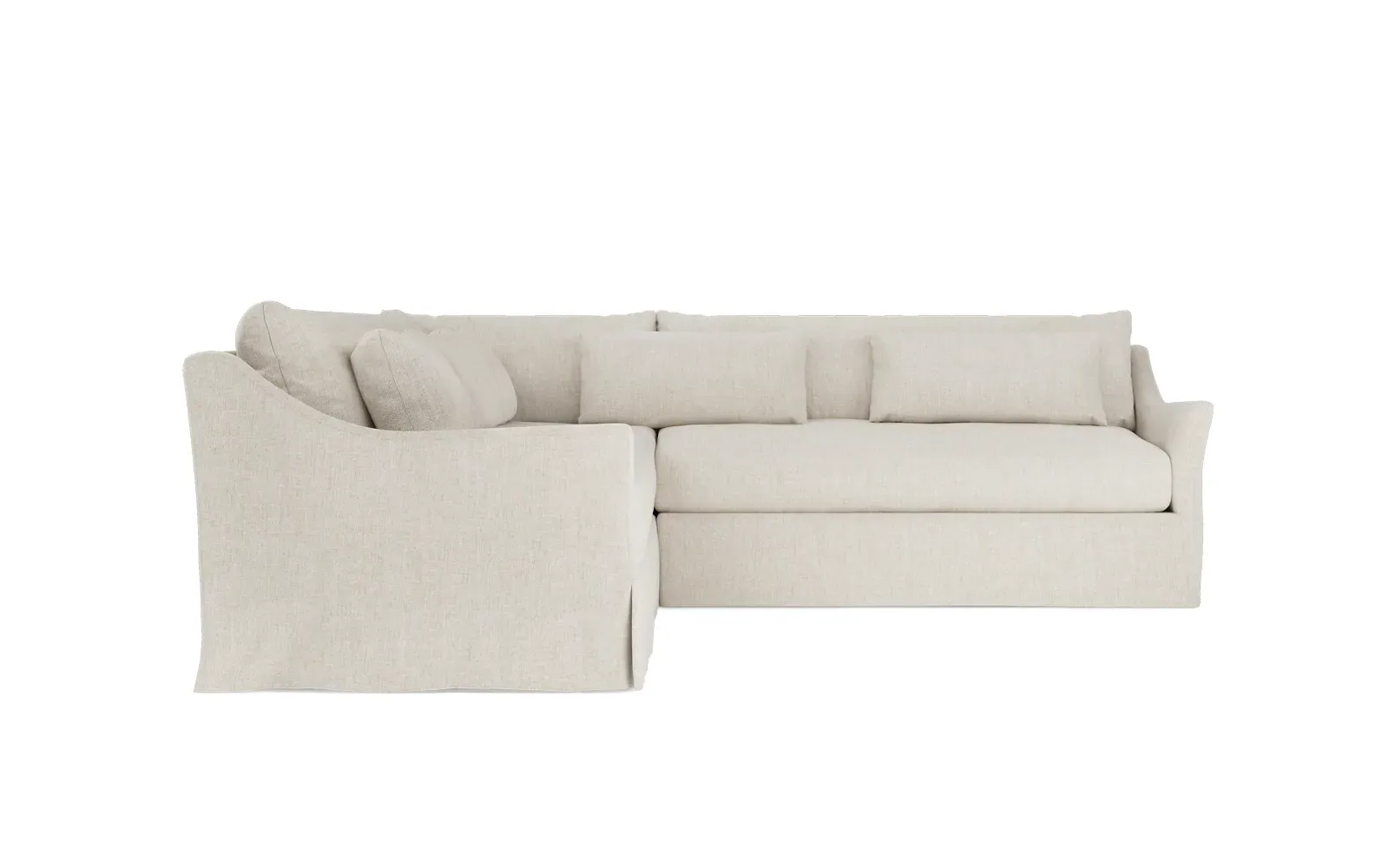 The left 106” Pauline corner sectional features gently sloped, flared arms, low wood legs, and a spacious seat. Its structured silhouette is a natural divider for great rooms, making it easy to define a seating area in open-concept spaces. Soft yet supportive, the seat cushions are designed for plush comfort, with a foam core surrounded by a blend of fiber, down, and feather fill. Choose from a variety of upholstery options, including linen, velvet, and performance fabrics. <b>Overall Dimensions: </b> 106" W x 118" D x 35" H. <b>End Sofa with Corner Dimensions: </b> 118" W x 41" D x 35" H; <b>End Sofa Dimensions: </b> 65” W x 41” D x 35” H; <b>Seat Depth: </b>19” to the front of lumbar pillows, 24” to the front of back cushions; <b>Seat Height: </b>22”; <b>Arm Height: </b> 25”; <b>Leg Height: </b> 3 ½”. <b>Materials:</b> FSC®-certified, US-sourced, formaldehyde-free solid kiln-dried hardwood and furniture-grade laminates. <b>Material Finish: </b> Espresso legs. <b>Pieces Included: </b> Right end sofa with corner and left end sofa.