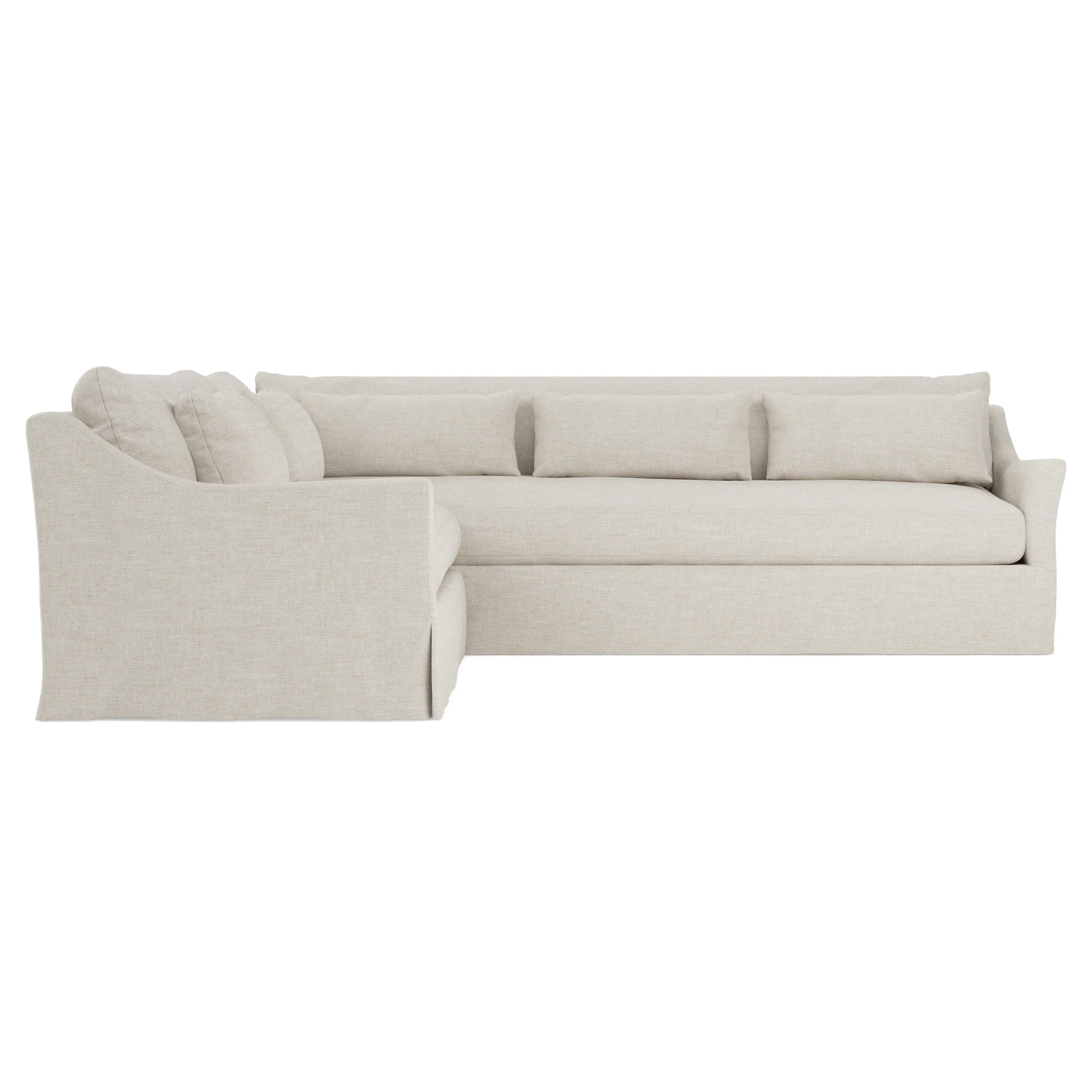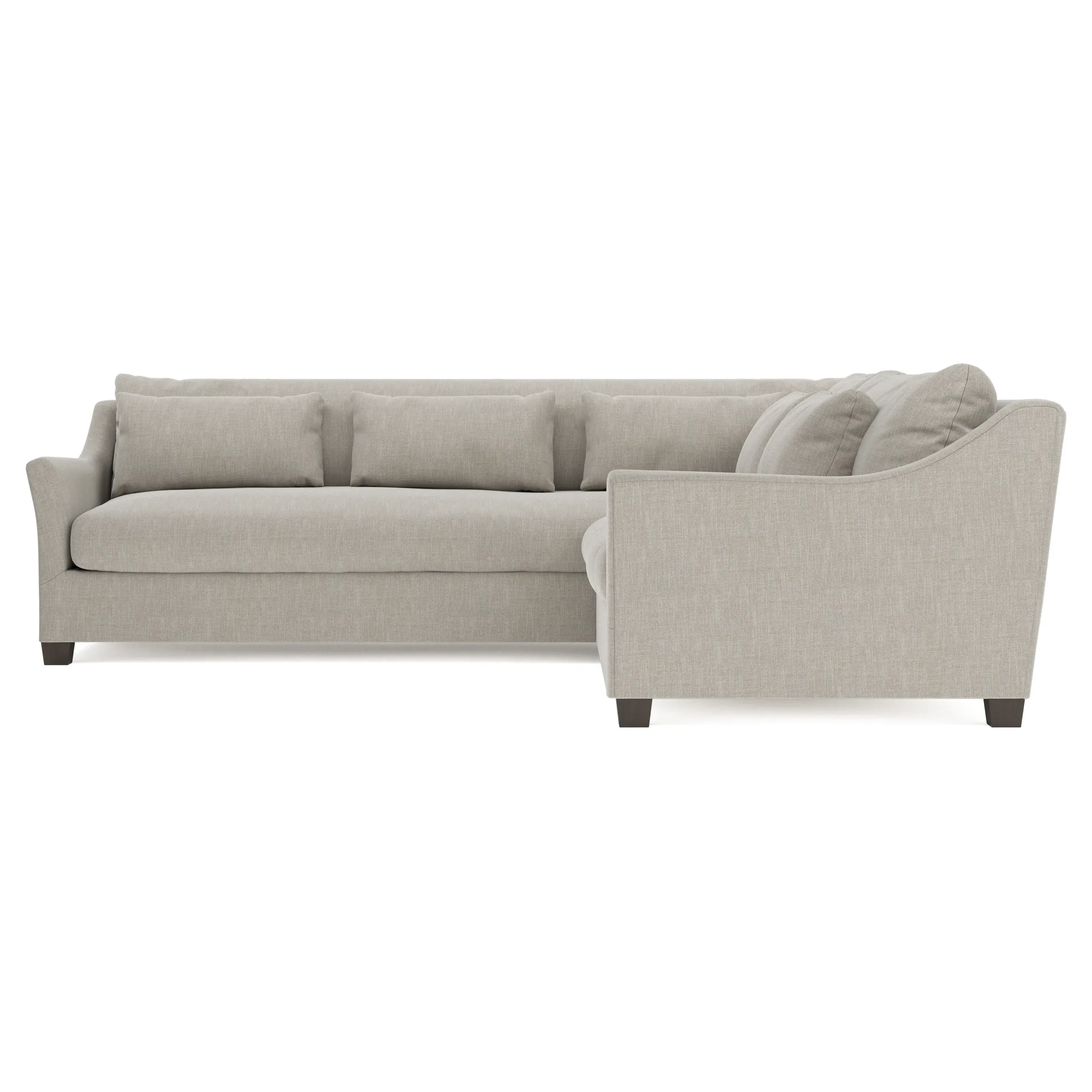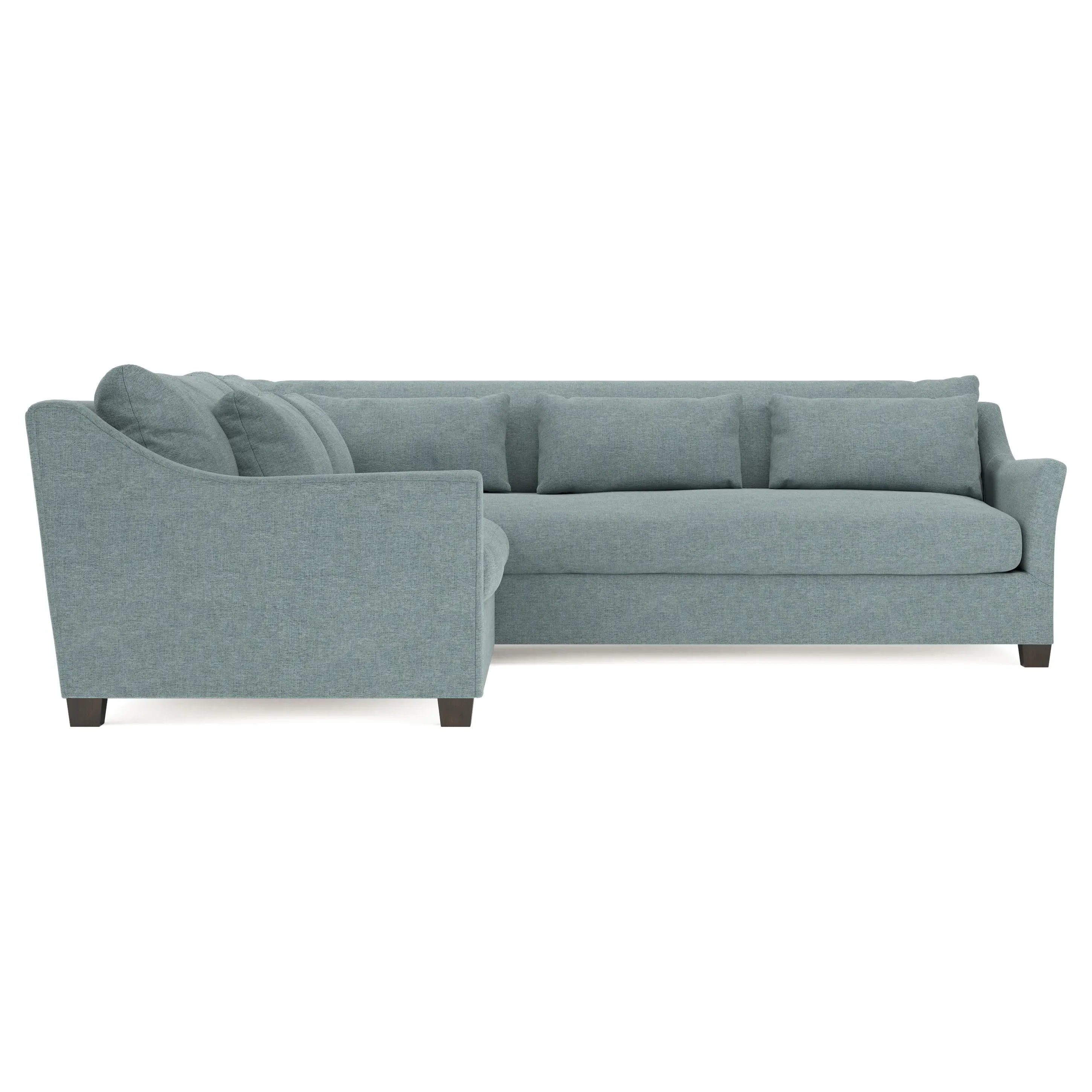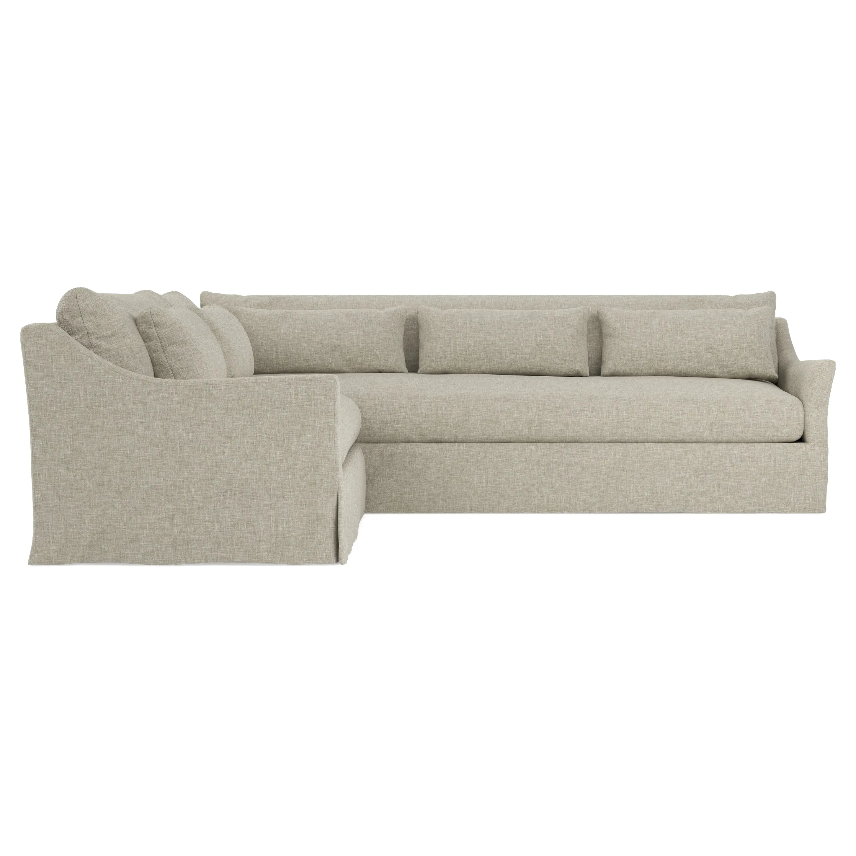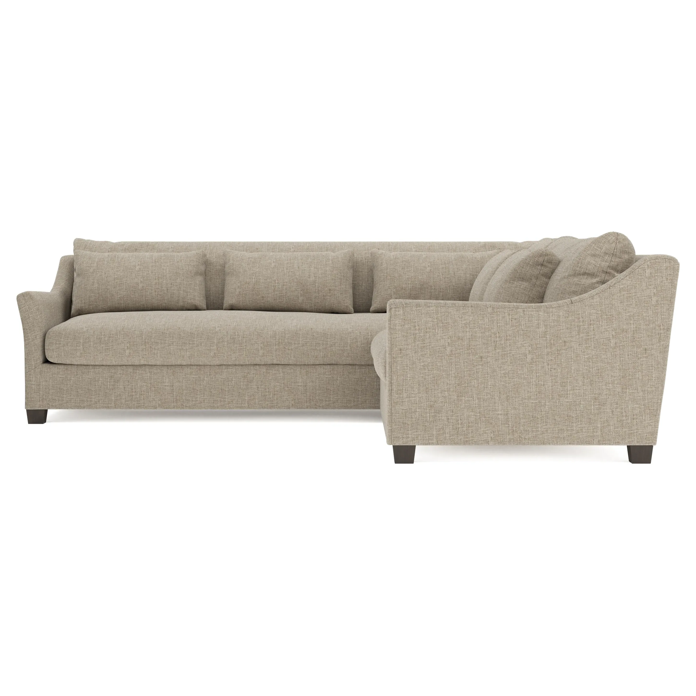The left 106” Pauline corner sectional features gently sloped, flared arms, low wood legs, and a spacious seat. Its structured silhouette is a natural divider for great rooms, making it easy to define a seating area in open-concept spaces. Soft yet supportive, the seat cushions are designed for plush comfort, with a foam core surrounded by a blend of fiber, down, and feather fill. Choose from a variety of upholstery options, including linen, velvet, and performance fabrics. <b>Overall Dimensions: </b> 106" W x 118" D x 35" H. <b>End Sofa with Corner Dimensions: </b> 118" W x 41" D x 35" H; <b>End Sofa Dimensions: </b> 65” W x 41” D x 35” H; <b>Seat Depth: </b>19” to the front of lumbar pillows, 24” to the front of back cushions; <b>Seat Height: </b>22”; <b>Arm Height: </b> 25”; <b>Leg Height: </b> 3 ½”. <b>Materials:</b> FSC®-certified, US-sourced, formaldehyde-free solid kiln-dried hardwood and furniture-grade laminates. <b>Material Finish: </b> Espresso legs. <b>Pieces Included: </b> Right end sofa with corner and left end sofa.