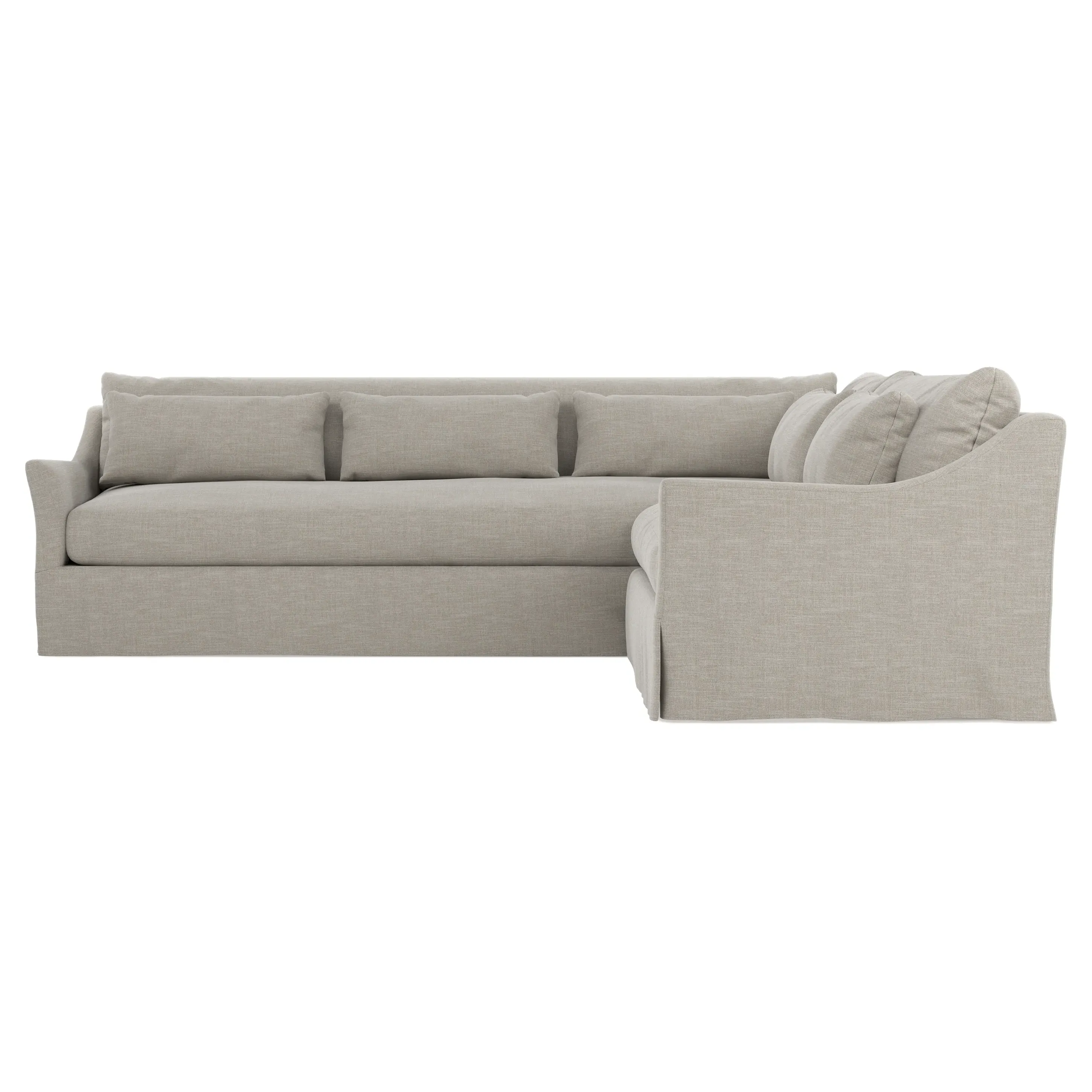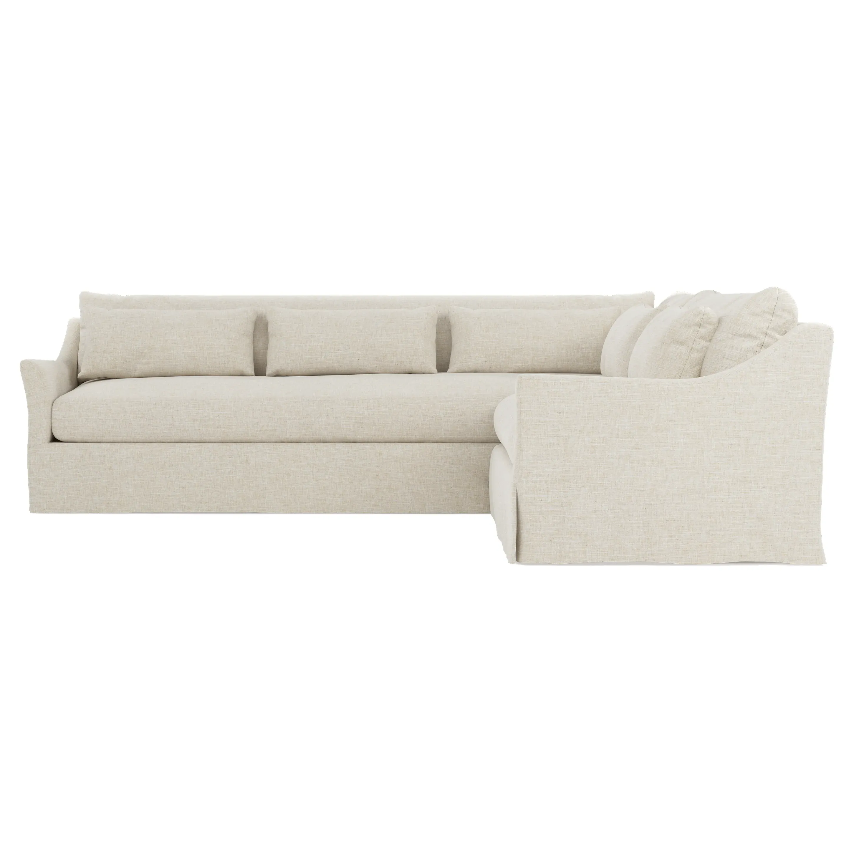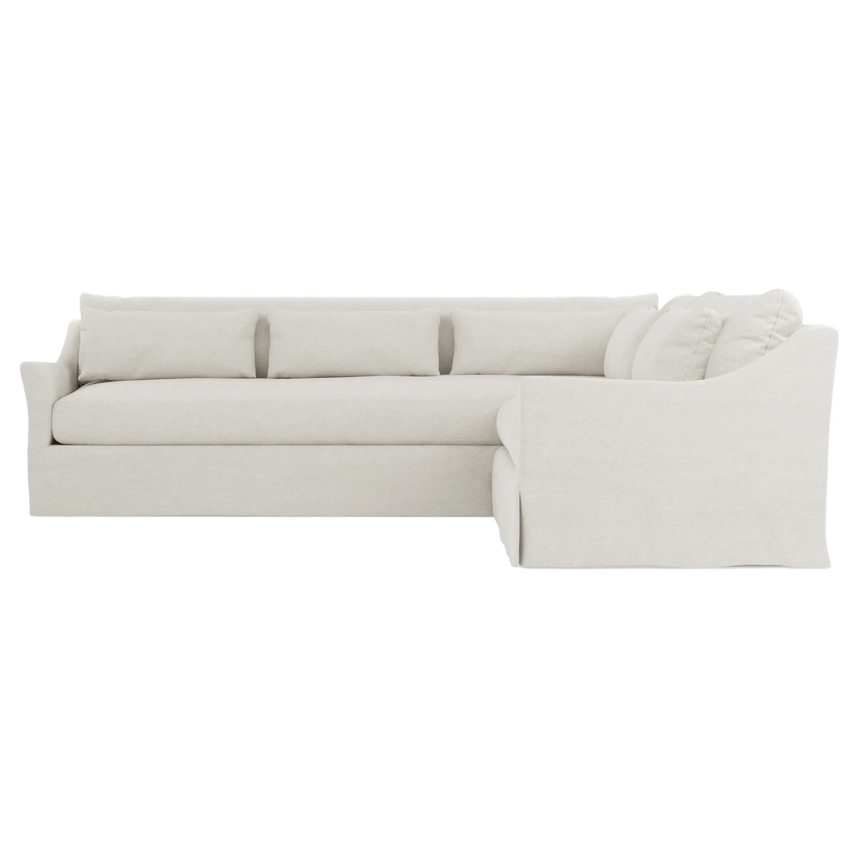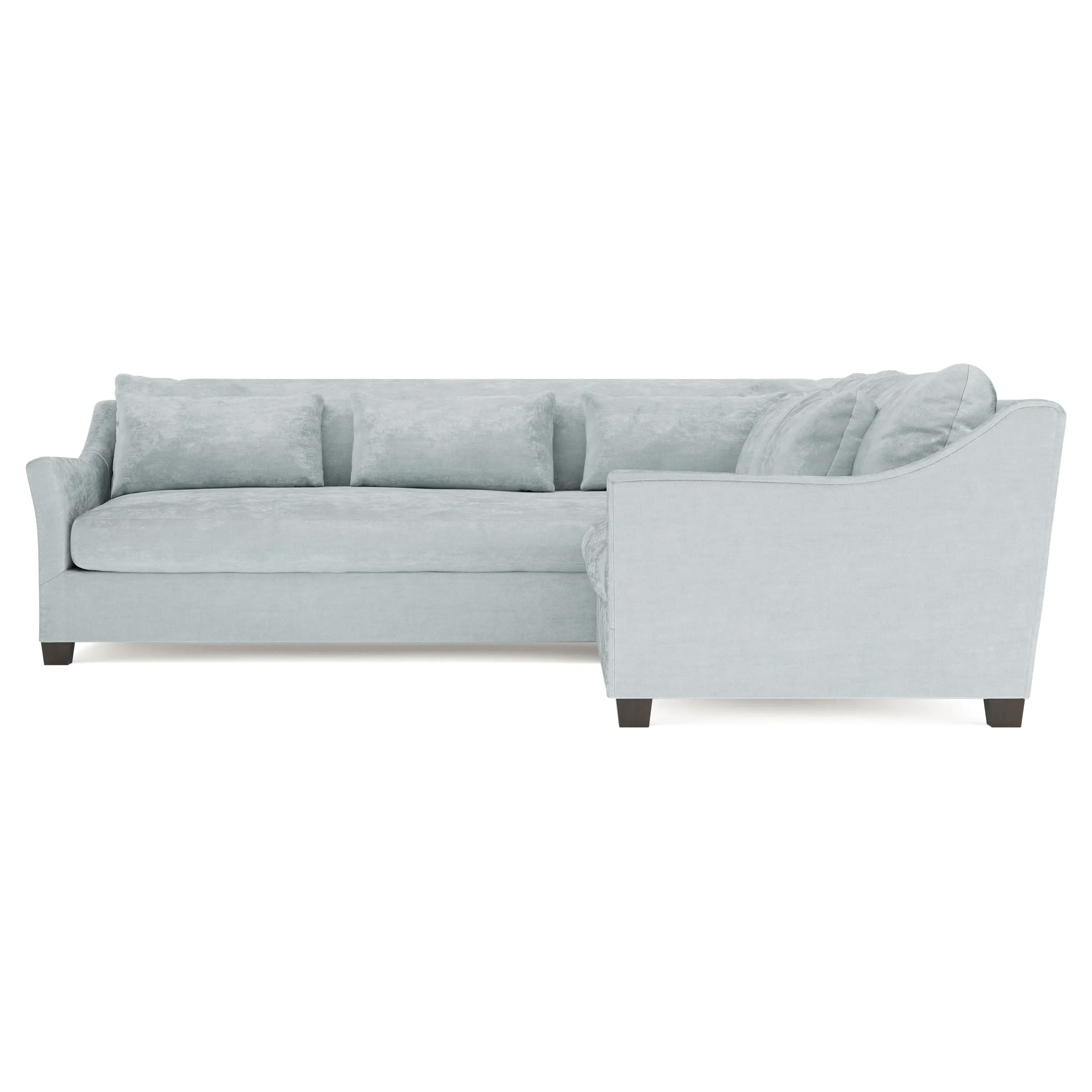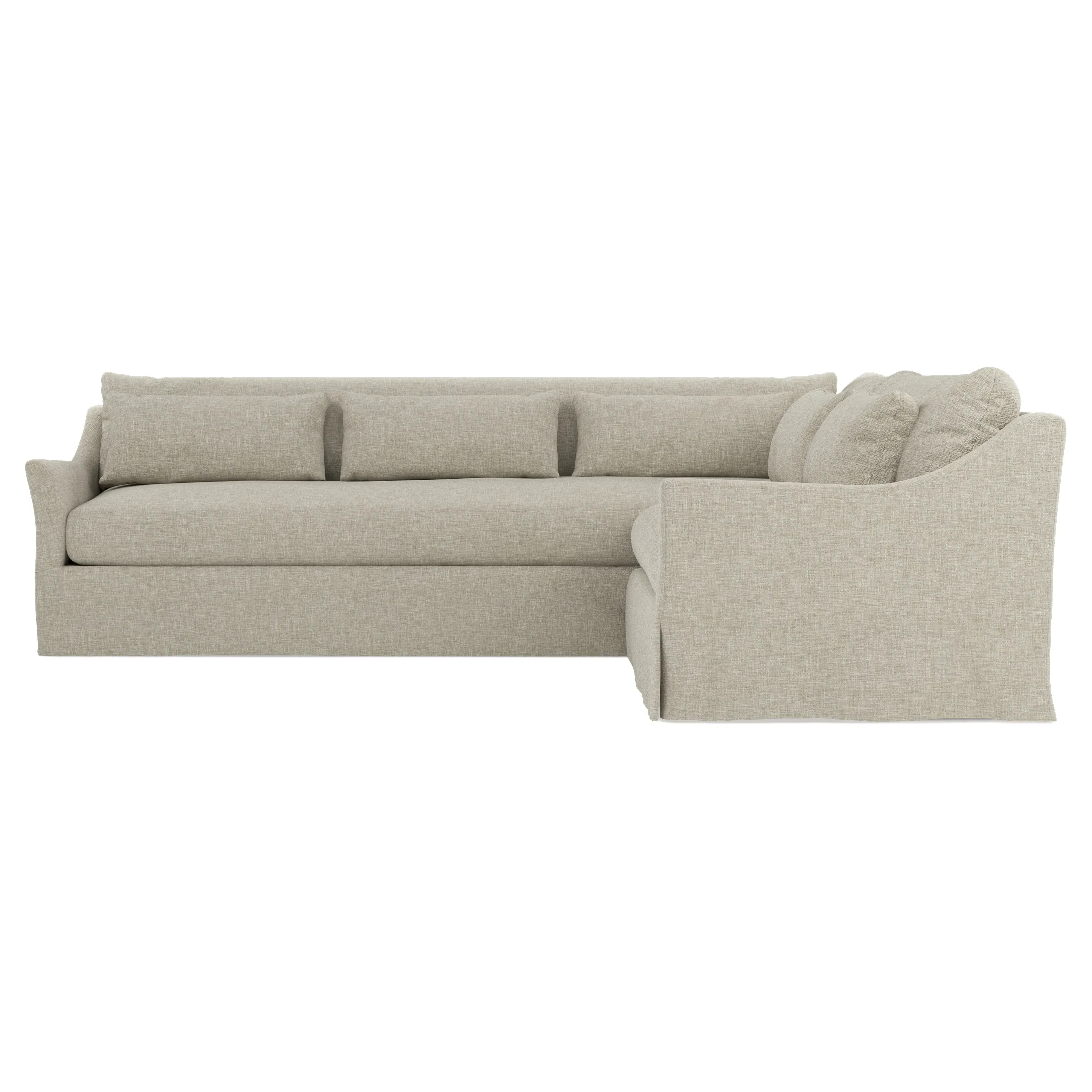 The left 106” Pauline corner sectional features gently sloped, flared arms, low wood legs, and a spacious seat. Its structured silhouette is a natural divider for great rooms, making it easy to define a seating area in open-concept spaces. Soft yet supportive, the seat cushions are designed for plush comfort, with a foam core surrounded by a blend of fiber, down, and feather fill. Choose from a variety of upholstery options, including linen, velvet, and performance fabrics. <b>Overall Dimensions: </b> 106" W x 118" D x 35" H. <b>End Sofa with Corner Dimensions: </b> 118" W x 41" D x 35" H; <b>End Sofa Dimensions: </b> 65” W x 41” D x 35” H; <b>Seat Depth: </b>19” to the front of lumbar pillows, 24” to the front of back cushions; <b>Seat Height: </b>22”; <b>Arm Height: </b> 25”; <b>Leg Height: </b> 3 ½”. <b>Materials:</b> FSC®-certified, US-sourced, formaldehyde-free solid kiln-dried hardwood and furniture-grade laminates. <b>Material Finish: </b> Espresso legs. <b>Pieces Included: </b> Right end sofa with corner and left end sofa.