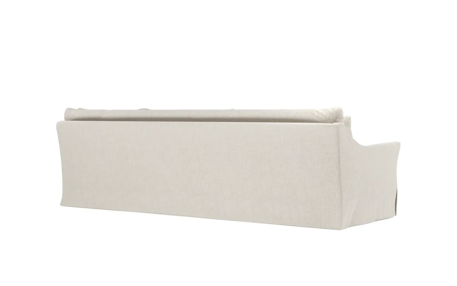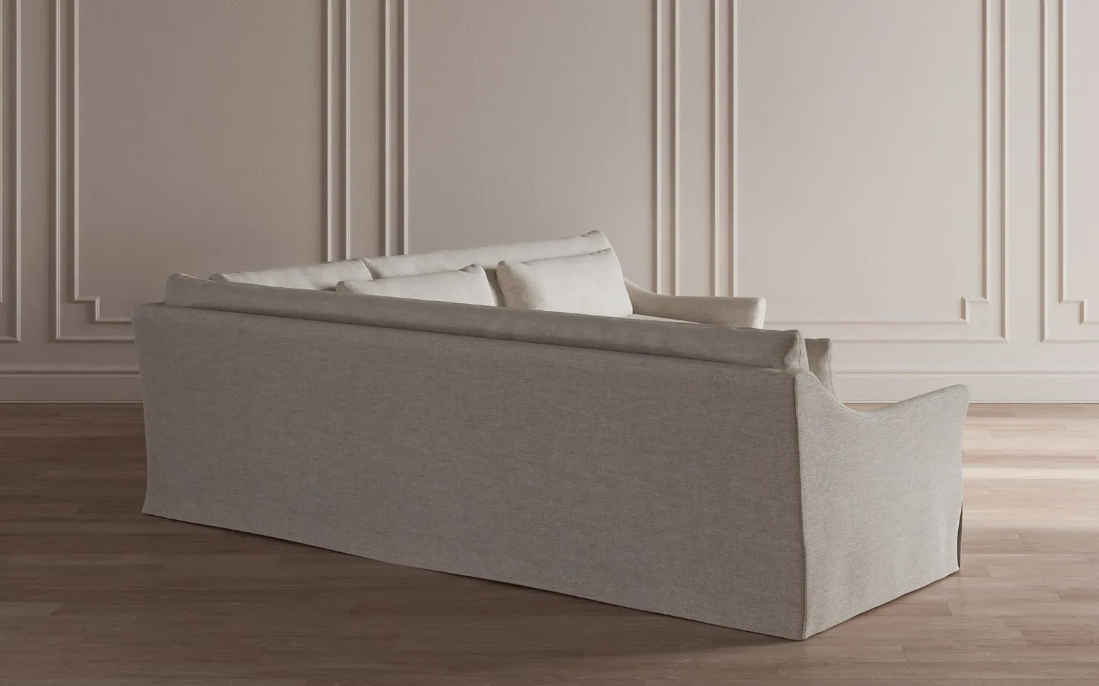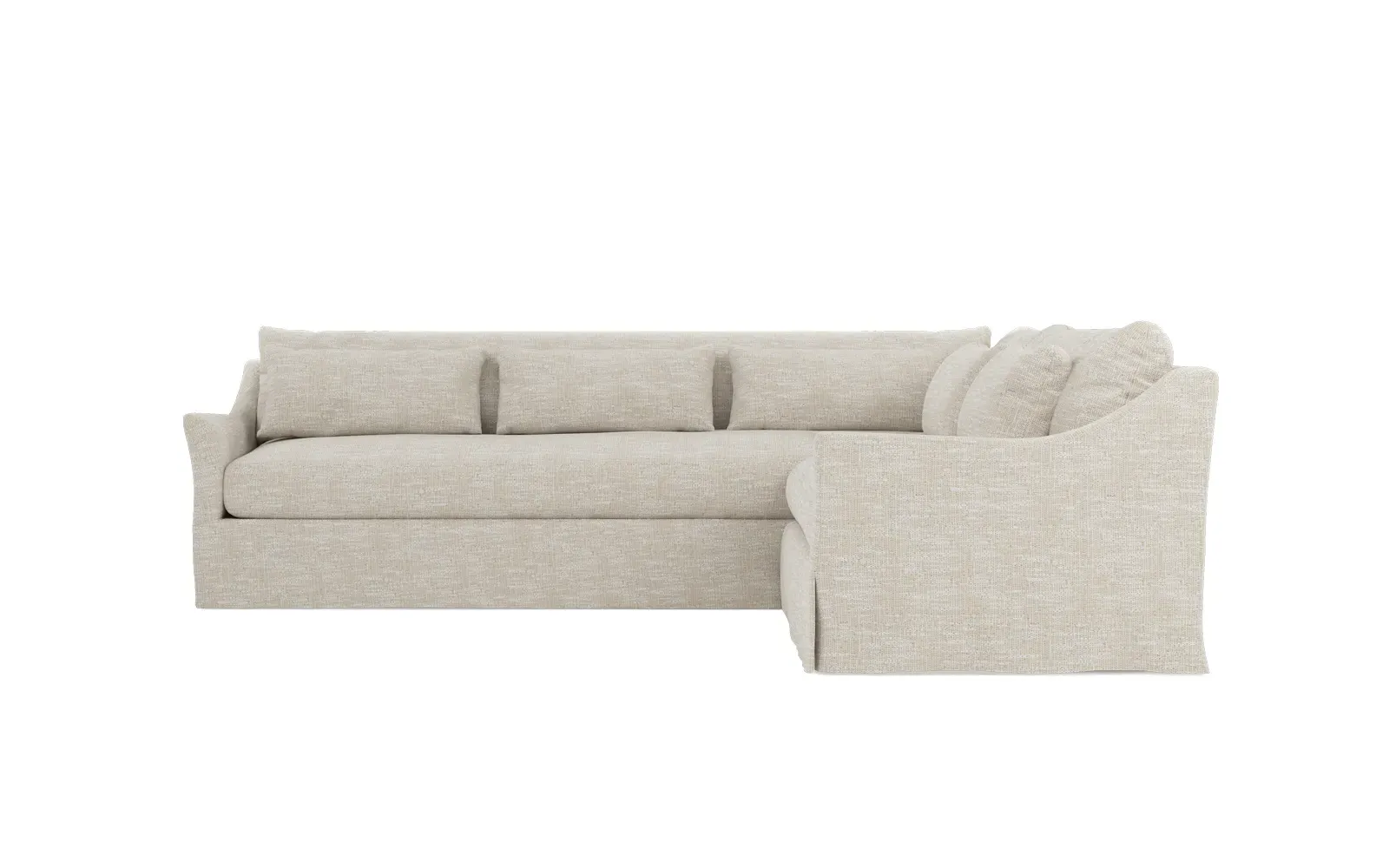 The Pauline corner sectional offers plush comfort with its foam core surrounded by fiber, down, and feather fill. Its gently sloped, flared arms and structured silhouette provide both support and visual appeal, while the spacious seat design accommodates relaxed lounging. The solid kiln-dried hardwood frame ensures lasting durability, and the low espresso wood legs add a refined finish. W269 x D300 x H89 cm.