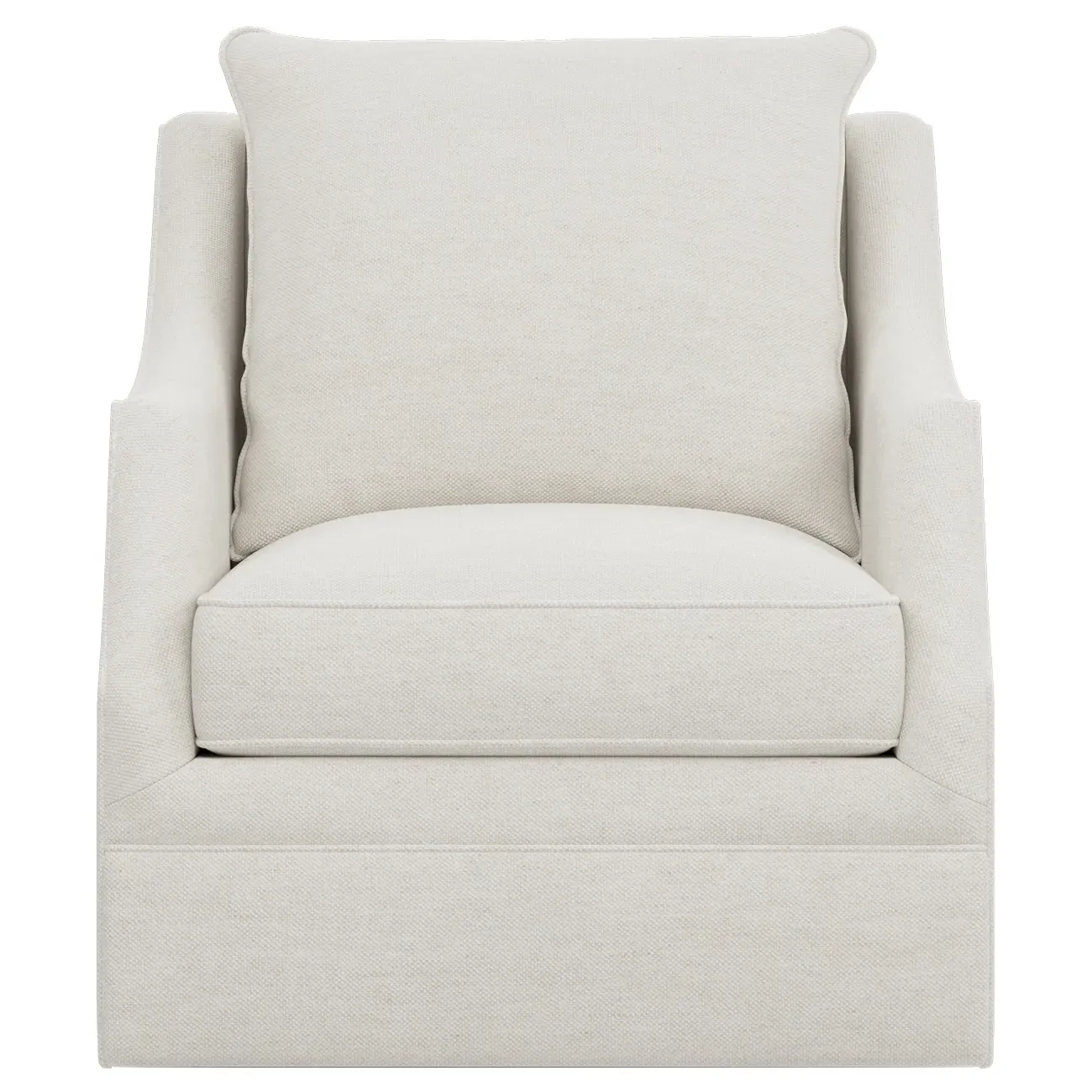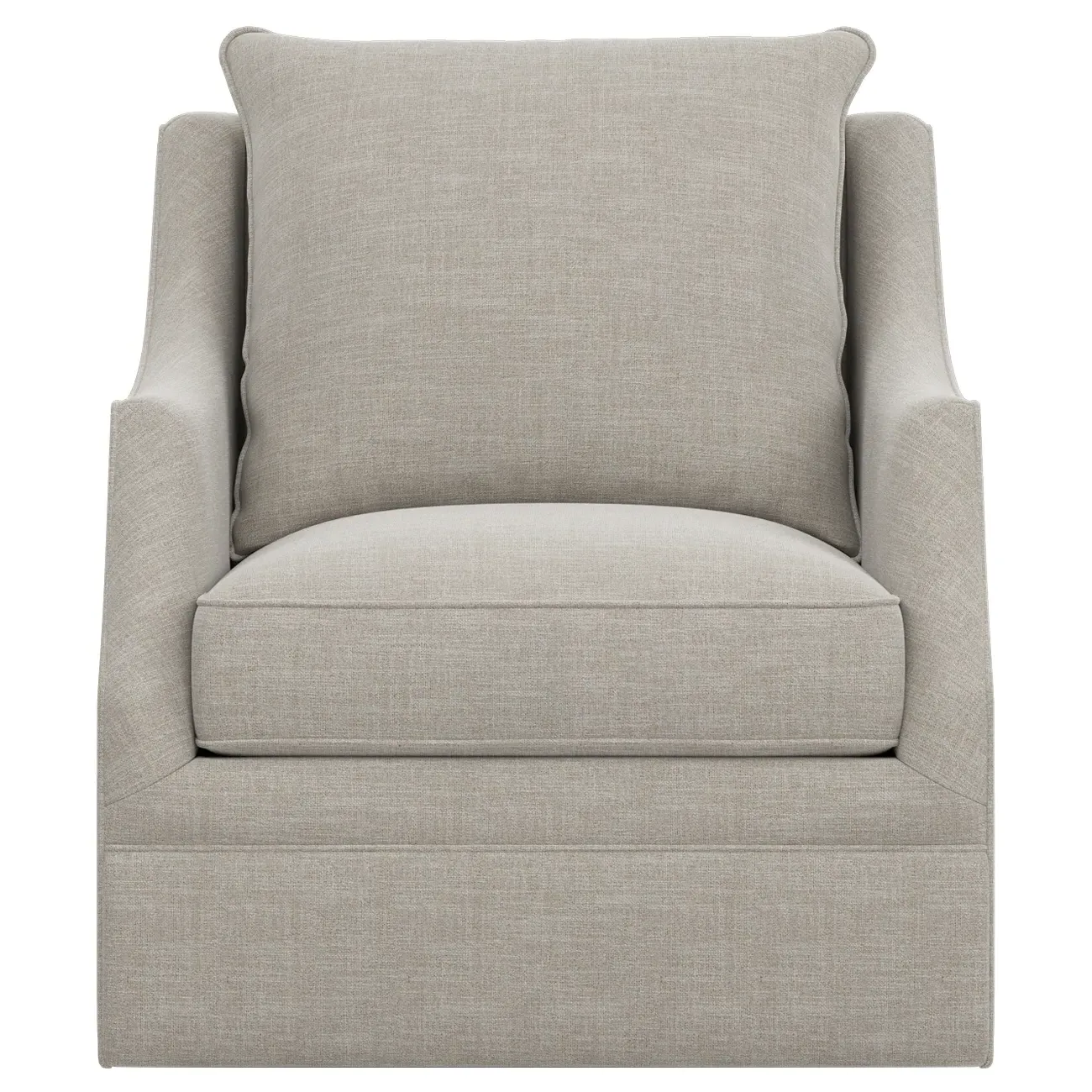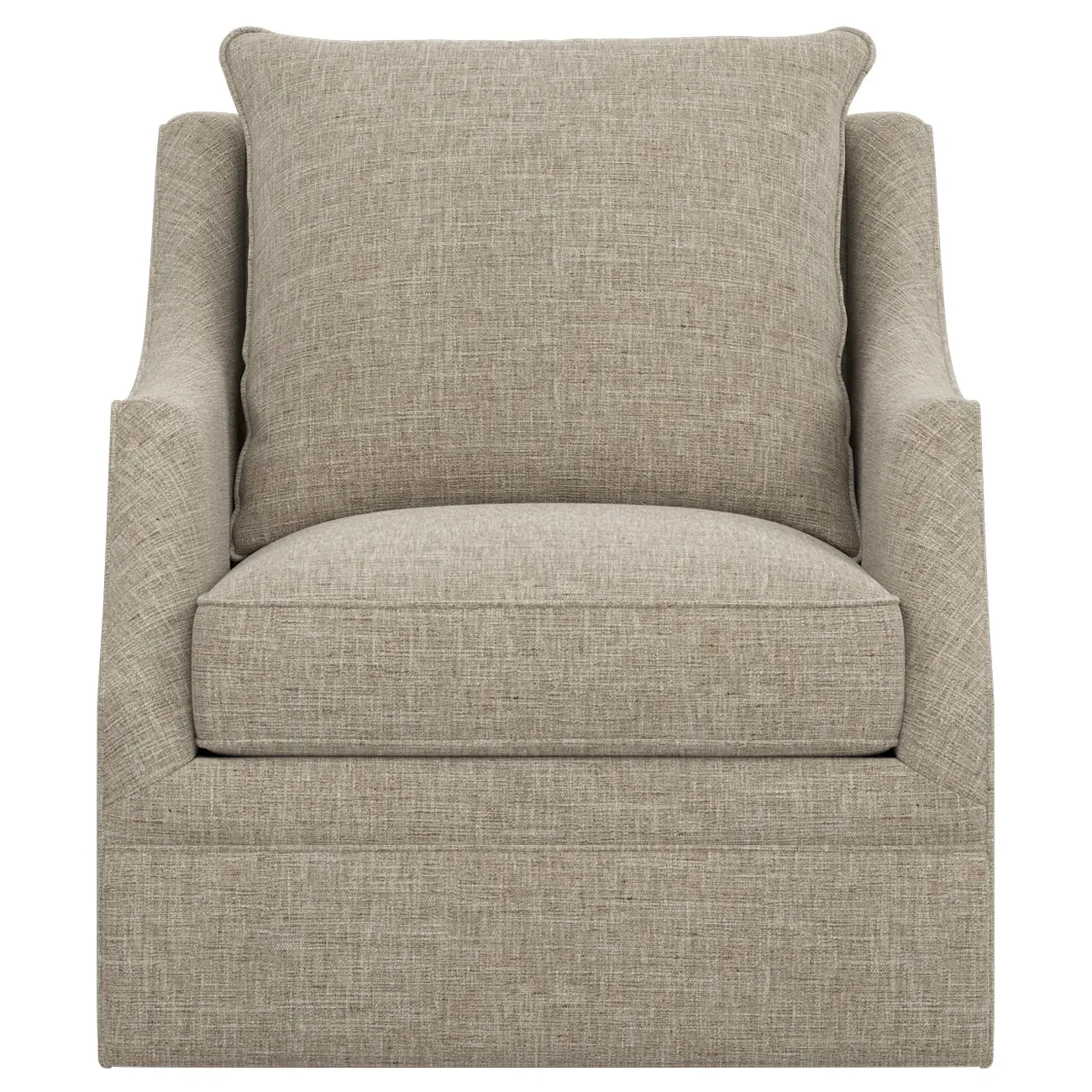 The Romilly Swivel Glider Chair combines comfort with versatile movement, featuring a smooth swivel and gliding mechanism. Its kiln-dried hardwood frame provides lasting durability, while the CertiPUR-US certified foam core wrapped with soft foam offers superior support. The channel-quilted casing filled with fiber, down, and feather blend adds plush comfort for extended seating. The steel base ensures stable operation through every swivel and glide motion. W84 x D99 x H97 cm.