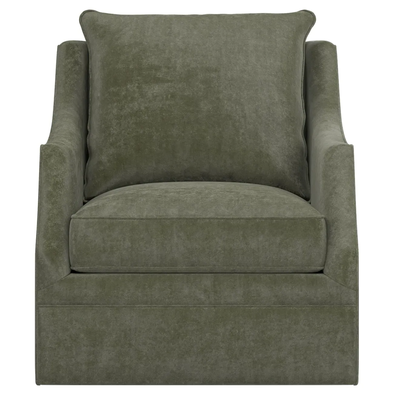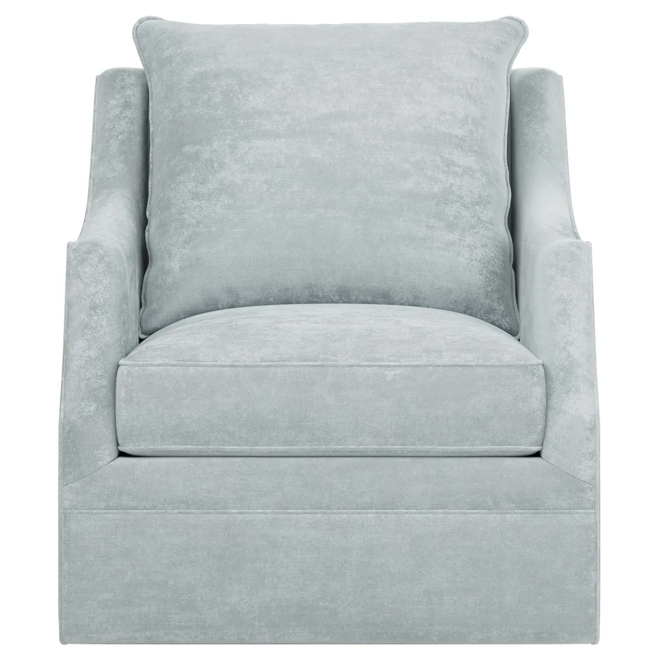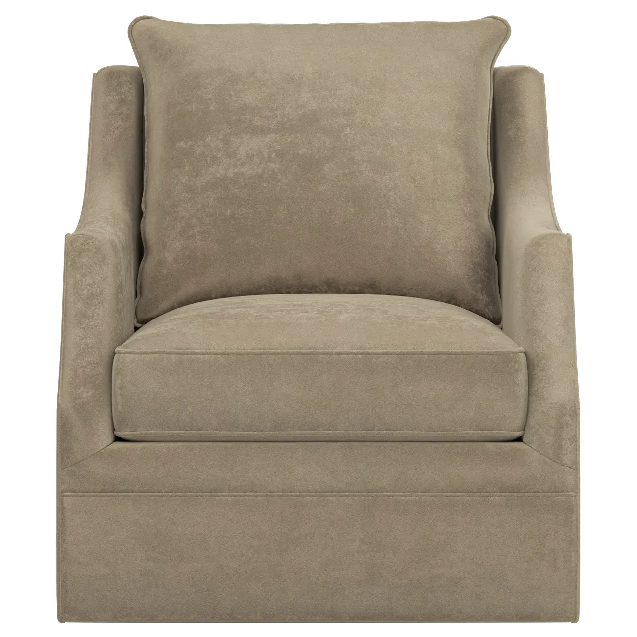 The Romilly Swivel Glider Chair combines comfort with versatile movement, featuring a smooth swivel and gliding mechanism. Its kiln-dried hardwood frame provides lasting durability, while the CertiPUR-US certified foam core wrapped with soft foam offers superior support. The channel-quilted casing filled with fiber, down, and feather blend adds plush comfort for extended seating. The steel base ensures stable operation through every swivel and glide motion. W84 x D99 x H97 cm.