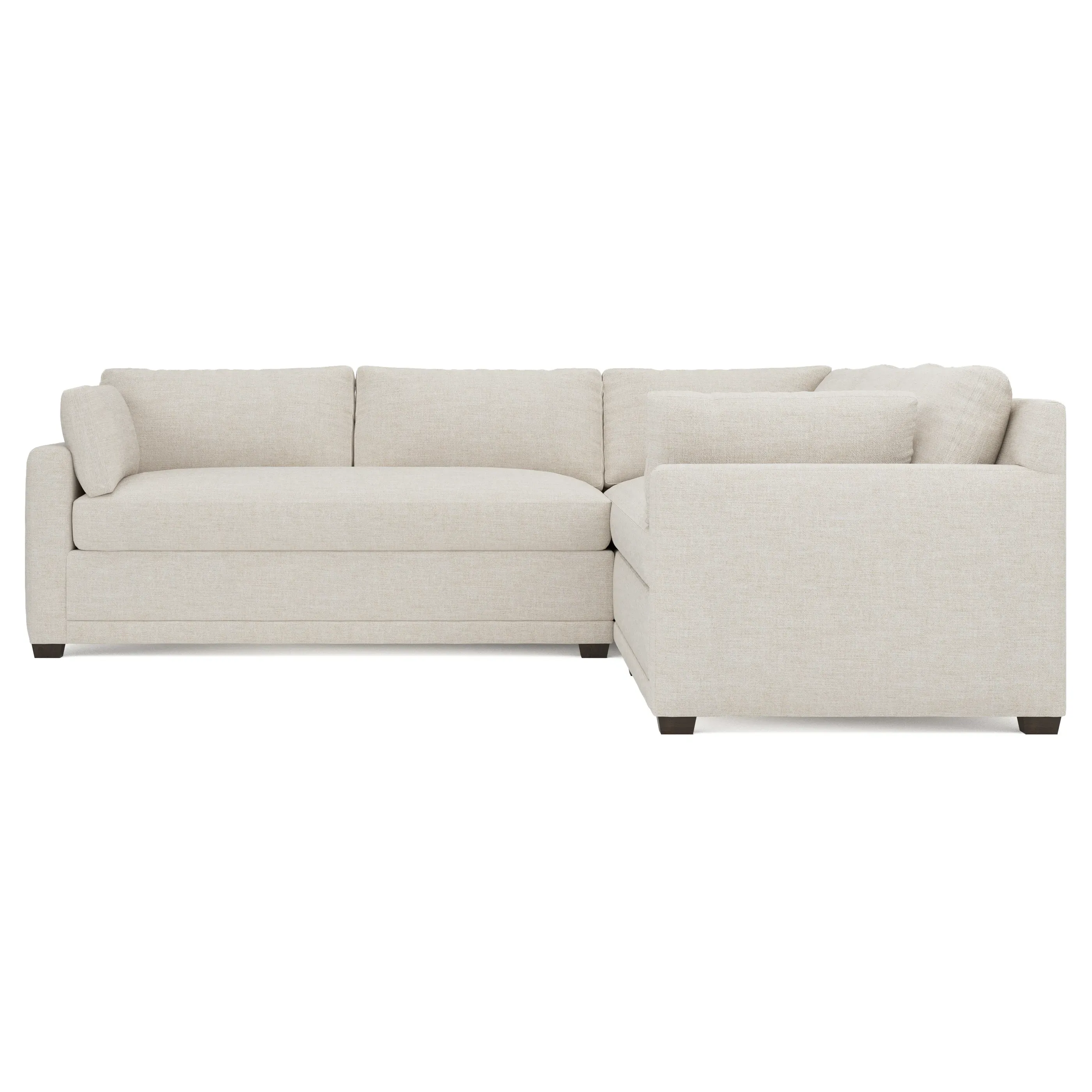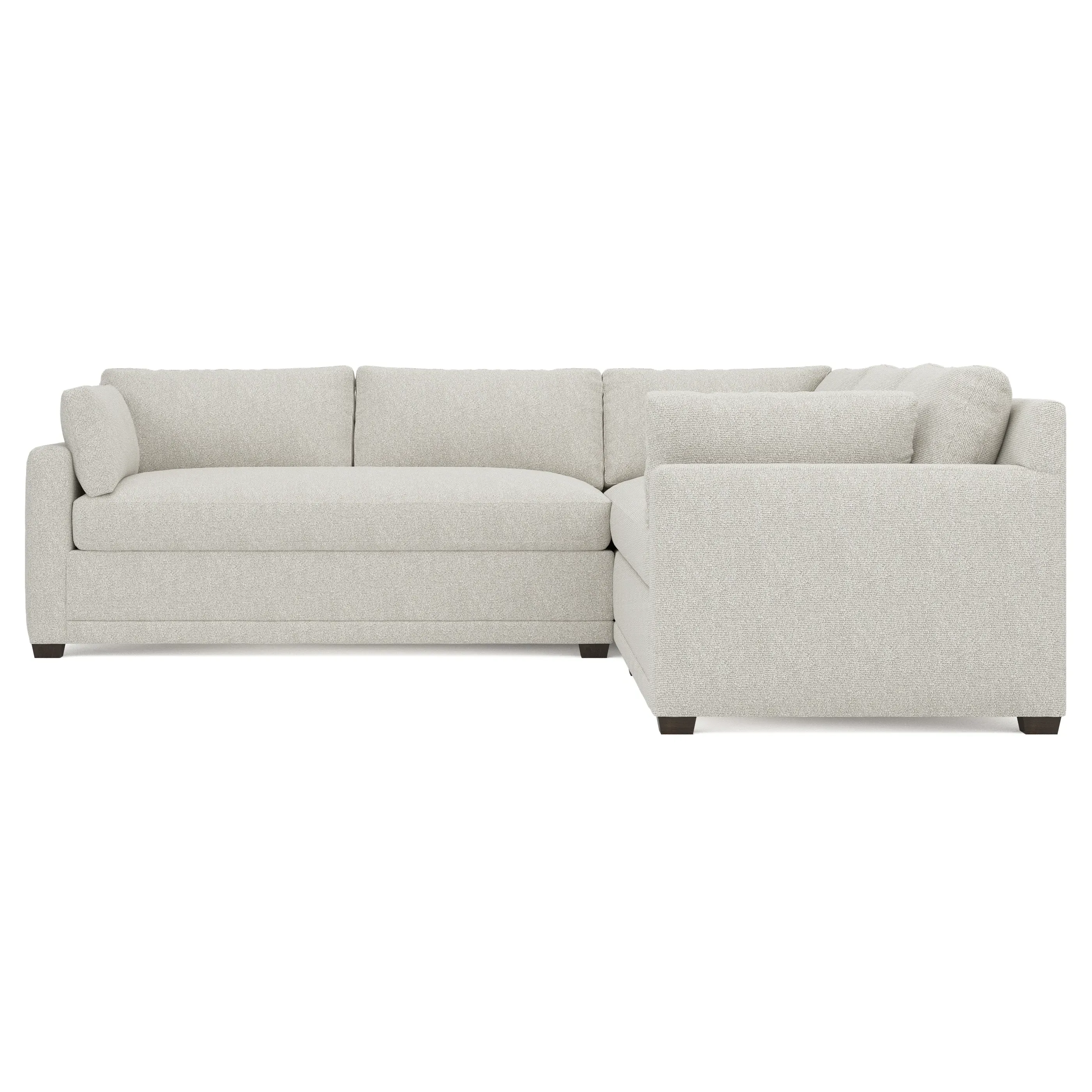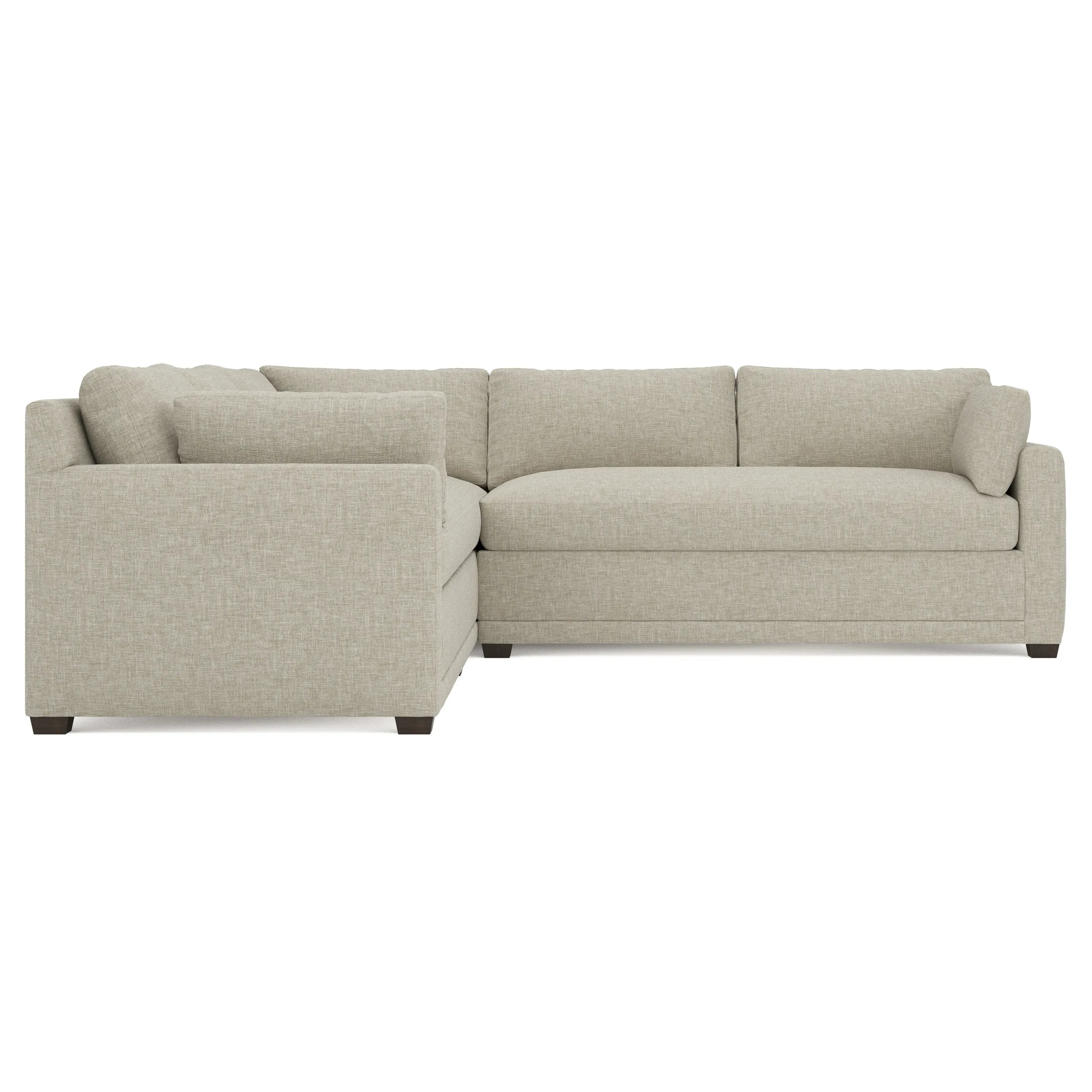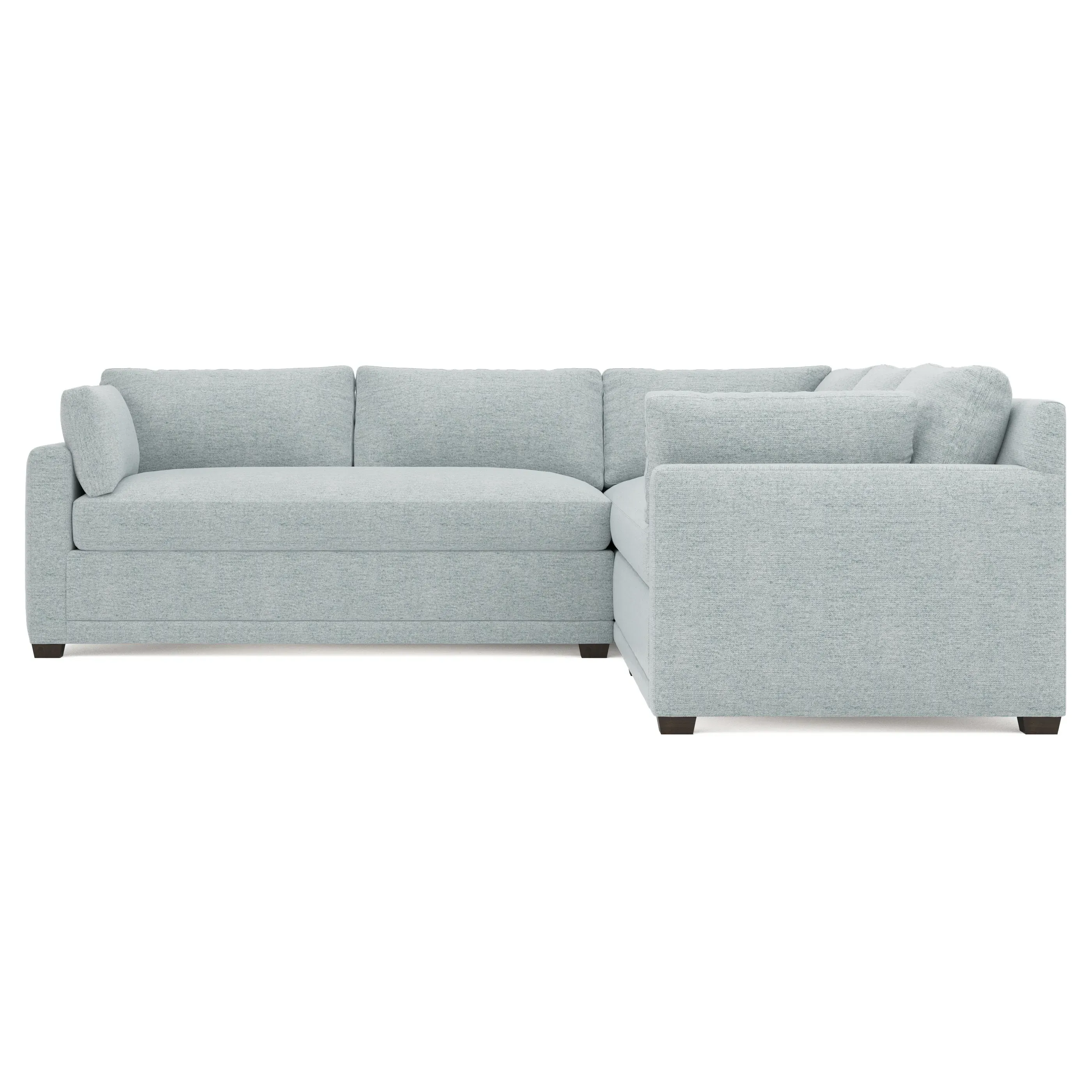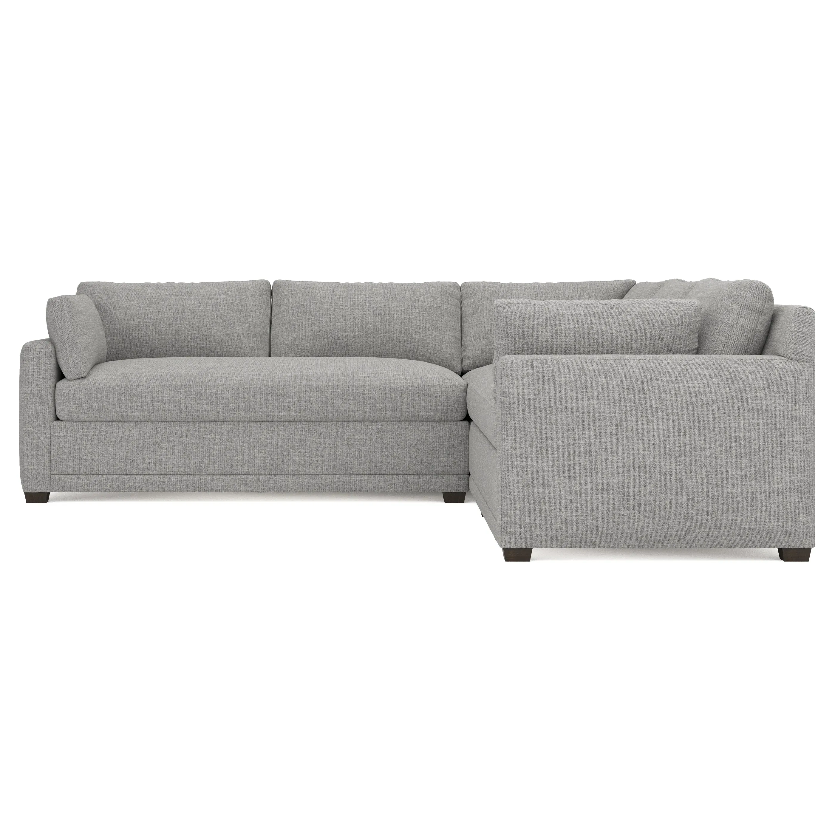 The Weybridge corner sectional offers generous seating with its plush box cushions and streamlined track arms. Its foam core surrounded by fiber, down, and feather fill provides cloud-like comfort, while the long bench seat ensures uninterrupted relaxation. The tapered wood legs with espresso finish add stability and visual appeal. W279 x D295 x H89 cm.