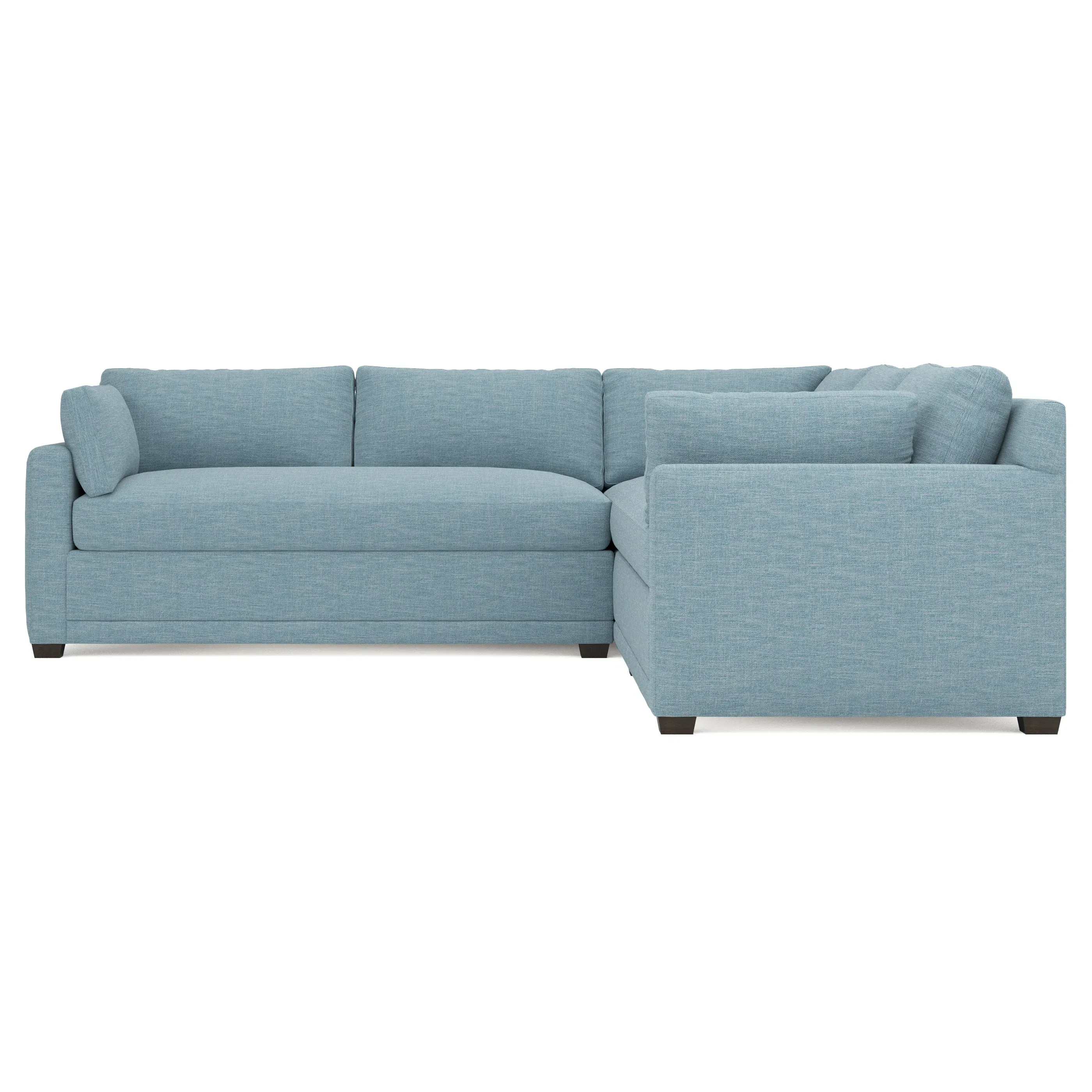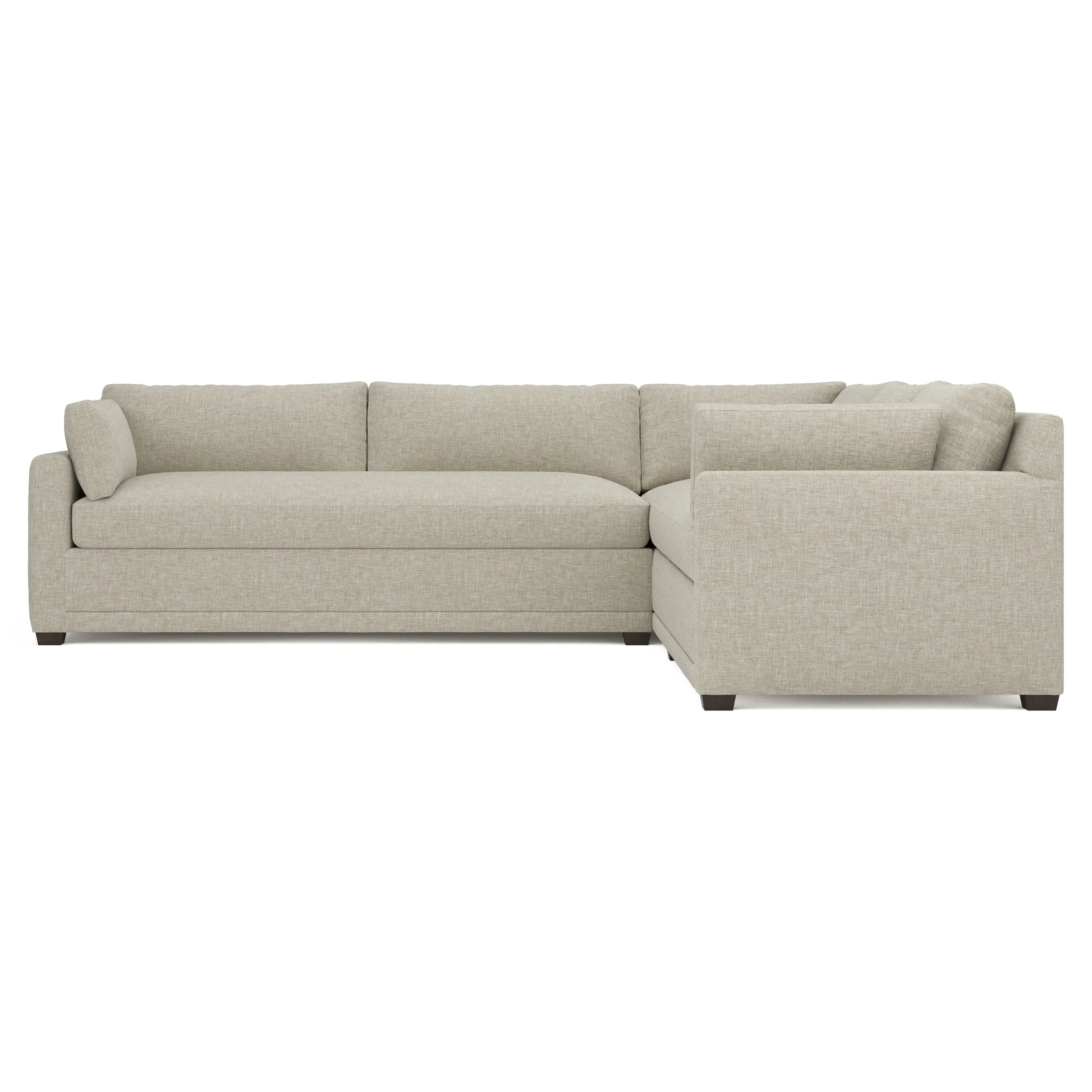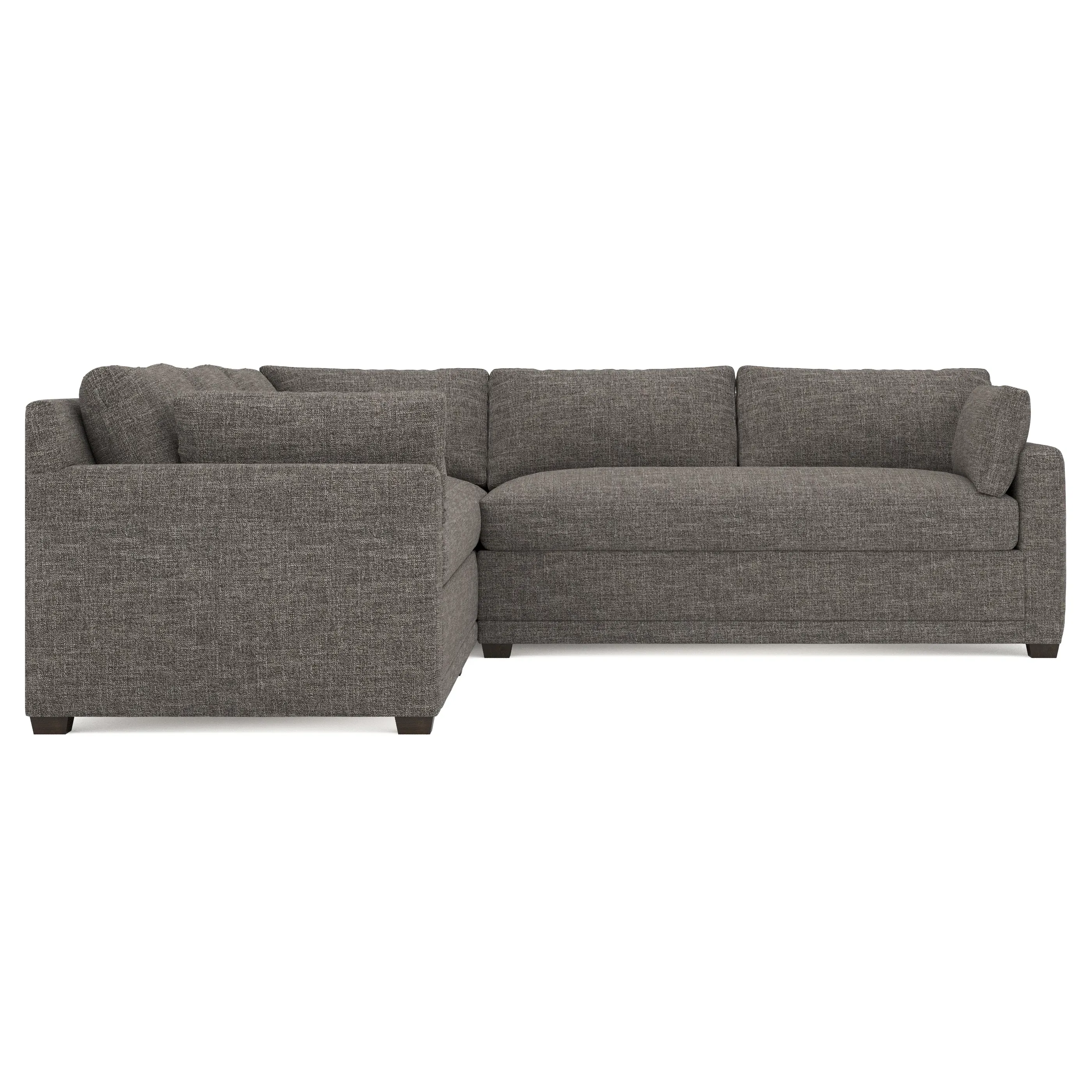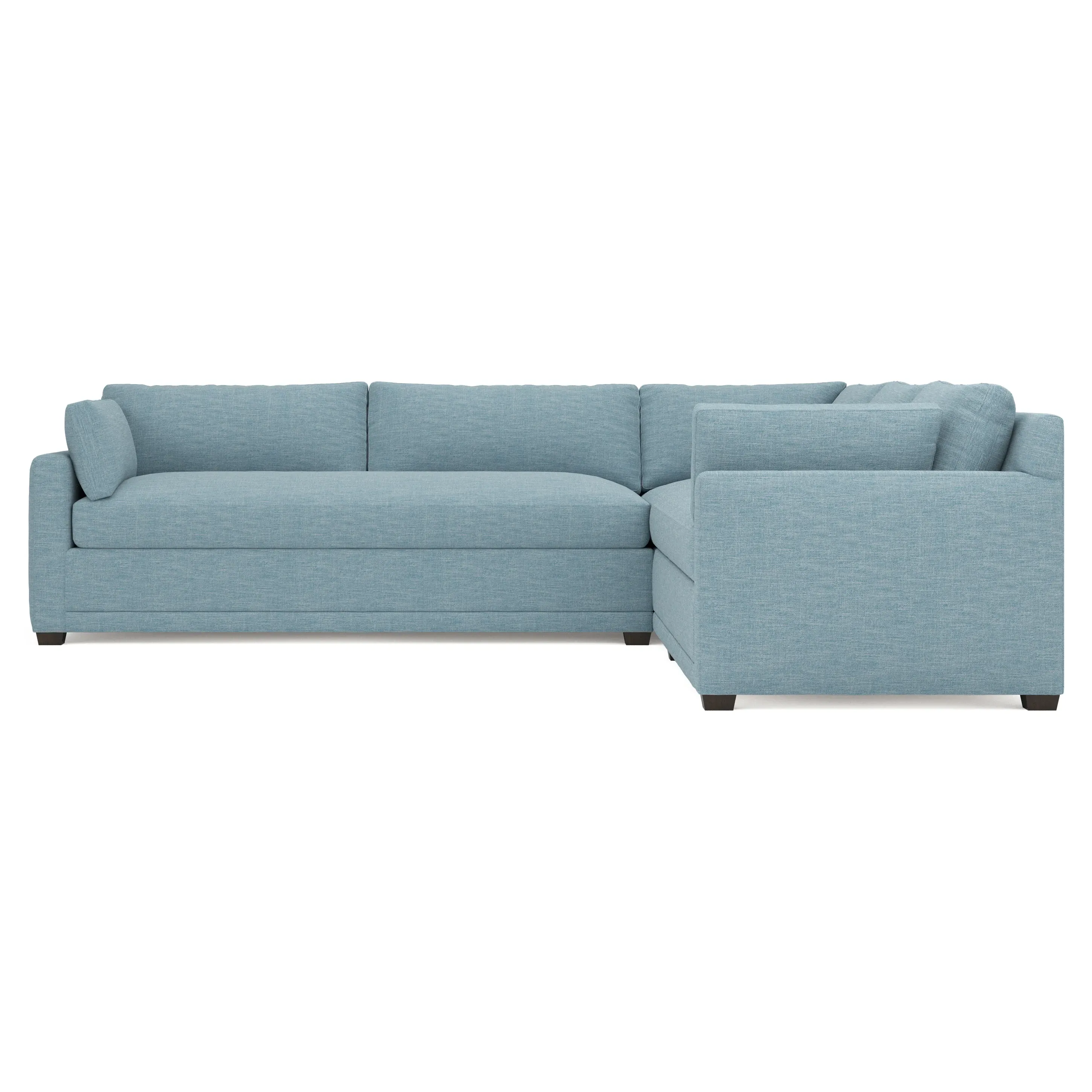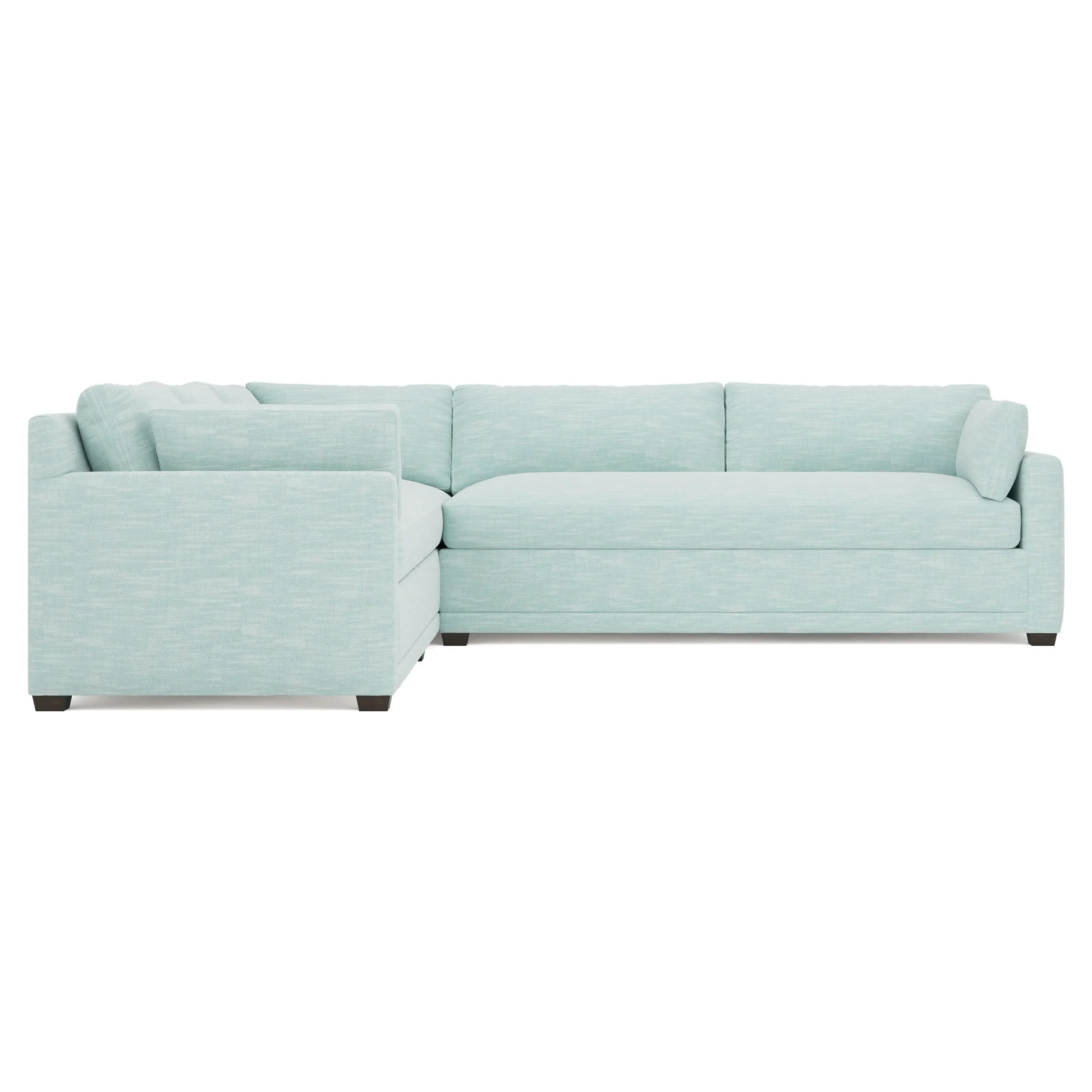 With a generous profile and plush box cushions, the left 110” Weybridge corner sectional is perfect for large gatherings. Streamlined track arms and tapered wood legs elevate the simple, modern silhouette. Soft and supportive cushioning offers plush, cloud-like comfort, with a foam core surrounded by a blend of fiber, down, and feather fill. The long bench seat provides uninterrupted comfort. Choose from a variety of upholstery options, including linen, velvet, and performance fabrics. <b>Overall Dimensions:</b> 110" W x 116" D x 35" H. <b>End Sofa Dimensions:</b> 71” W x 39” D x 35” H; <b>End Sofa with Corner Dimensions:</b> 116” W x 39” D x 35” H; <b>Seat Dimensions:</b> 24” D x 21” H; <b>Arm Height:</b> 25”; <b>Leg Height:</b> 2”. <b>Materials:</b> FSC®-certified, US-sourced, formaldehyde-free solid kiln-dried hardwood and furniture-grade laminates. <b>Material Finish:</b> Espresso. <b>Pieces Included:</b> Right end sofa with corner, left end sofa.