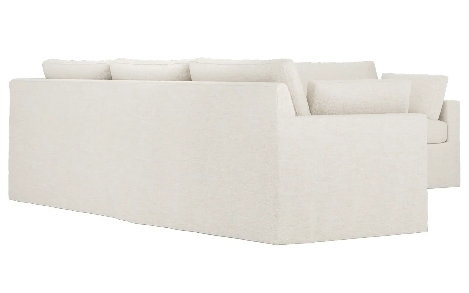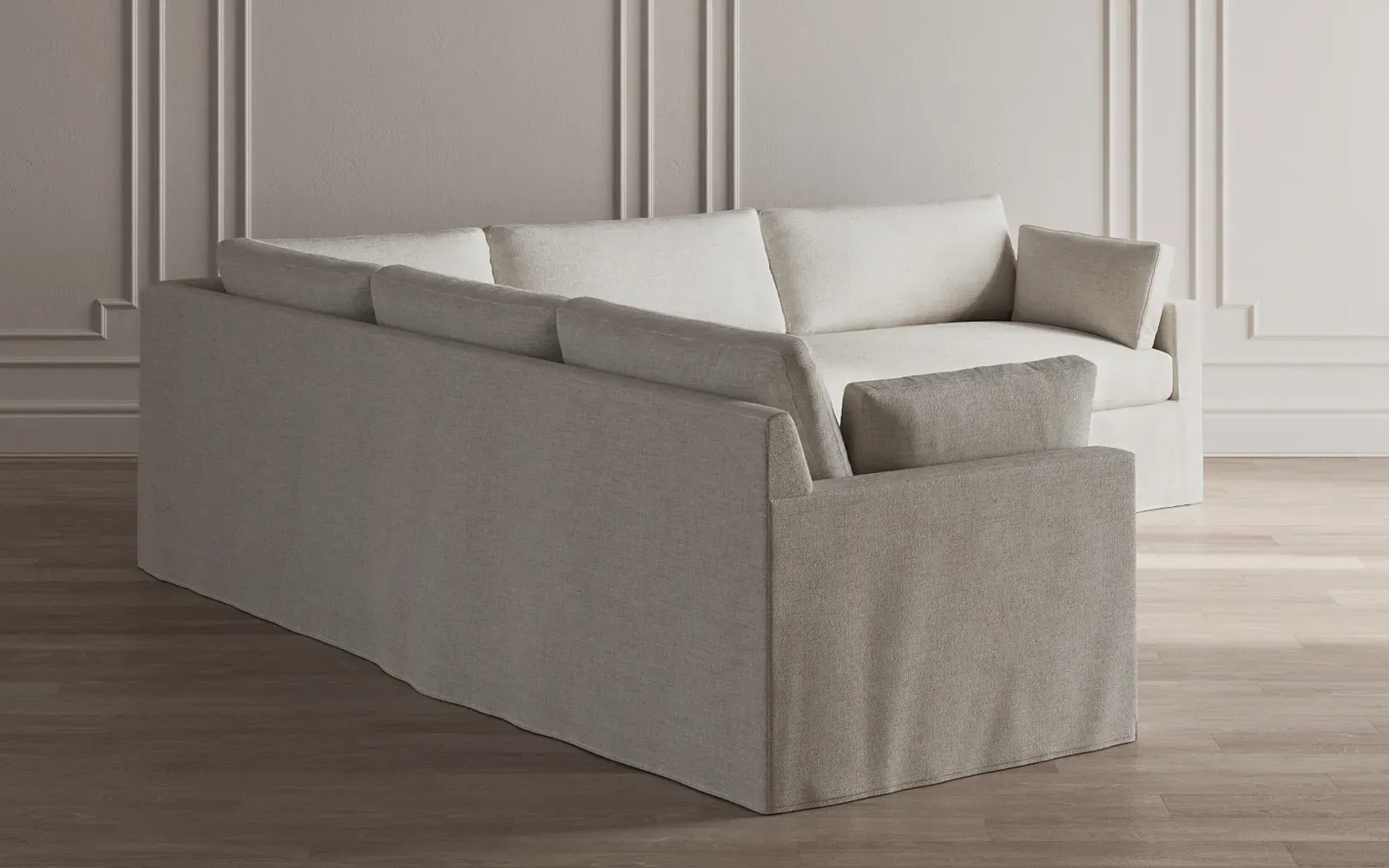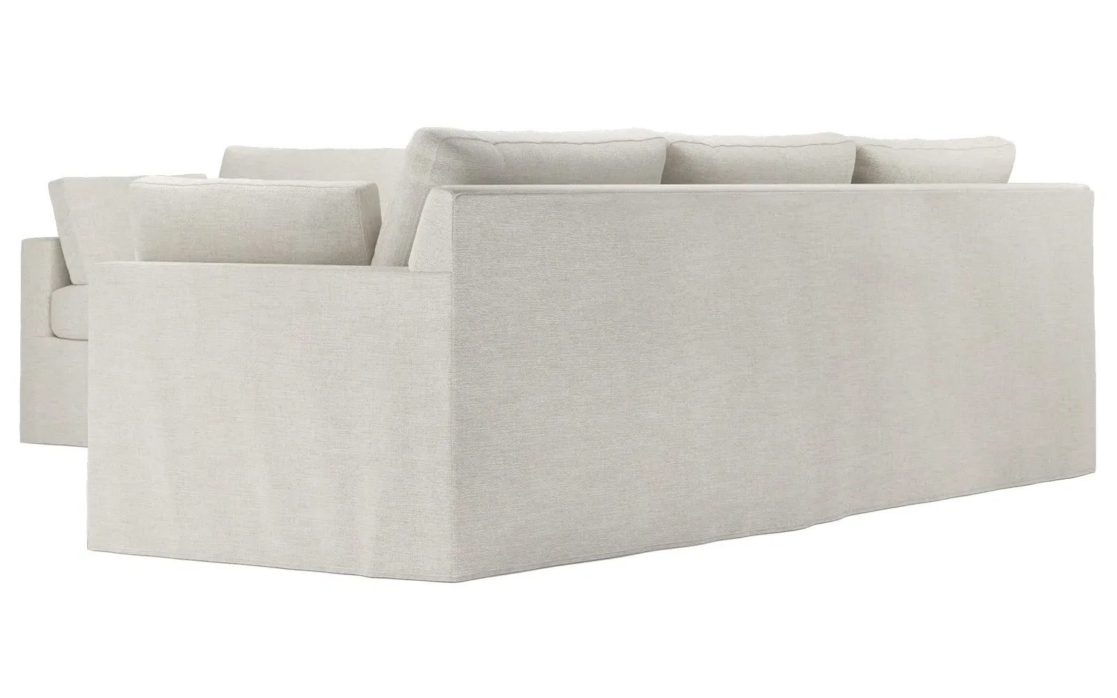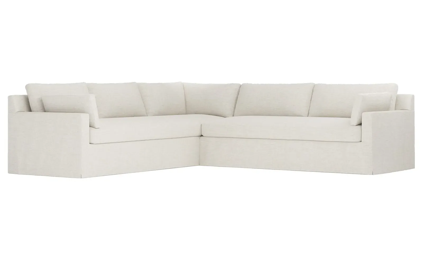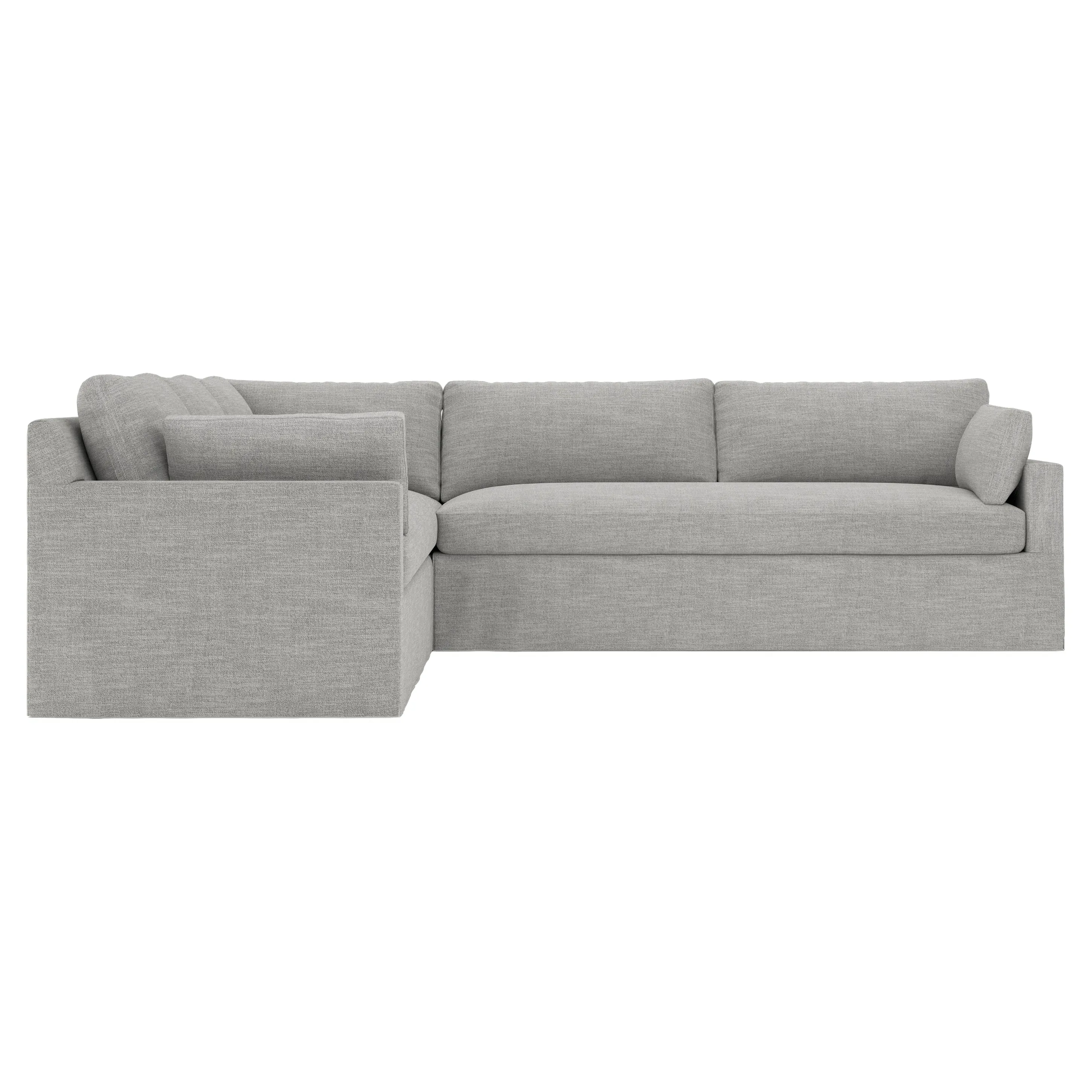 With a generous profile and plush box cushions, the left 123” Weybridge corner sectional is perfect for large gatherings. Streamlined track arms and tapered wood legs elevate the simple, modern silhouette. Soft and supportive cushioning offers plush, cloud-like comfort, with a foam core surrounded by a blend of fiber, down, and feather fill. The long bench seat provides uninterrupted comfort. Choose from a variety of upholstery options, including linen, velvet, and performance fabrics. <b>Overall Dimensions:</b> 123" W x 116" D x 35" H. <b>End Sofa Dimensions:</b> 84” W x 39” D x 35” H; <b>End Sofa with Corner Dimensions:</b> 116” W x 39” D x 35” H; <b>Seat Dimensions:</b> 24” D x 21” H; <b>Arm Height:</b> 25”; <b>Leg Height:</b> 2”. <b>Materials:</b> FSC®-certified, US-sourced, formaldehyde-free solid kiln-dried hardwood and furniture-grade laminates. <b>Material Finish:</b> Espresso. <b>Pieces Included:</b> Right end sofa with corner, left end sofa.