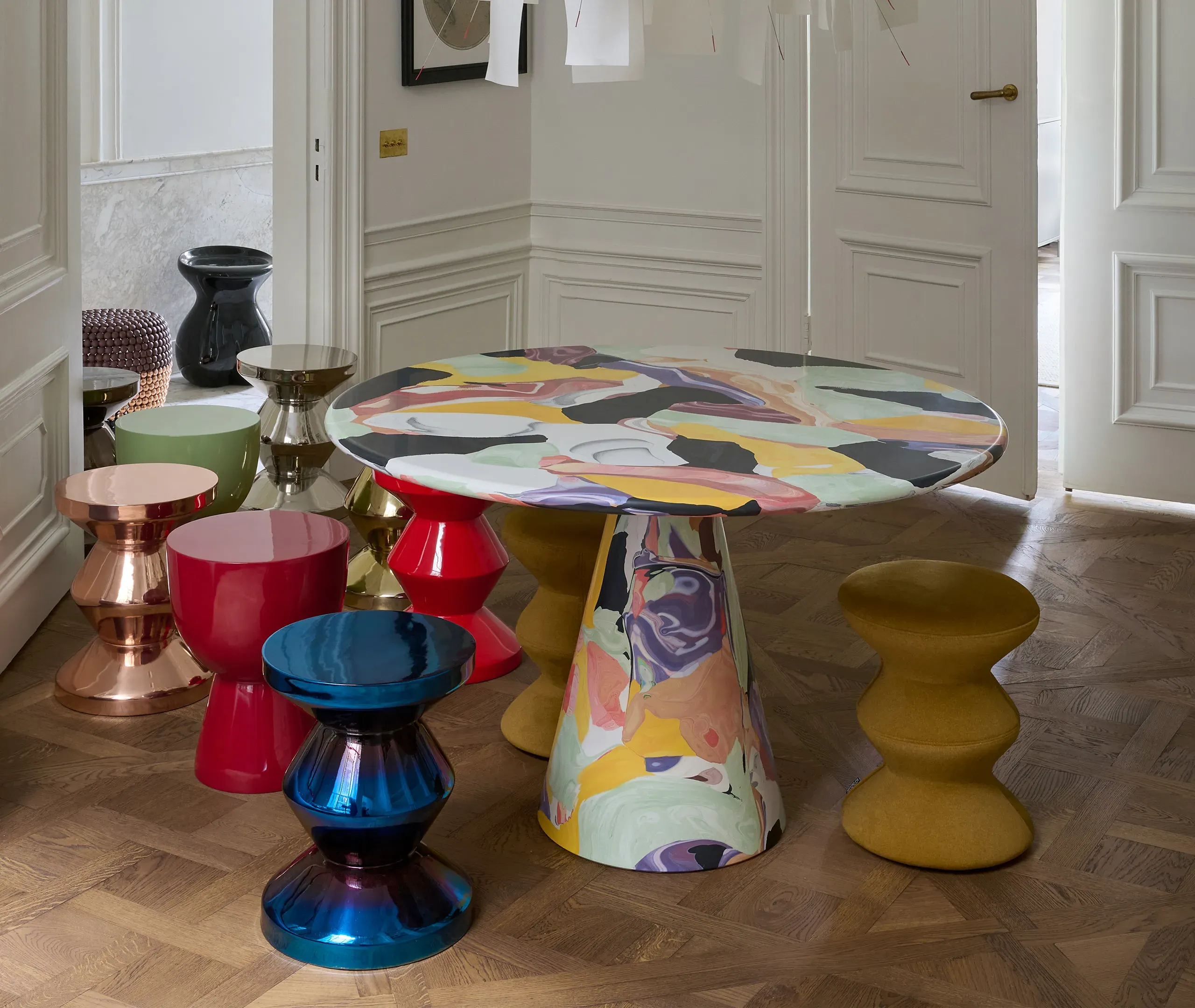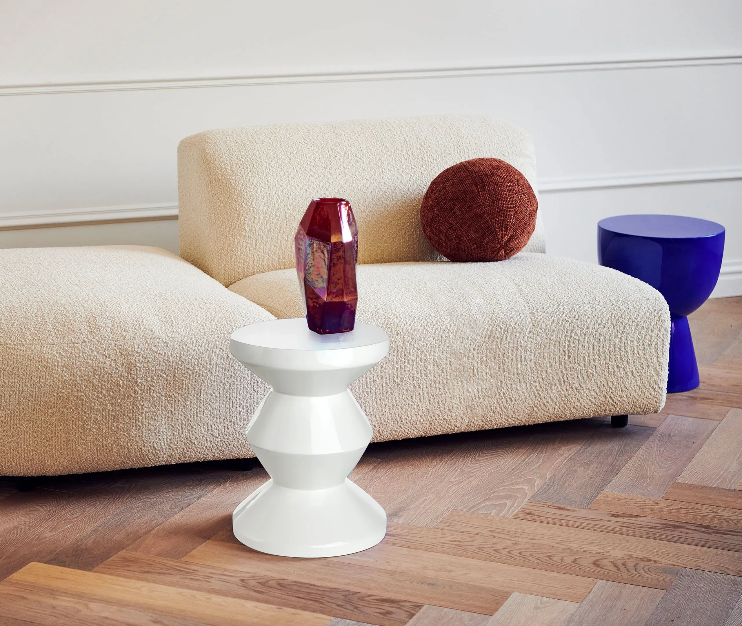 The Zig Zag Stool offers versatile seating with its distinctive angular silhouette. Its compact design functions as both a stool and side table, while the durable construction suits both indoor and outdoor use. The geometric form provides stable support with visual impact.