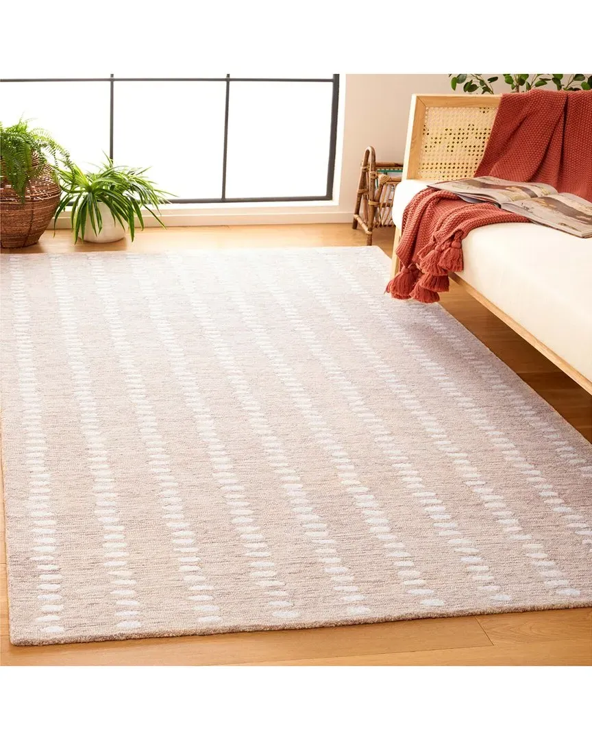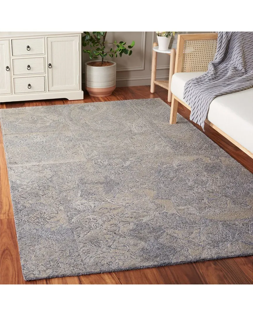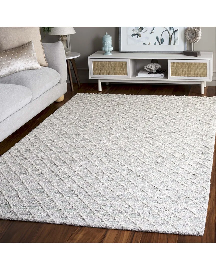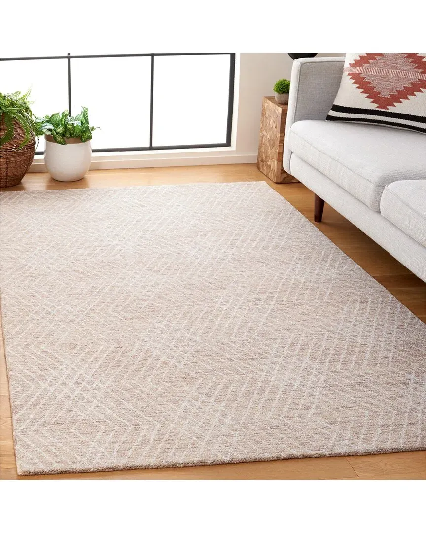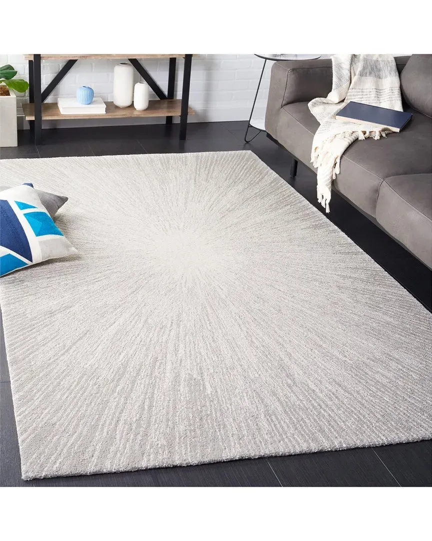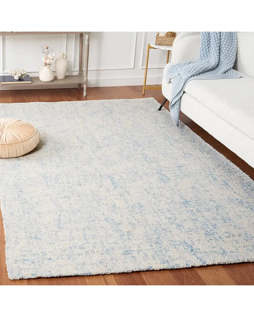 About the brand: Finely-crafted home furnishings with a unique flair. Color/pattern: ivory / dark grey Design details: The Abstract Rug Collection features texture-rich rugs with all-over designs and a cushion-soft loop pile. Abstract rugs are hand-tufted using pure wool and styled with engaging patterns in harmonious hues that convey a warm, welcoming aspect in room decor. 3/8'' pile; hand tufted; cotton with latex backing Suitable for indoor use 80% Wool, 20% Cotton Use rug protectors under the legs of heavy furniture to avoid flattening of your rug pile. Rotating your rug every few months will help relieve areas from excessive wear. Packing and shipping may cause temporary creases in area rugs. To remove them back-roll/reverse roll your rug and allow time for the creases to relax. Wool rugs, especially new wool rugs, may shed. To reduce excessive shedding, vacuum your rug 1-2 times per week in the direction of the pile. Shedding should diminish within several weeks. Vacuum thoroughly at least once a week with a canister vacuum. Do not engage beater bars. Rugs placed in high traffic areas of the home, office or rugs exposed to household pets should be vacuumed more frequently. Avoid vacuuming the fringes of your rug, especially those on hand-knotted rugs. Use a broom to clean fringes. Brushing is the best way to remove stubborn pet hairs that the vacuum misses. For short pile area rugs, use a carpet brush or carpet sweeper. For longer pile a carpet rake works well. For rugs that are relatively easy to handle, bring them outdoors and shake vigorously to remove excess debris. For lighter stains or spills on synthetic yarns, sponge clean the area with cold water and mild detergent. For harder to remove stains, professional rug cleaning is recommended. Imported Please note: Measurements were taken by hand and are approximate; Please allow for slight variations.