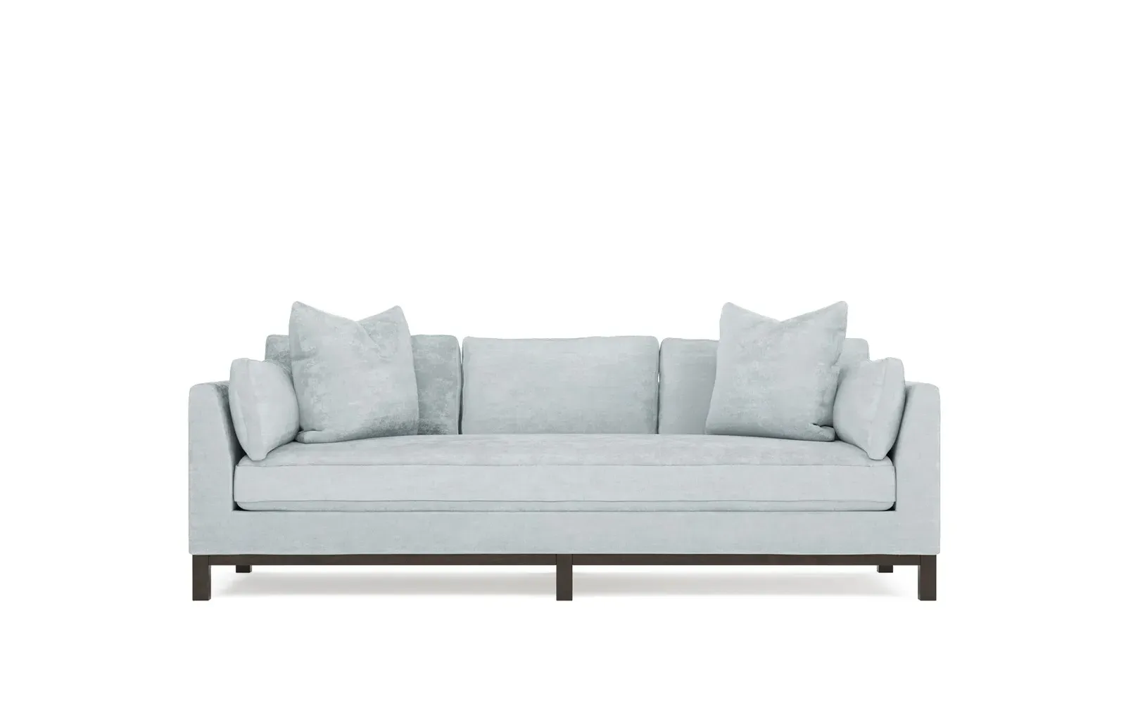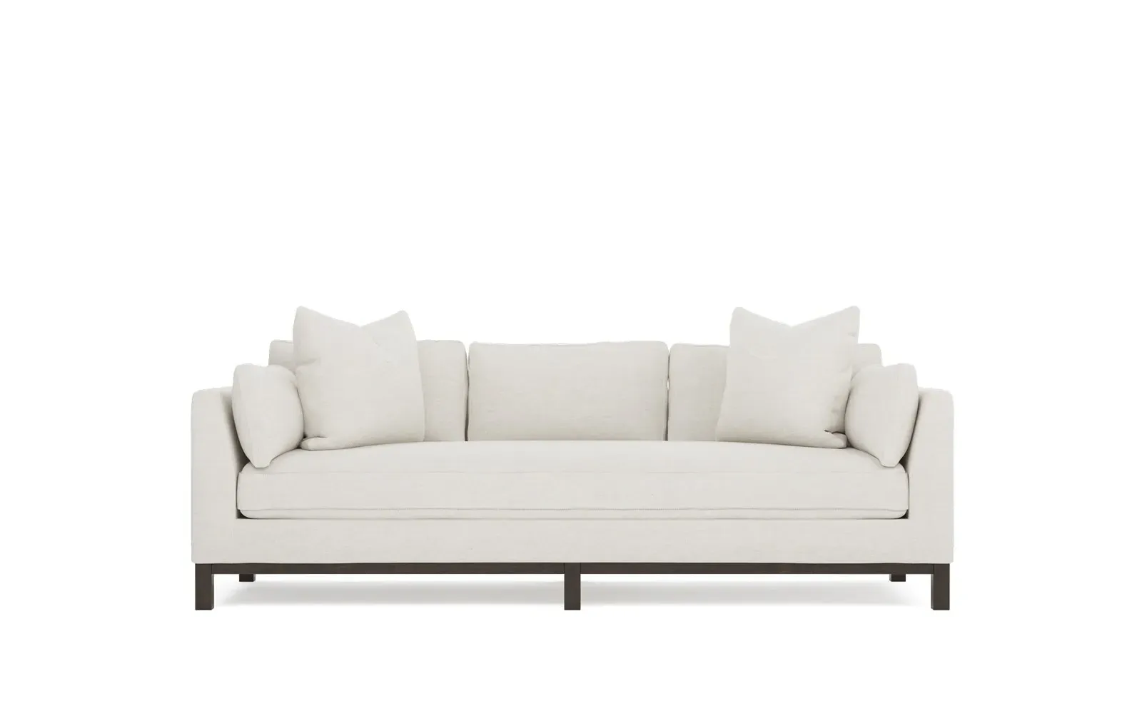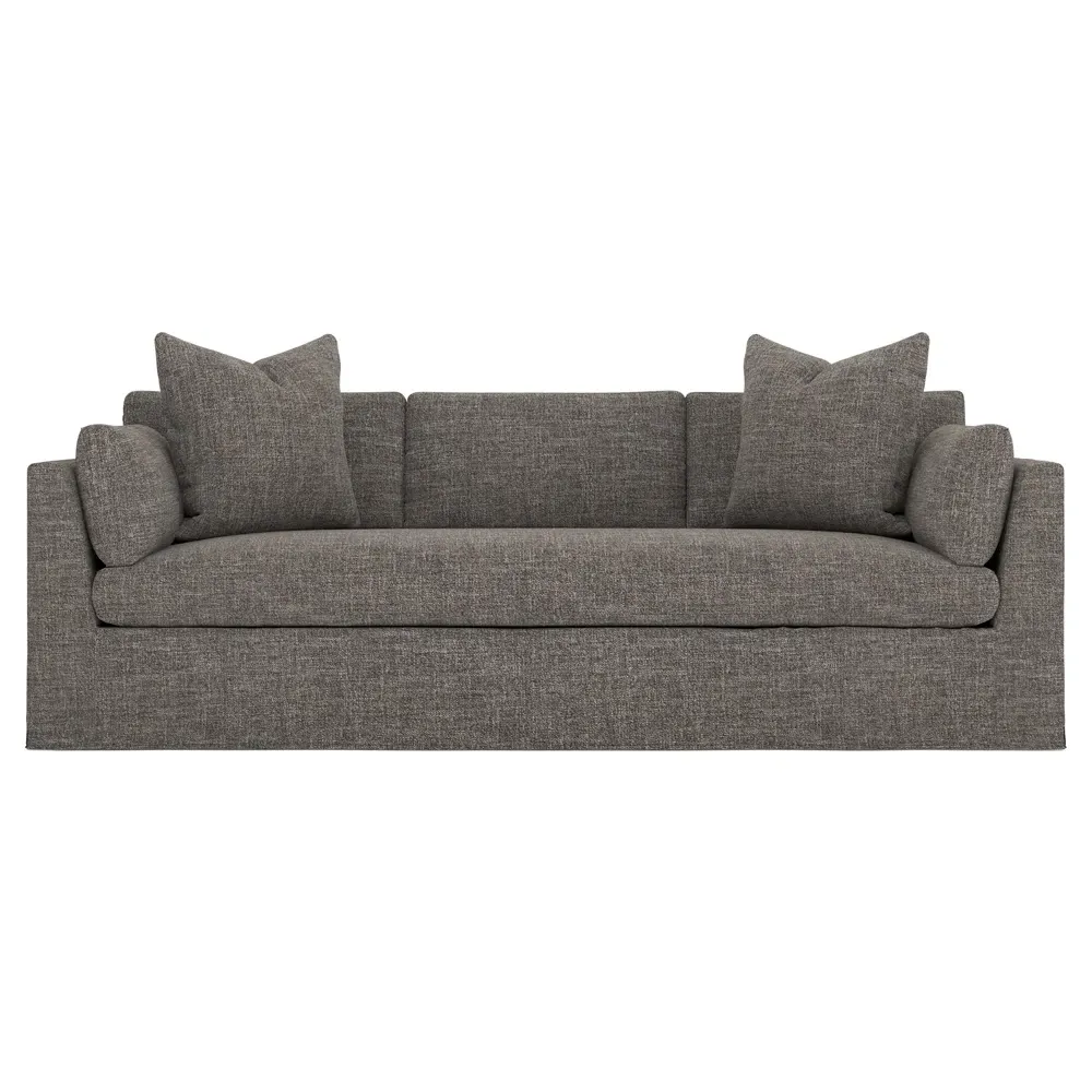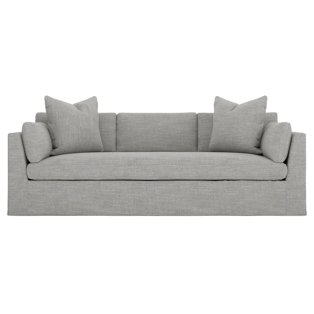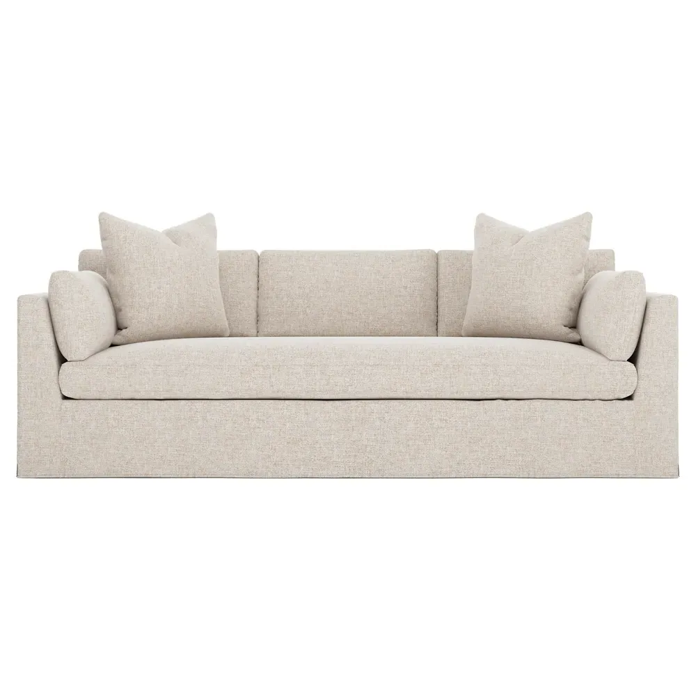 The Adelle slipcovered sofa combines comfort with its foam core surrounded by fiber, down, and feather fill. Its bench seat features two sets of pillows and gently angled arms for easy lounging, while the washable slipcover fabric adds practical appeal. The FSC-certified kiln-dried hardwood frame ensures durability, and the channel-quilted casing keeps materials evenly distributed. W251 x D97 x H89 cm.