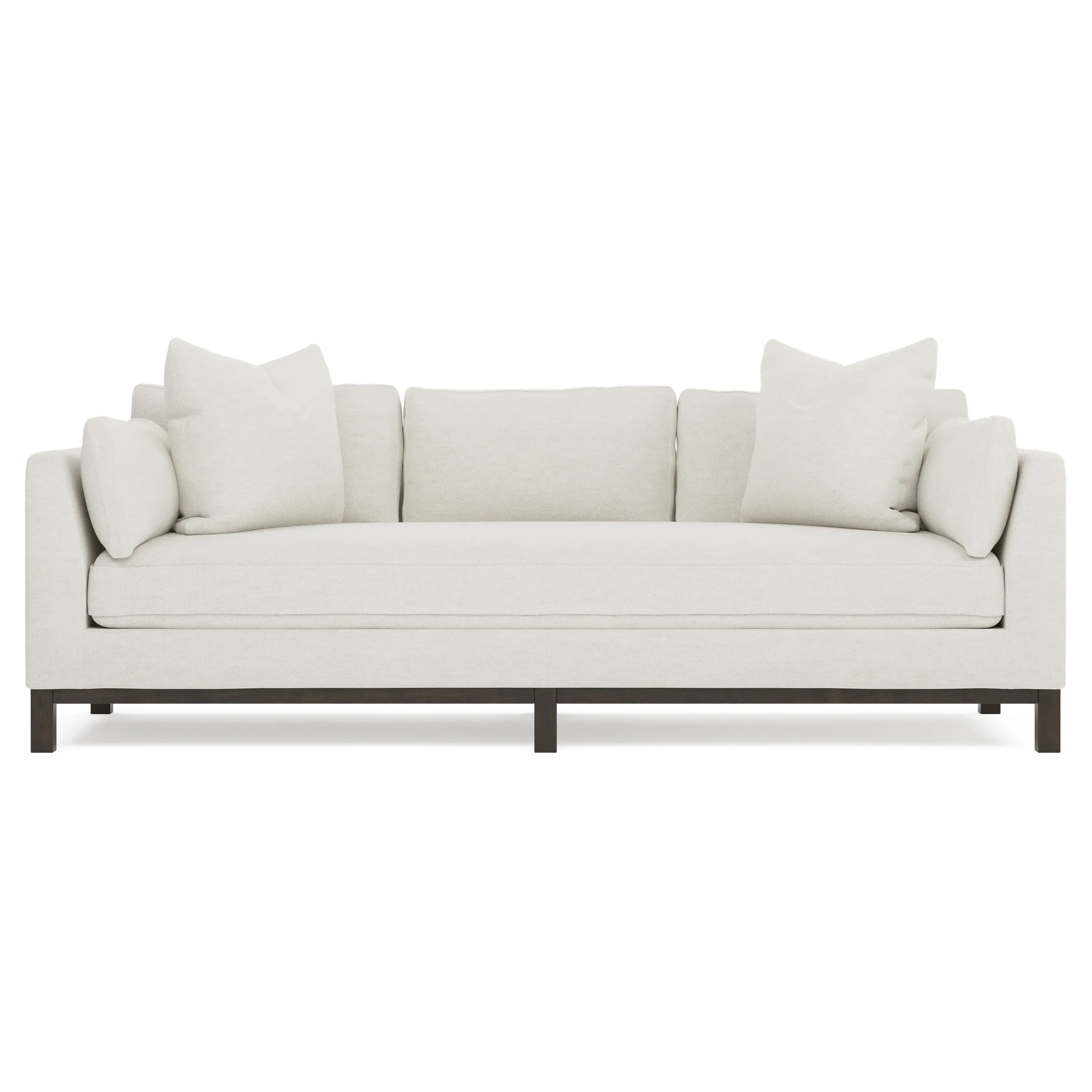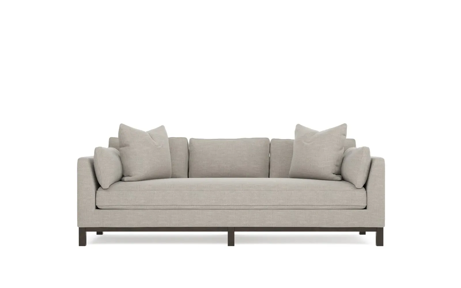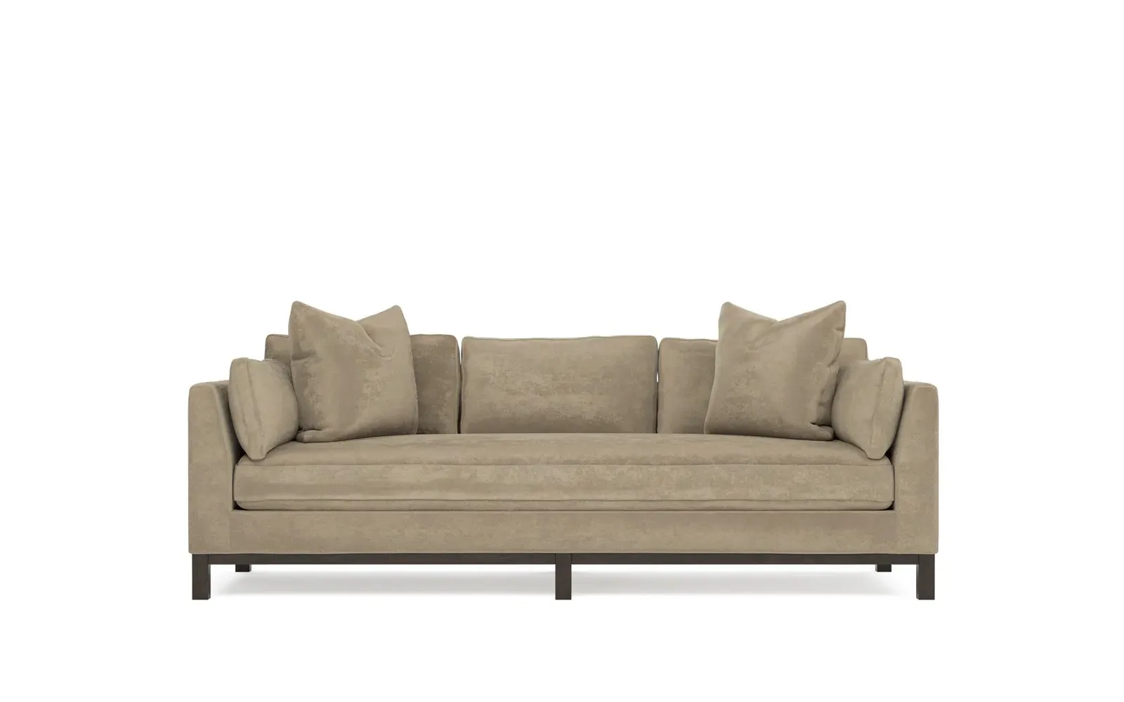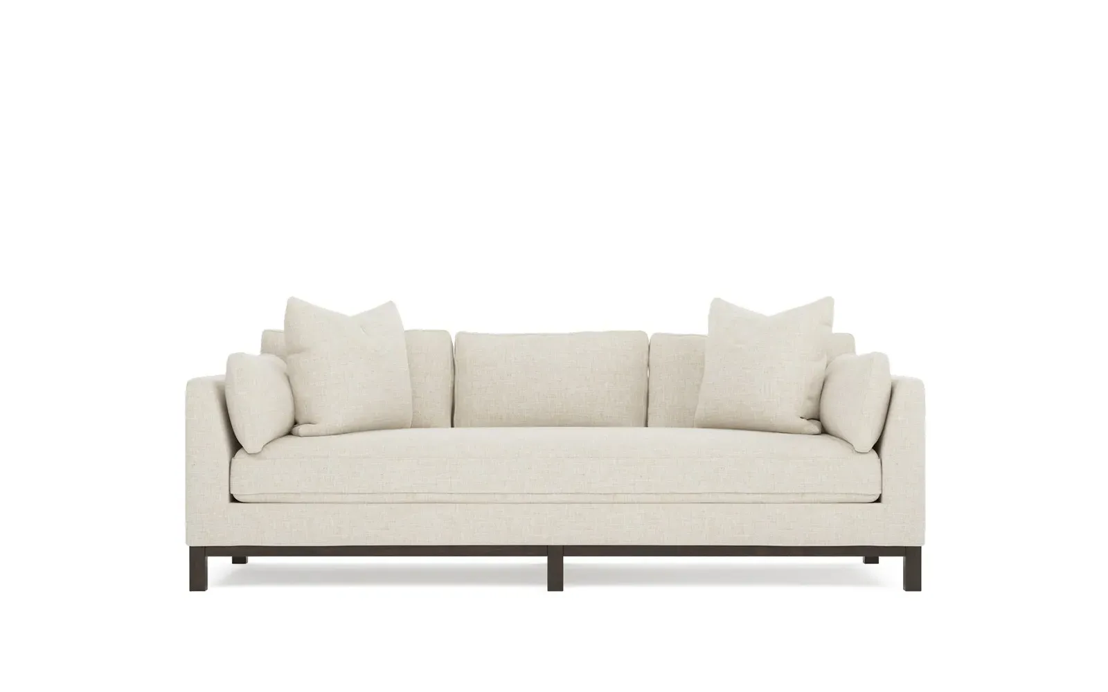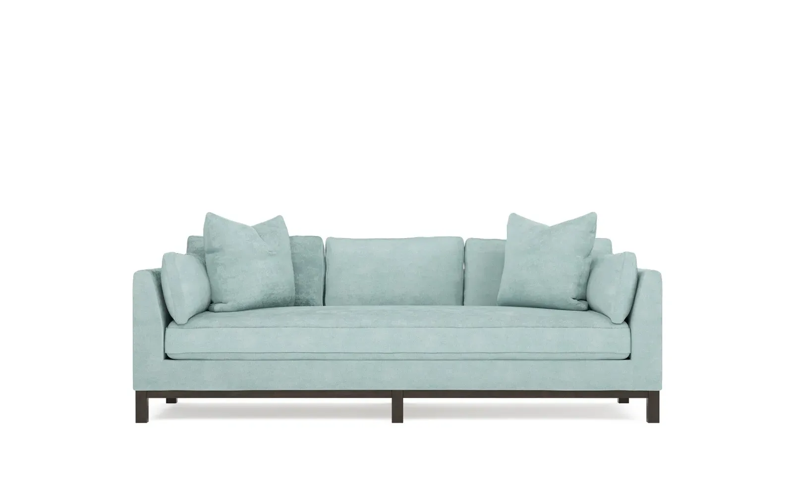 The Adelle slipcovered sofa combines comfort with its foam core surrounded by fiber, down, and feather fill. Its bench seat features two sets of pillows and gently angled arms for easy lounging, while the washable slipcover fabric adds practical appeal. The FSC-certified kiln-dried hardwood frame ensures durability, and the channel-quilted casing keeps materials evenly distributed. W251 x D97 x H89 cm.