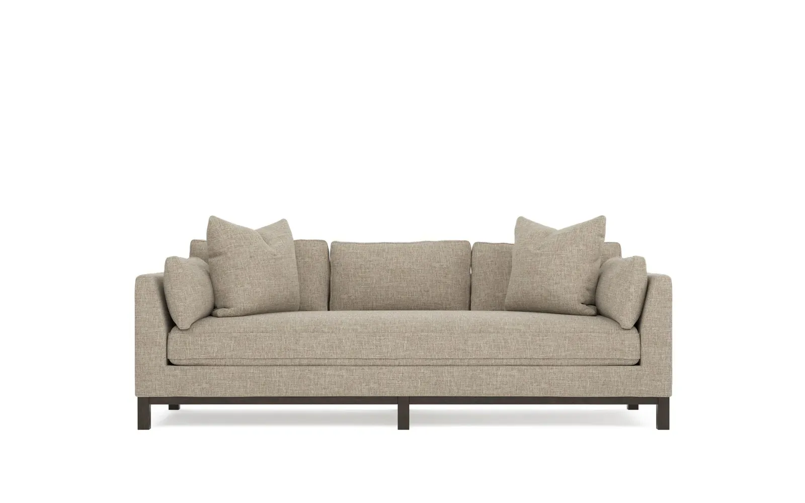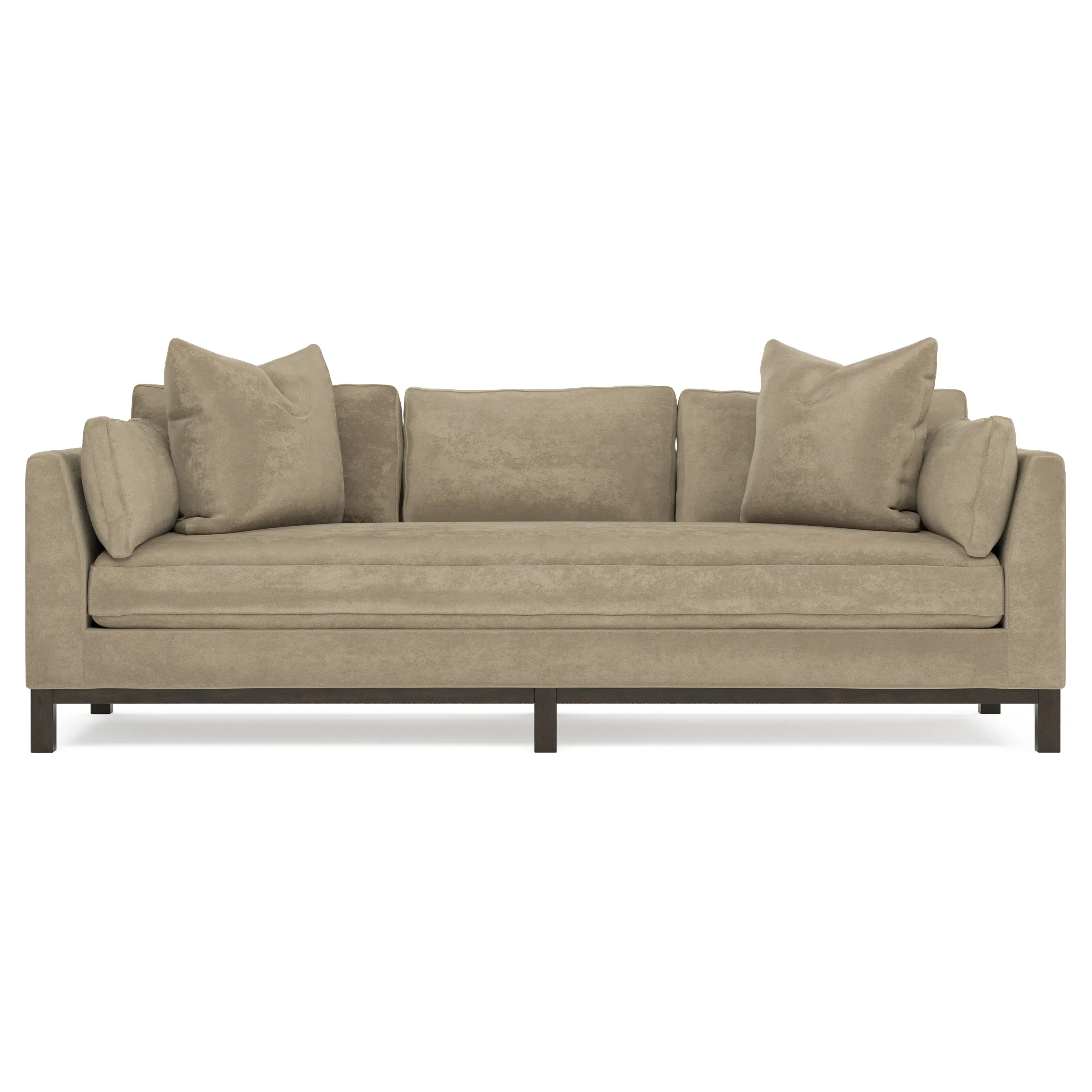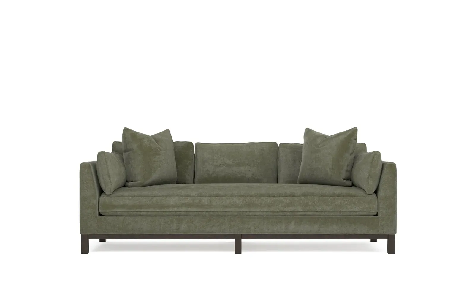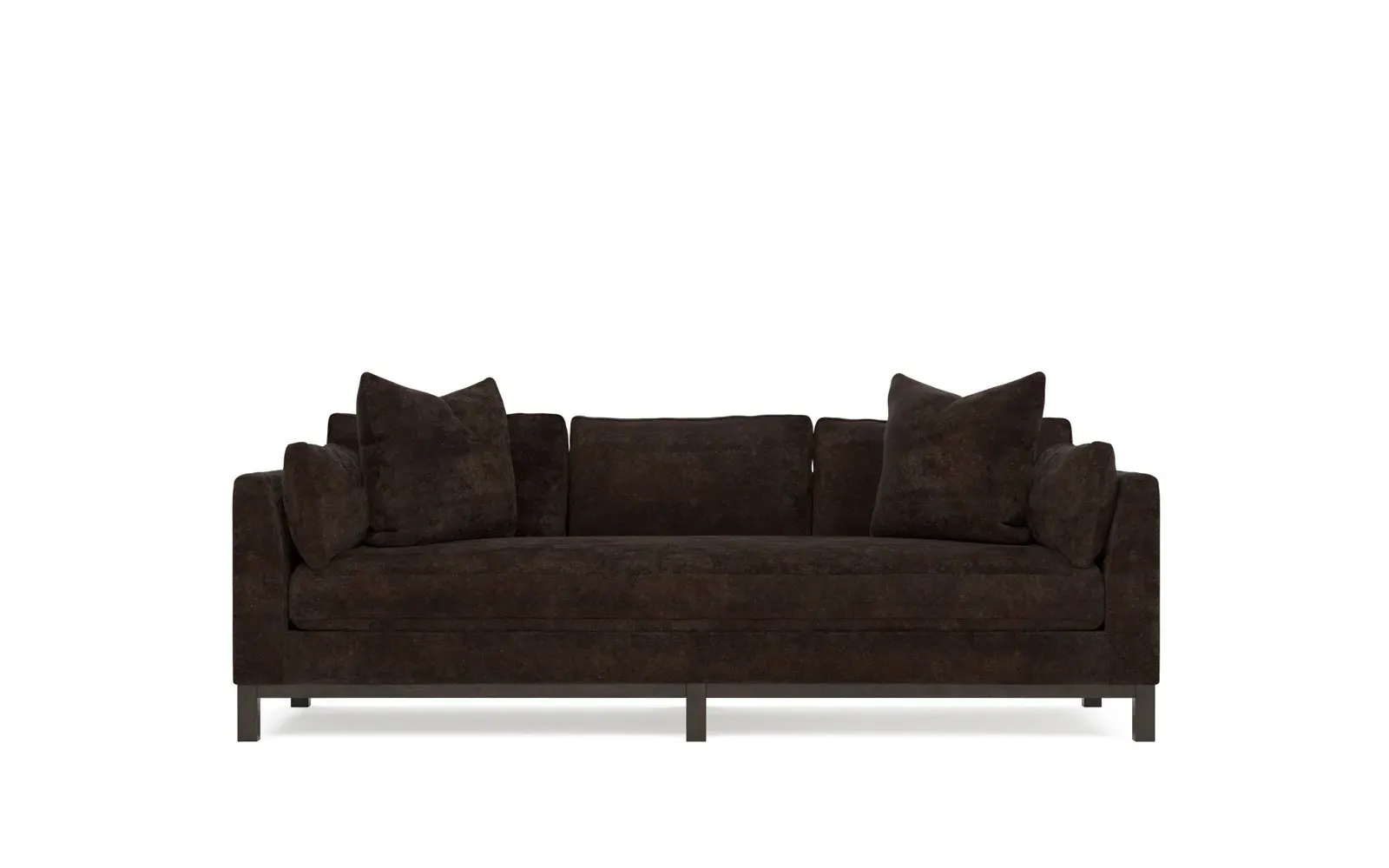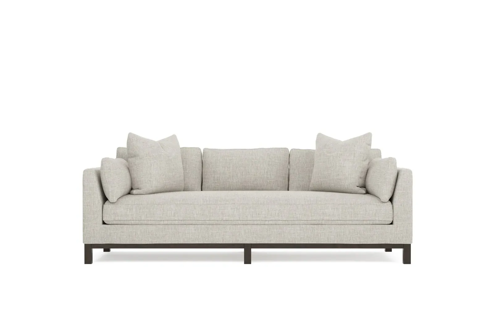 The Adelle slipcovered sofa combines comfort with its foam core surrounded by fiber, down, and feather fill. Its bench seat features two sets of pillows and gently angled arms for easy lounging, while the washable slipcover fabric adds practical appeal. The FSC-certified kiln-dried hardwood frame ensures durability, and the channel-quilted casing keeps materials evenly distributed. W251 x D97 x H89 cm.