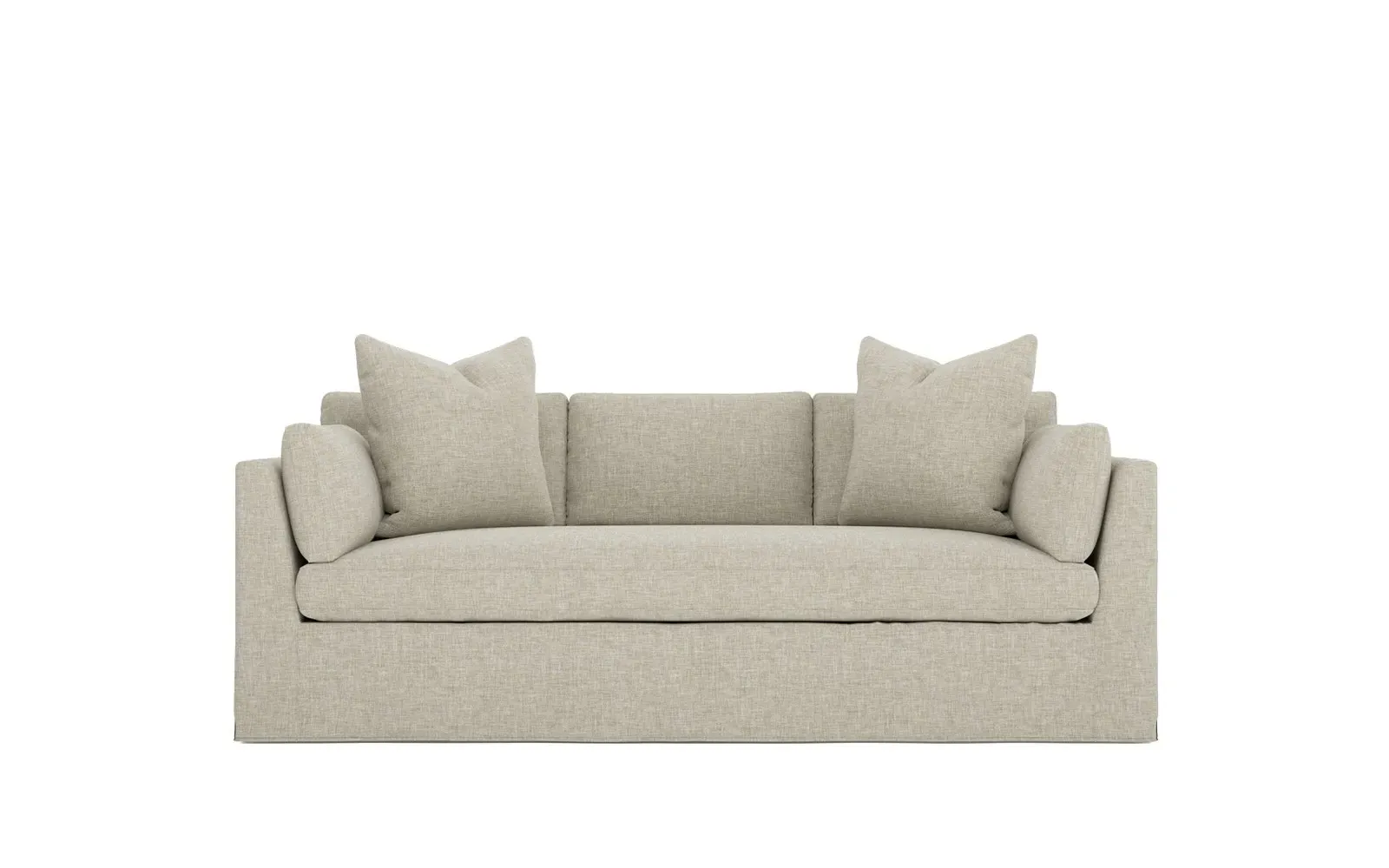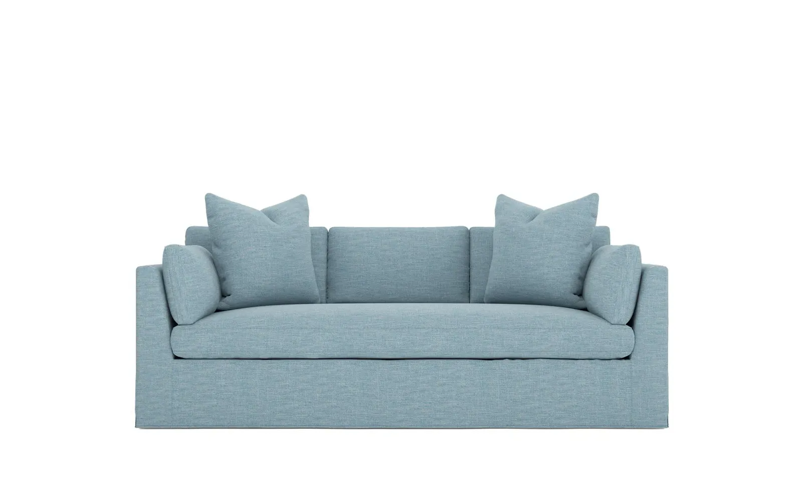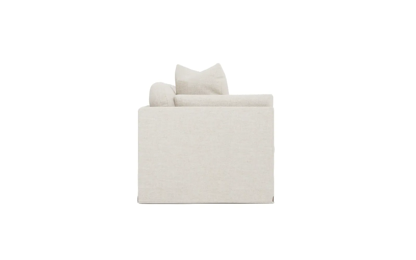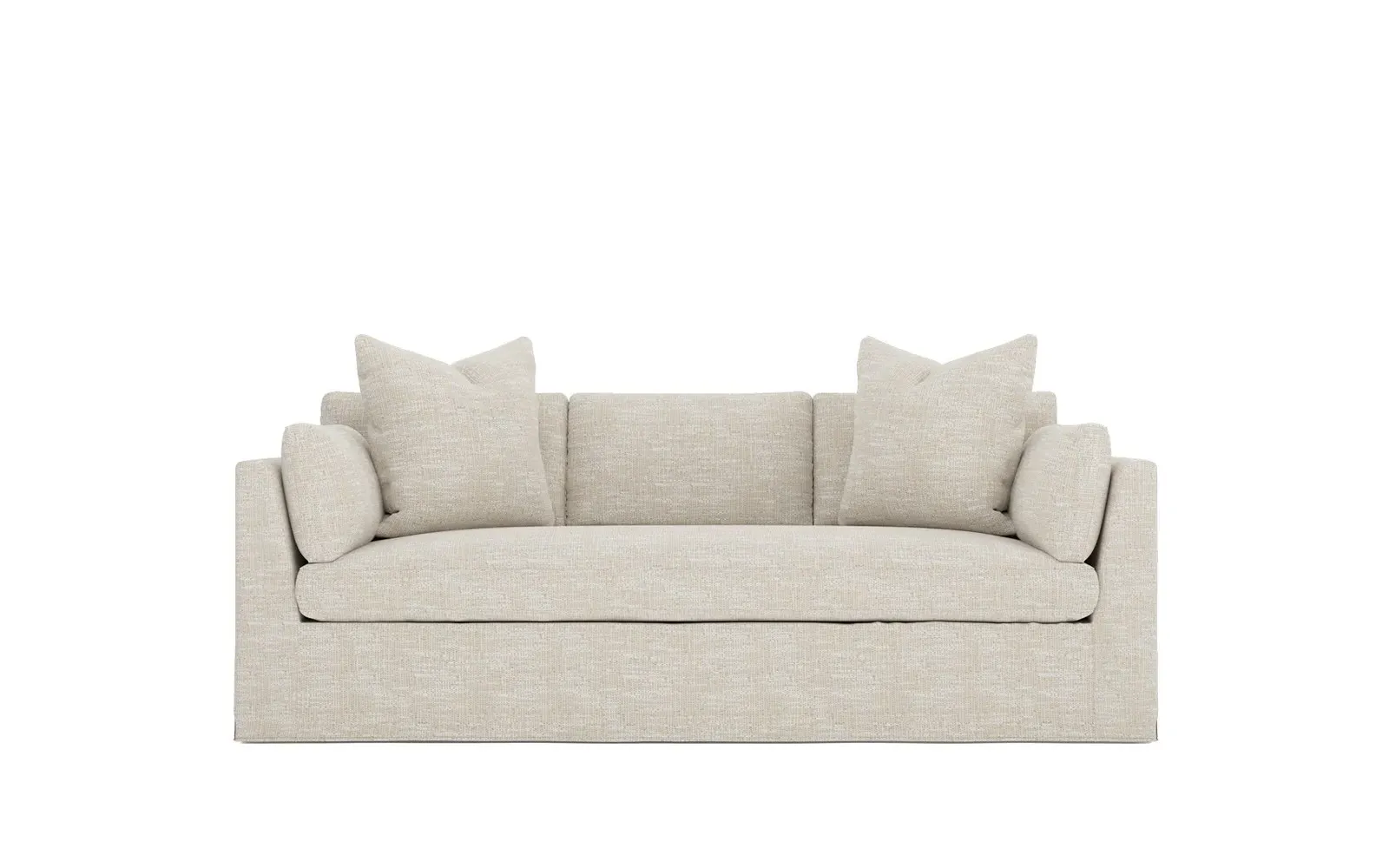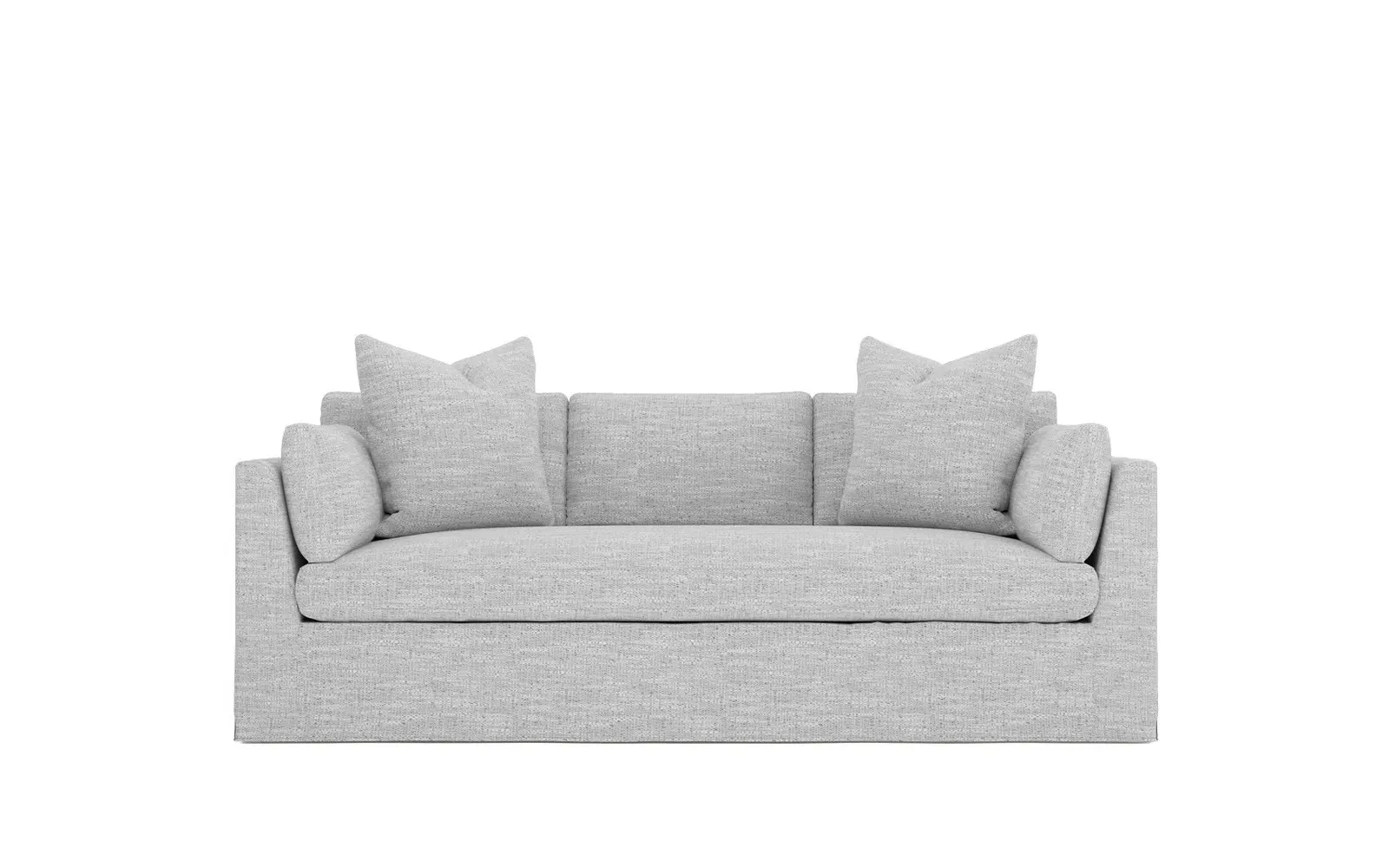 The Adelle slipcovered sofa combines comfort with its plush seating and supportive foam core surrounded by fiber, down, and feather fill. Its bench seat features two sets of pillows and gently angled arms for easy lounging, while the washable slipcover fabric adds practical appeal. The FSC-certified kiln-dried hardwood frame ensures durability, and the channel-quilted casing keeps materials evenly distributed. W229 x D97 x H89 cm.