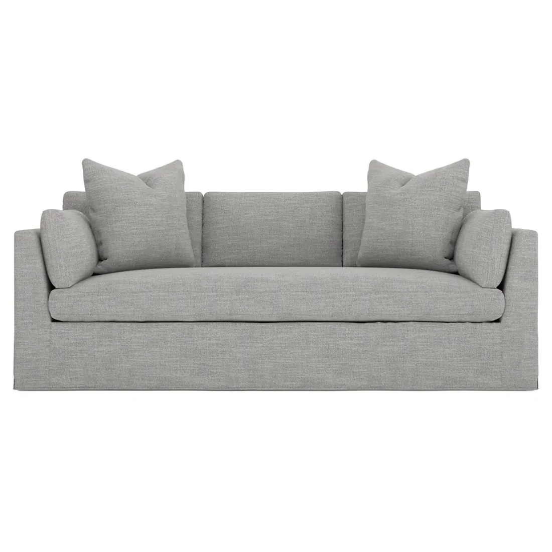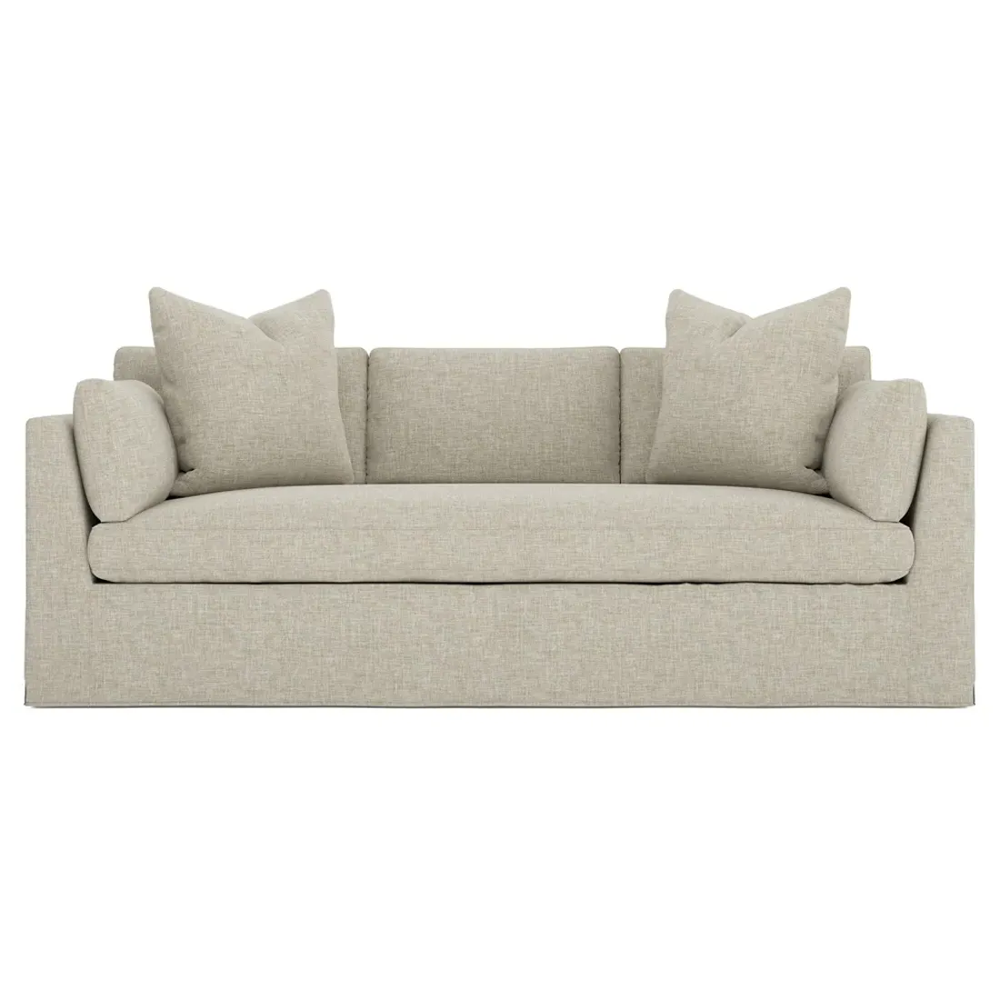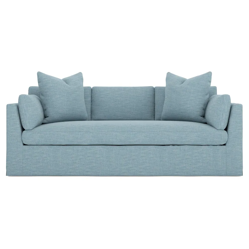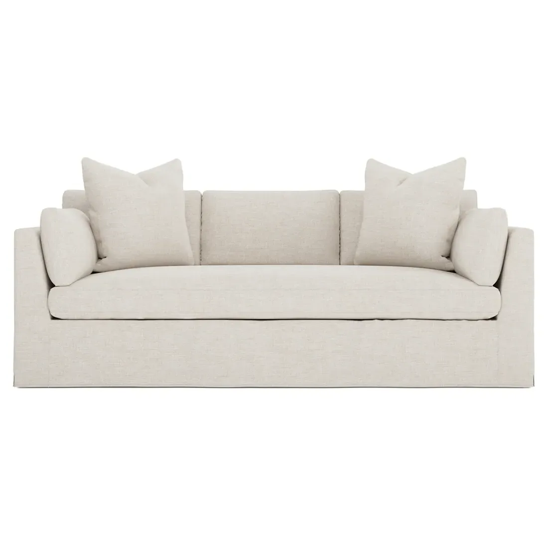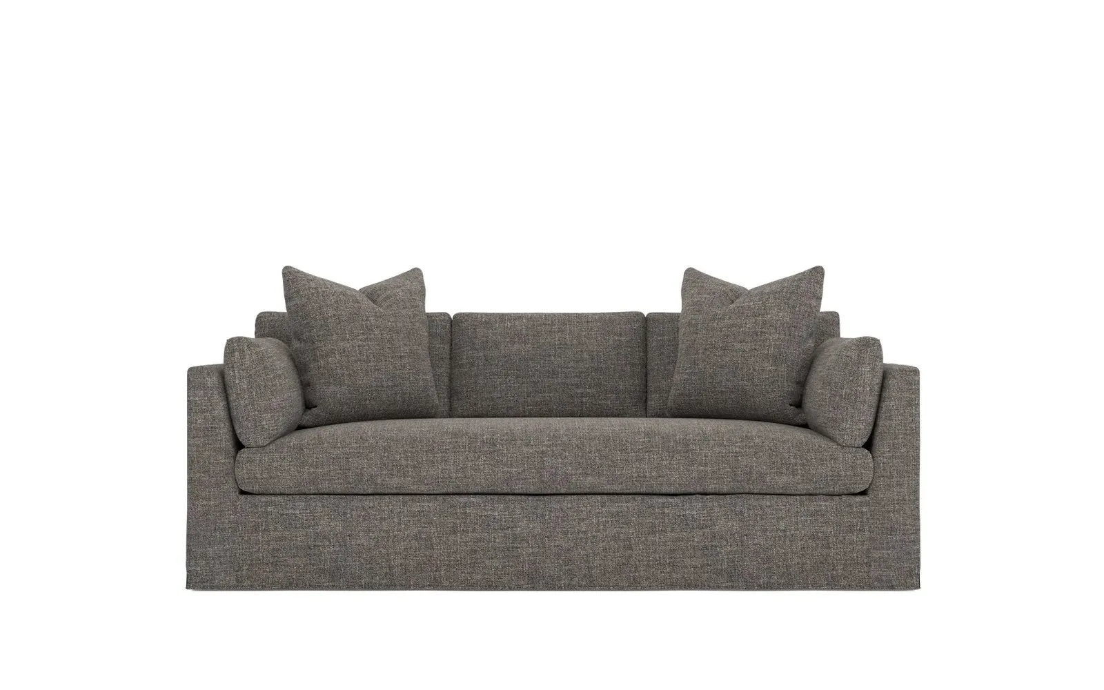 The Adelle slipcovered sofa combines comfort with its plush seating and supportive foam core surrounded by fiber, down, and feather fill. Its bench seat features two sets of pillows and gently angled arms for easy lounging, while the washable slipcover fabric adds practical appeal. The FSC-certified kiln-dried hardwood frame ensures durability, and the channel-quilted casing keeps materials evenly distributed. W229 x D97 x H89 cm.