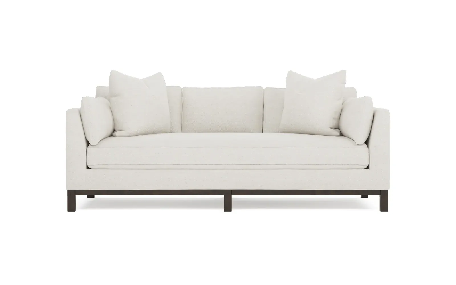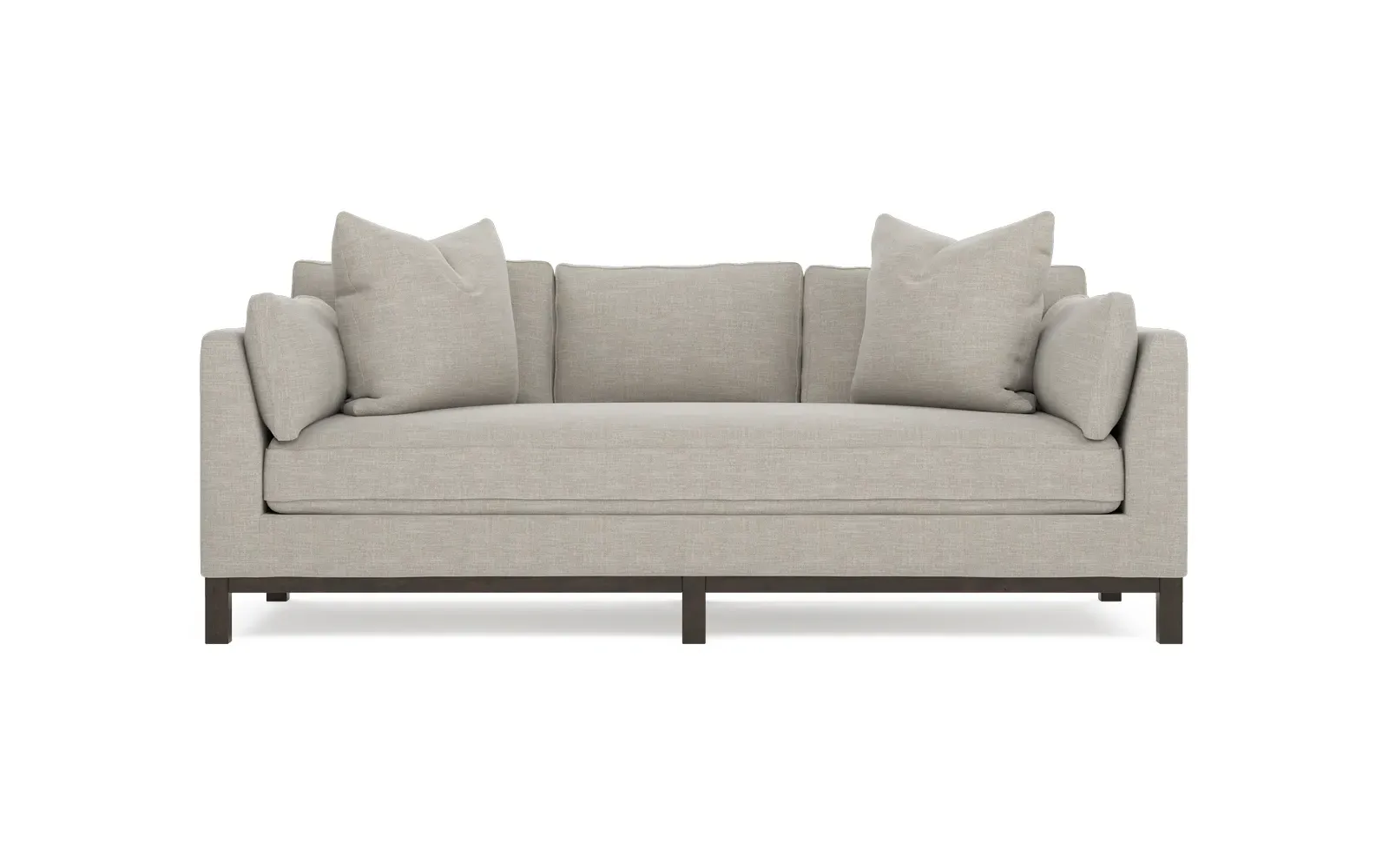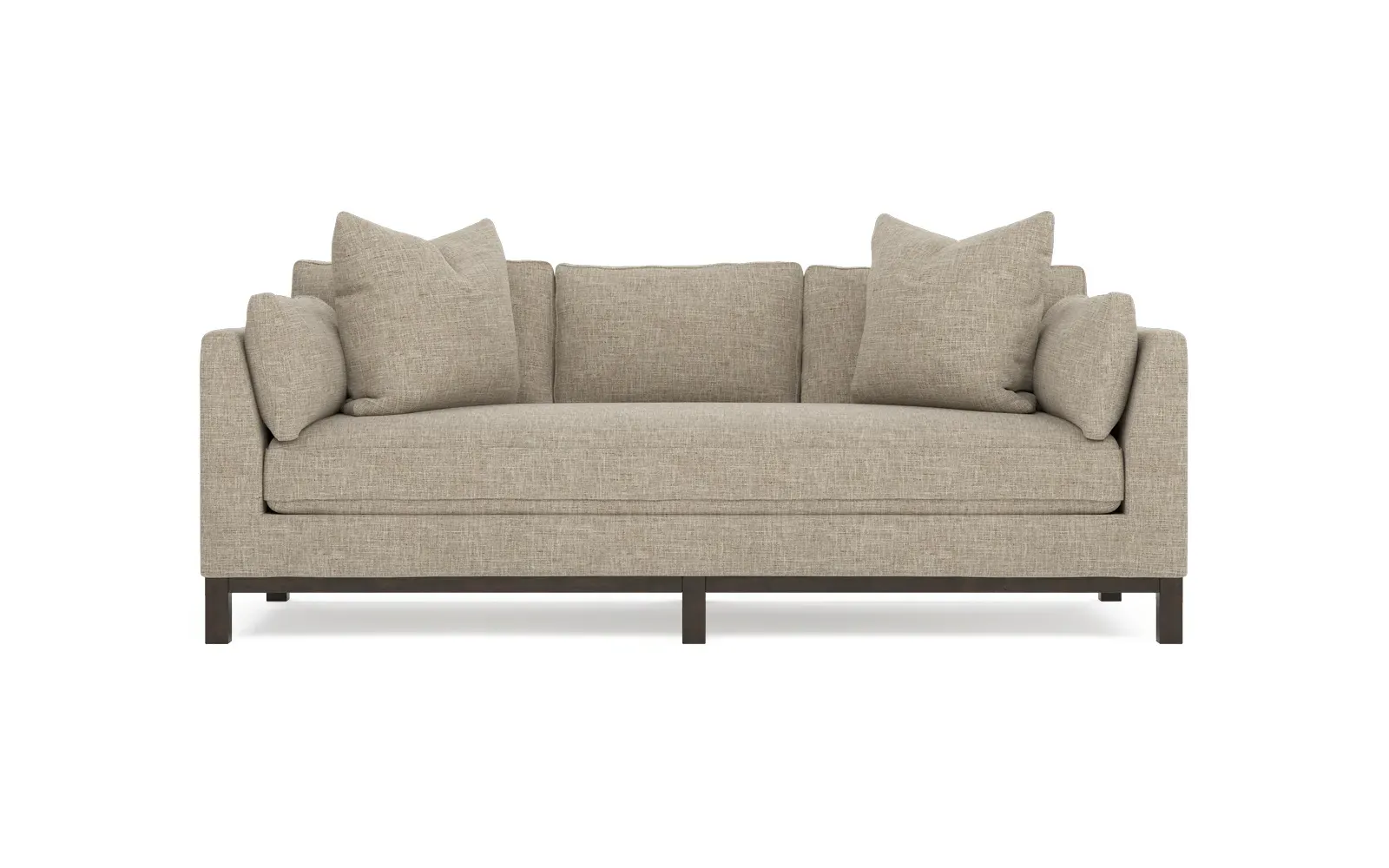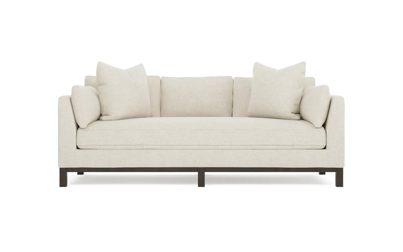 The Adelle slipcovered sofa combines comfort with its plush seating and supportive foam core surrounded by fiber, down, and feather fill. Its bench seat features two sets of pillows and gently angled arms for easy lounging, while the washable slipcover fabric adds practical appeal. The FSC-certified kiln-dried hardwood frame ensures durability, and the channel-quilted casing keeps materials evenly distributed. W229 x D97 x H89 cm.