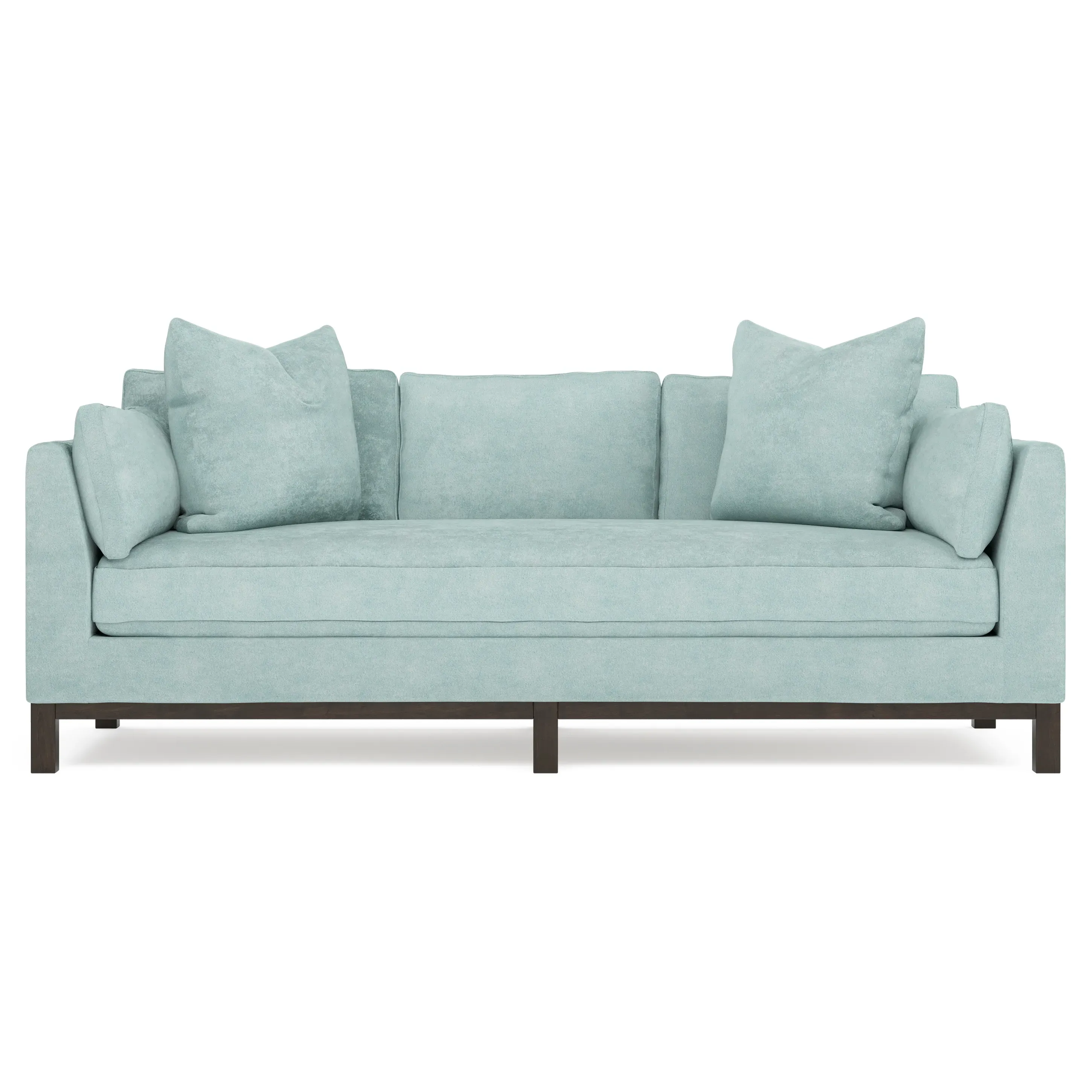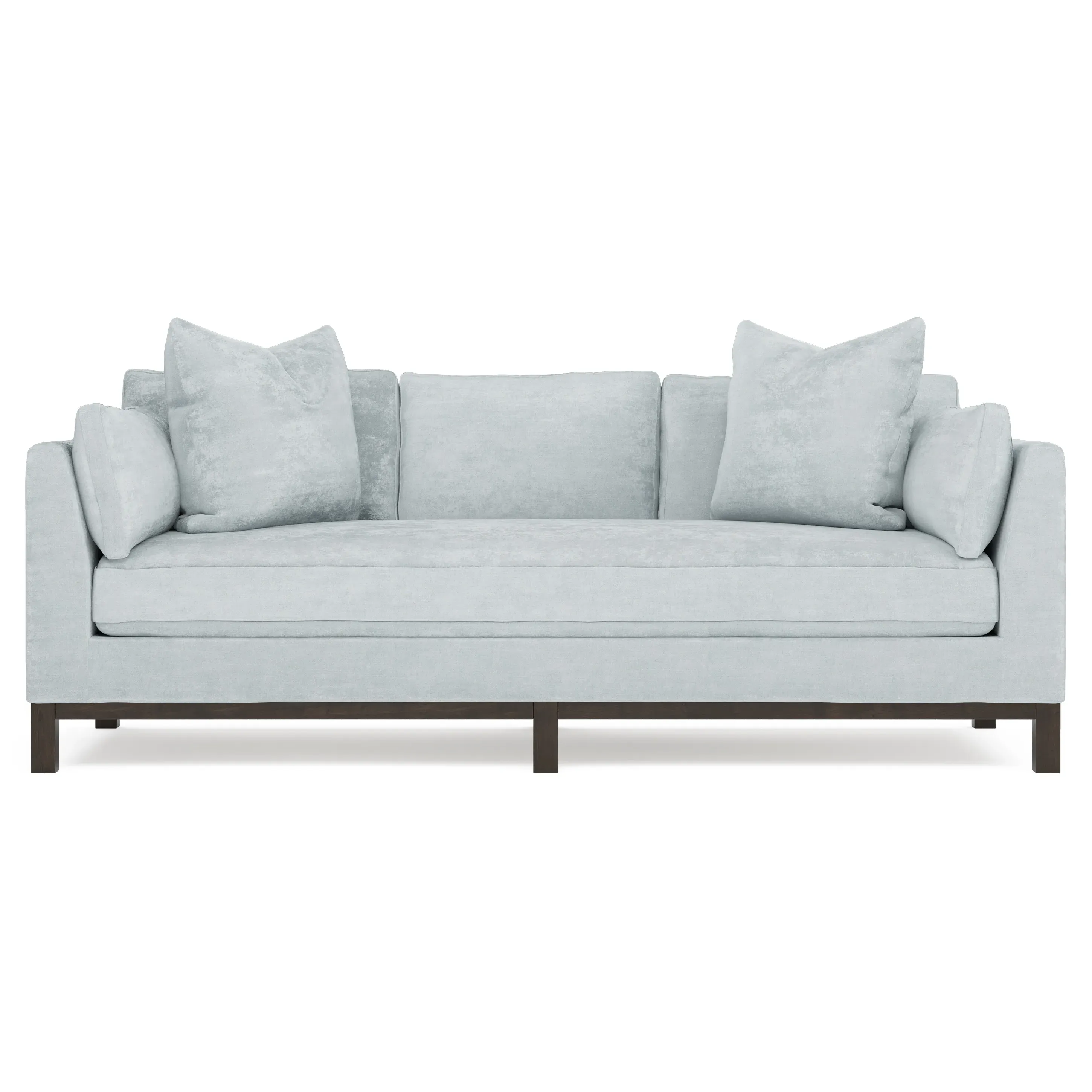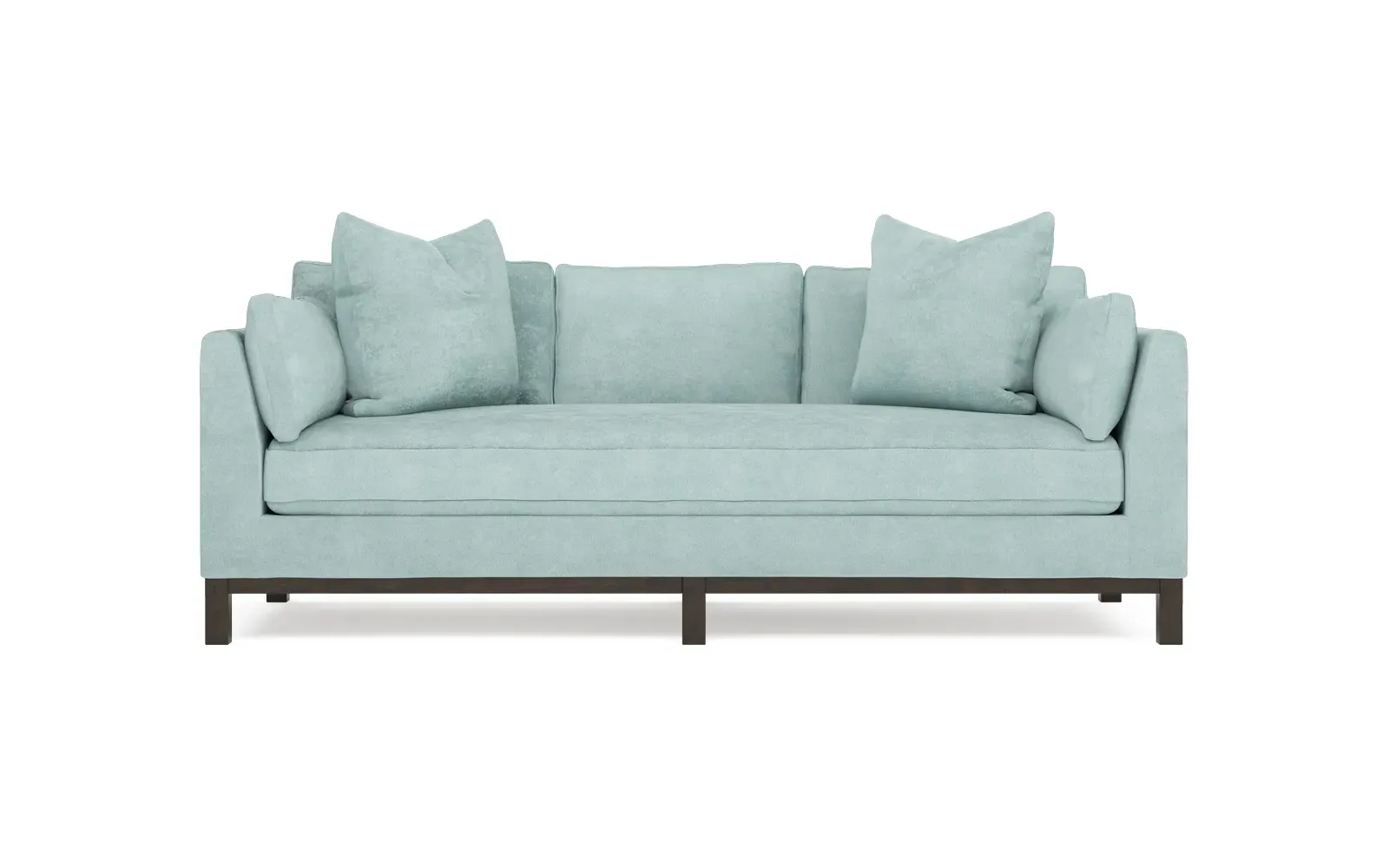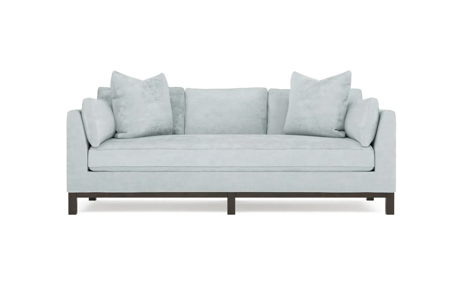 The 90” Adelle slipcovered sofa is effortlessly relaxed, with simple lines and airy, elegant draping. Plush, comfortable seating is soft yet supportive, with a foam core surrounded by a blend of fiber, down, and feather fill. Its graceful bench seat is anchored by two sets of pillows and gently angled arms for easy lounging. Choose from washable slipcover fabrics in a variety of serene hues. <b>Overall Dimensions:</b> 90" W x 38" D x 35" H. <b>Seat Dimensions:</b> 25” D x 21” H; <b>Distance Between Arms:</b> 66”; <b>Arm Height:</b> 28”. <b>Materials:</b> FSC®-certified, US-sourced, formaldehyde-free solid kiln-dried hardwood and furniture-grade laminates. <b>Cushion Fill:</b> A CertiPUR-US® certified, high-resiliency foam core wrapped with a super soft foam layer then inserted into a channel-quilted casing filled with a blend of 50% fiber, 5% down, and 45% feather. <b>Back Fill:</b> 50% fiber, 5% down, and 45% feather blend, constructed with multiple compartments to keep materials evenly distributed and securely in place.