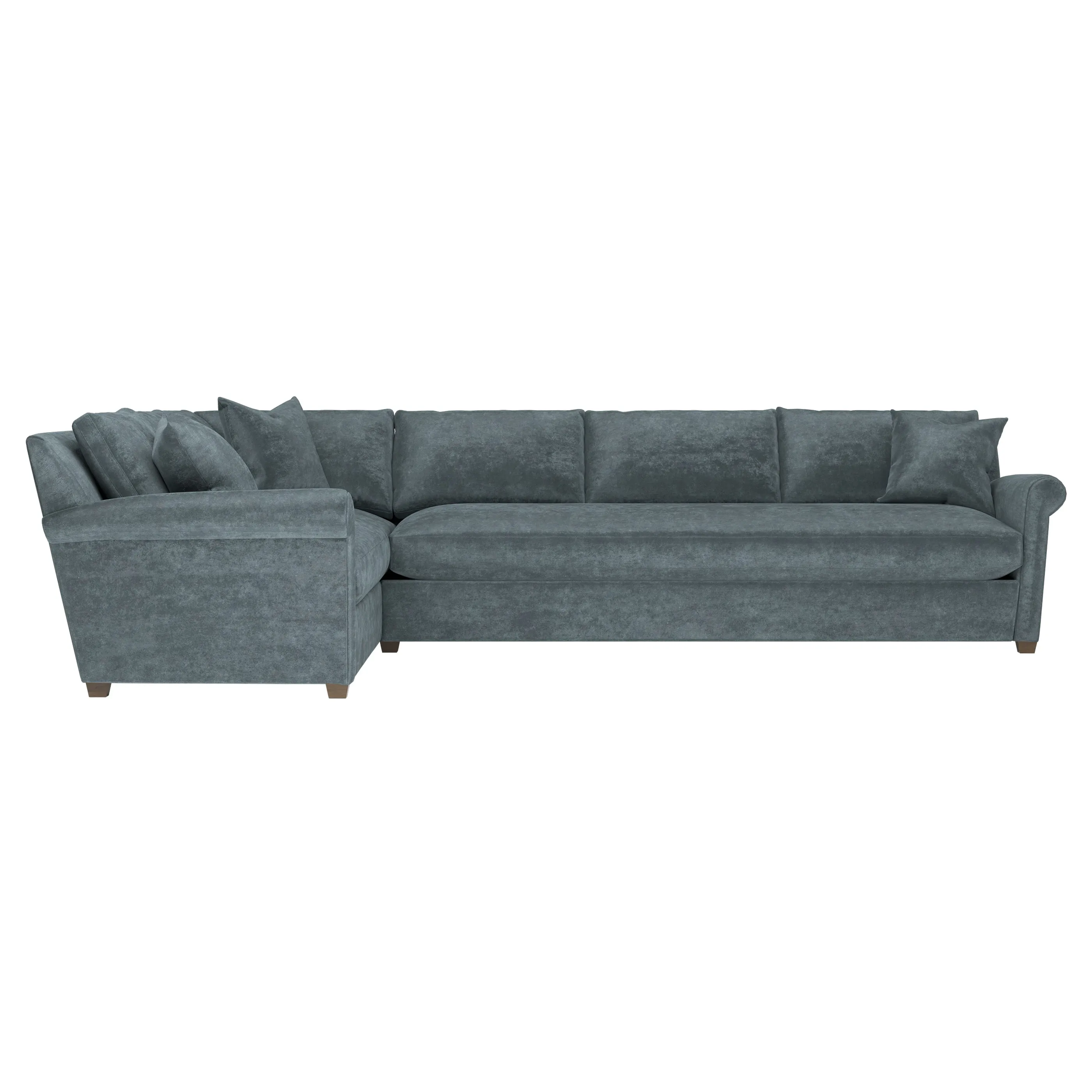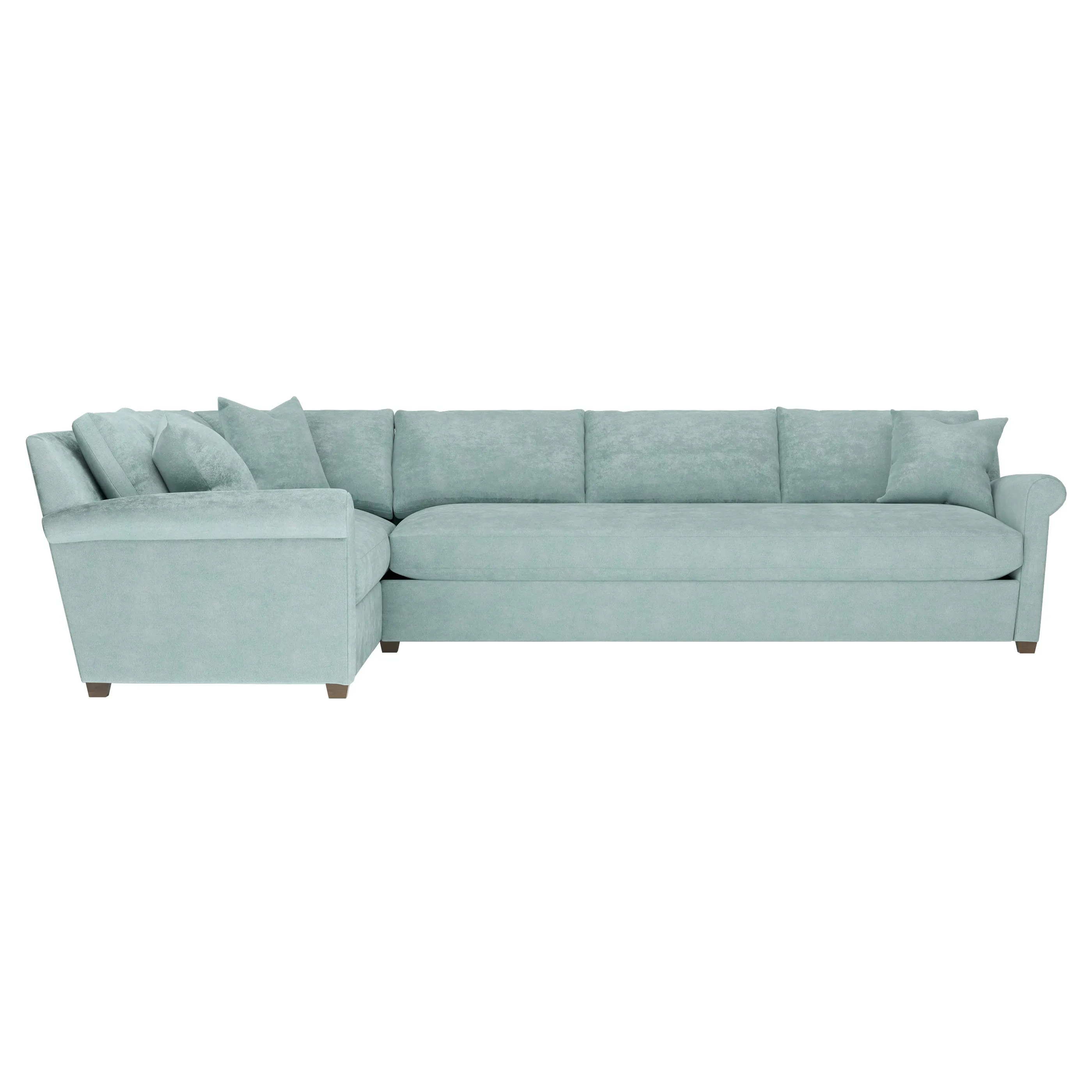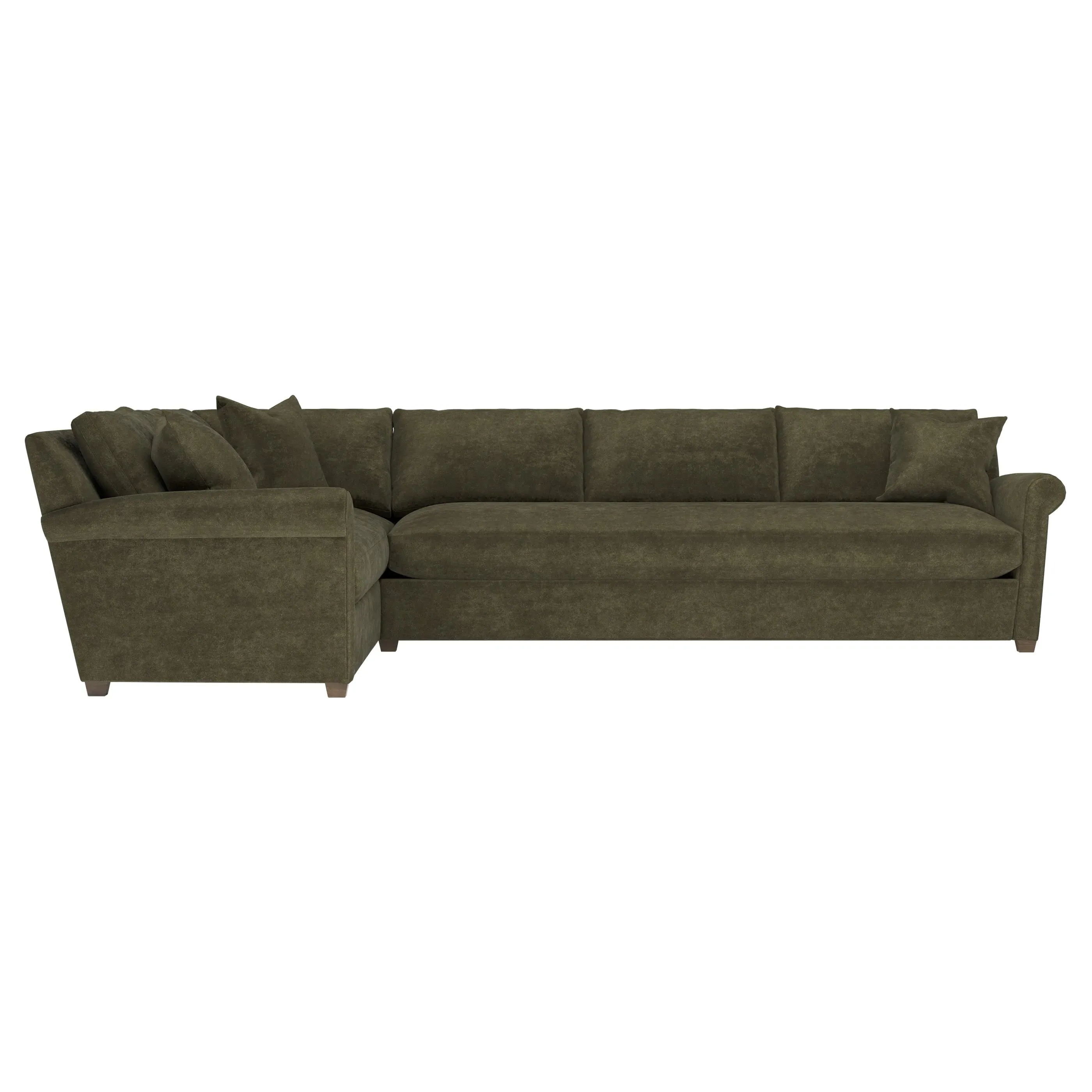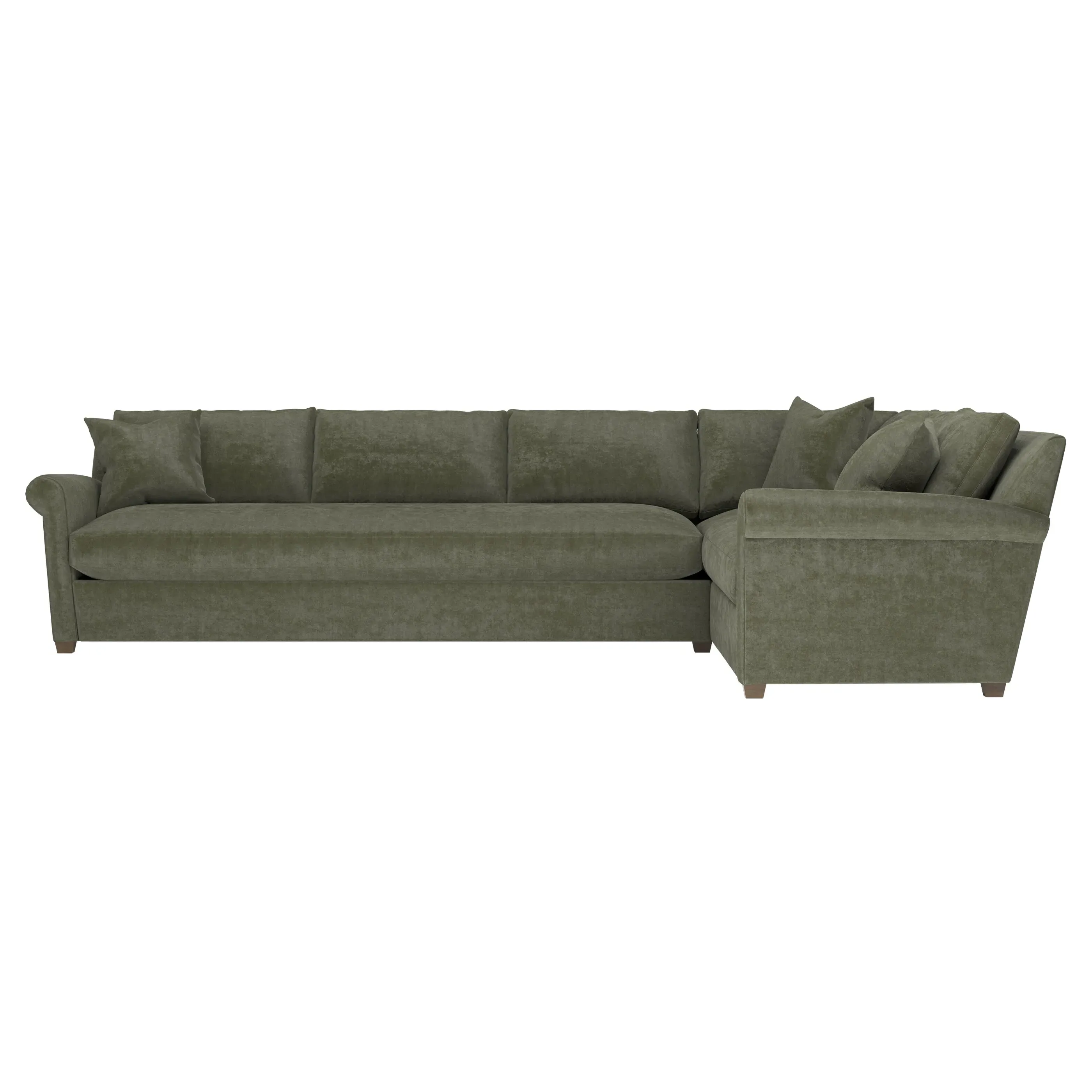 <b>Overall Dimensions:</b> 140" W x 108" D x 36" H. <b>End Sofa with Corner Dimensions:</b> 108" W x 39" D x 36" H; <b>End Sofa Dimensions:</b> 101" W x 39" x 36” H; <b>Seat Dimensions:</b> 23” D x 22” H; <b>Arm Height:</b> 26”; <b>Leg Height:</b> 2”. <b>Materials:</b> FSC®-certified, US-sourced, formaldehyde-free solid kiln-dried hardwood and furniture-grade laminates. <b>Material Finish:</b> Espresso. <b>Pieces Included:</b> Right end sofa with corner, left end sofa.