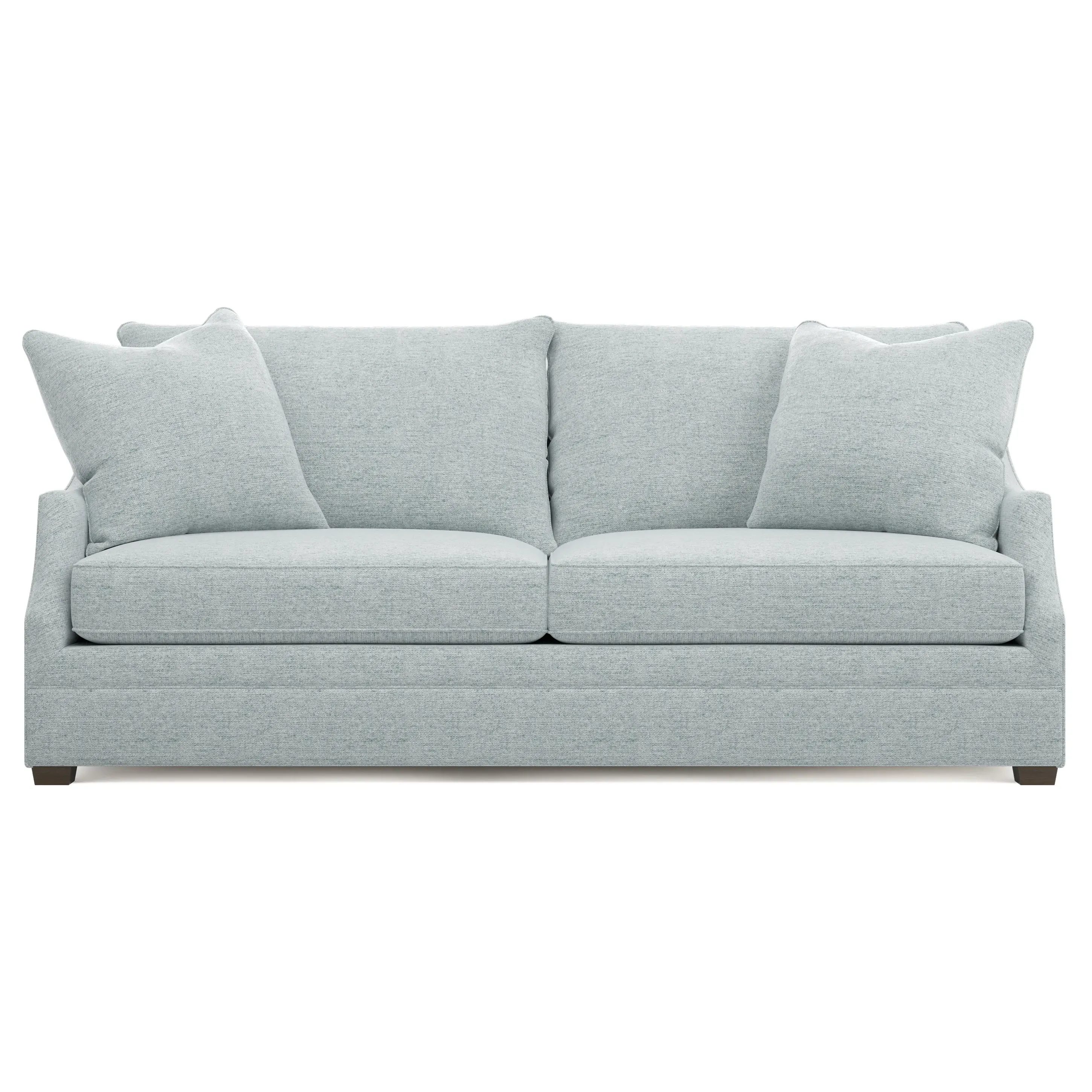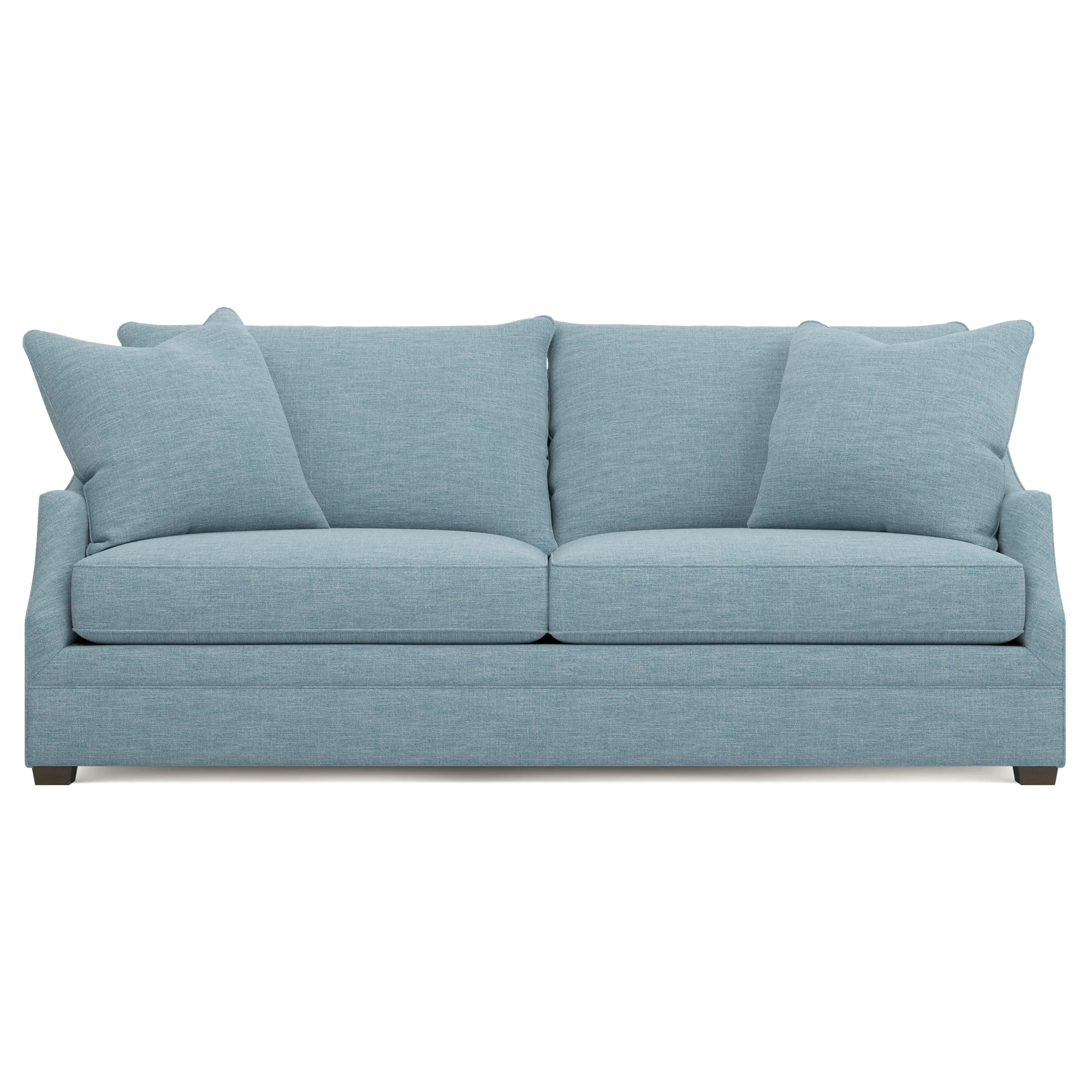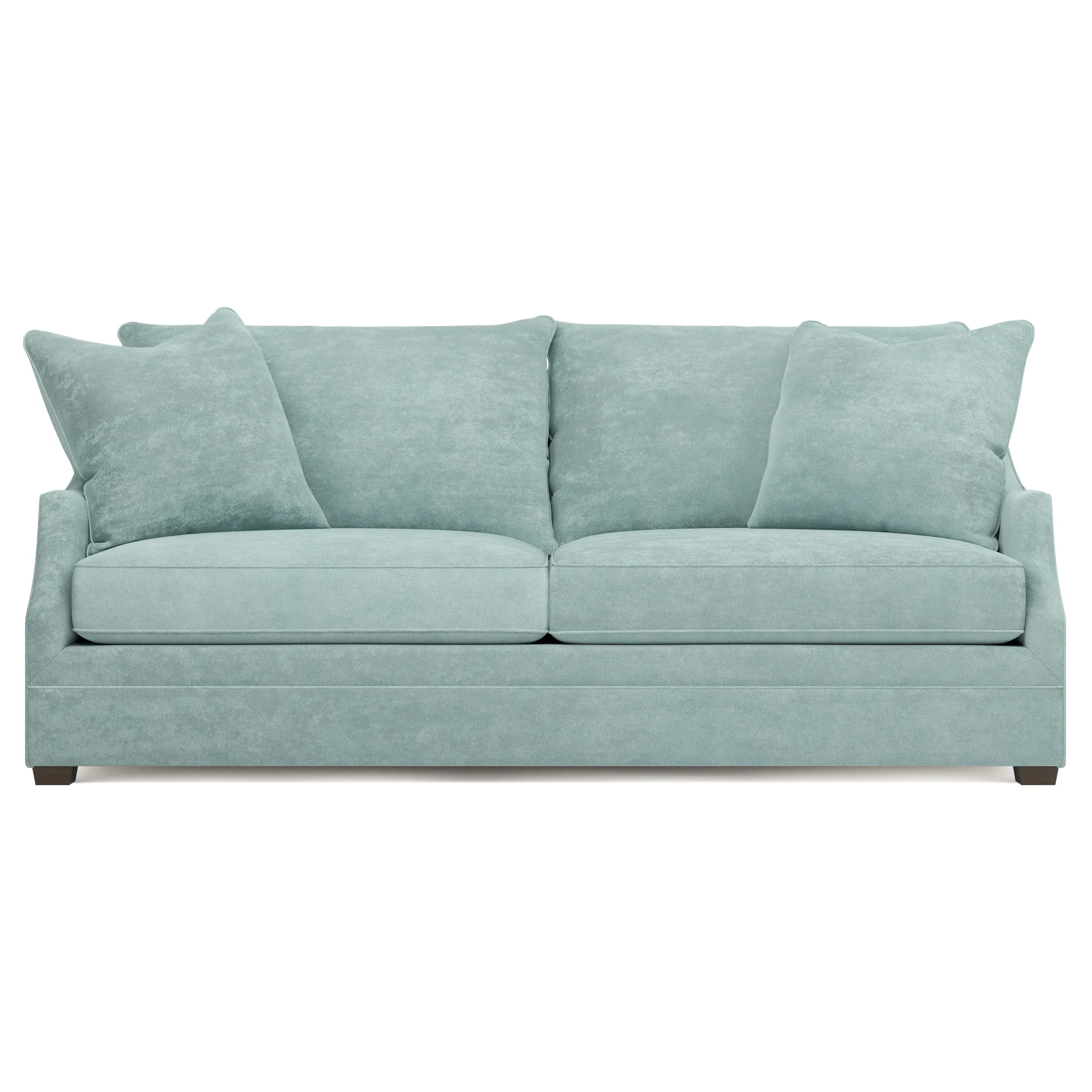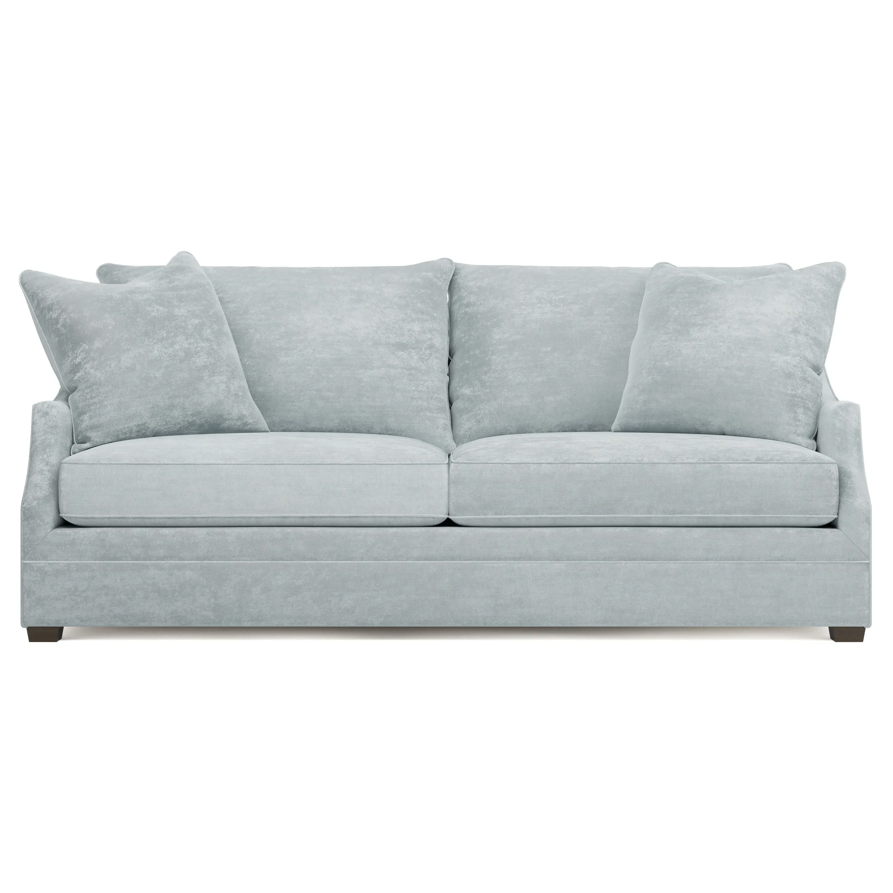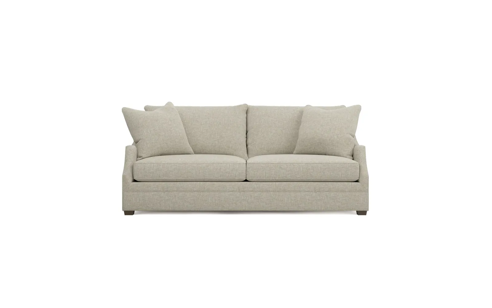 The Romilly sofa combines comfort with its high-resiliency foam core wrapped in super soft foam, featuring channel-quilted casings filled with a blend of fiber, down, and feather. Its FSC-certified kiln-dried hardwood frame provides lasting durability, while the espresso finish adds warmth to the construction. The performance fabric suits daily use, and the low-profile legs ensure stability. W229 x D99 x H102 cm.
