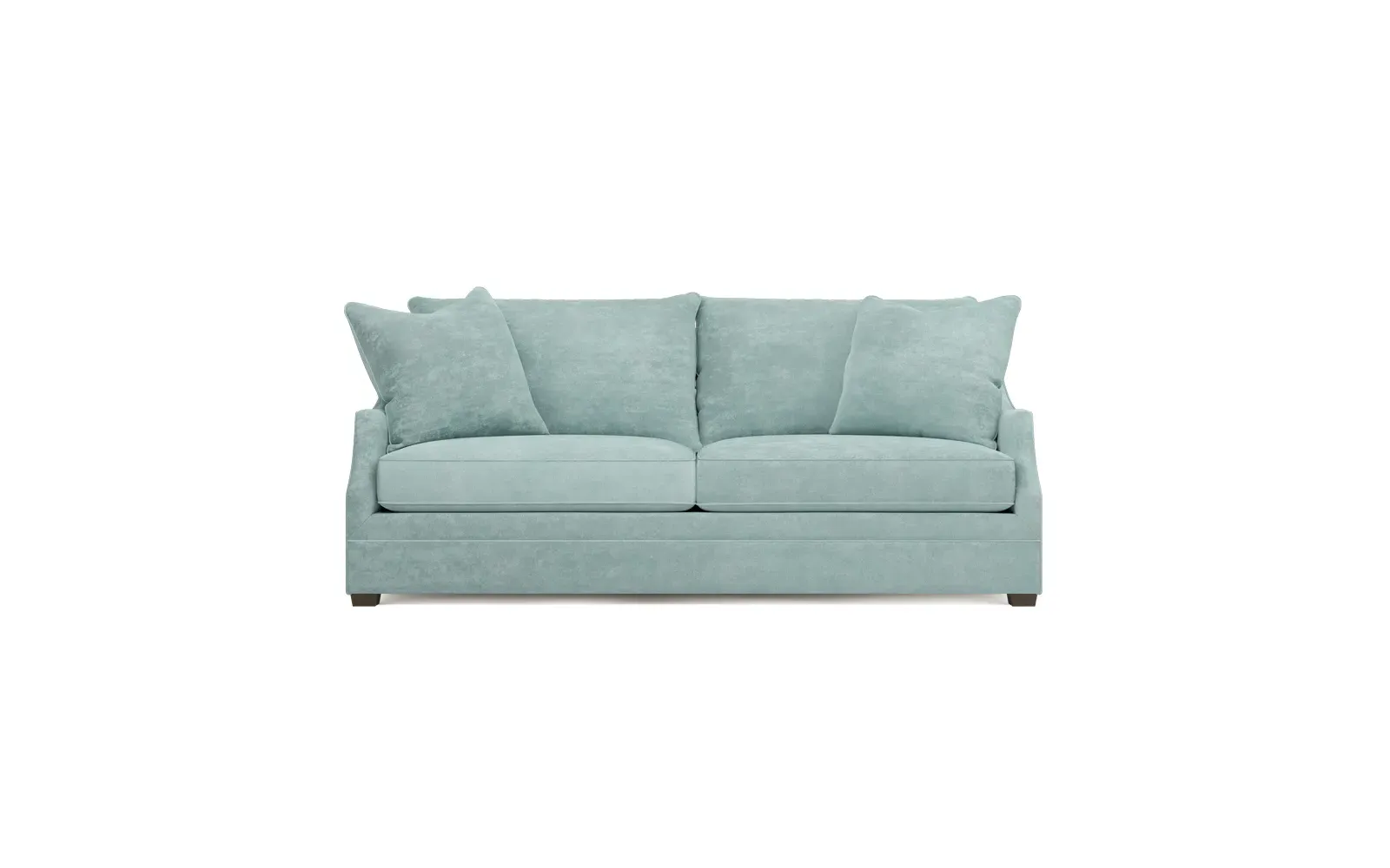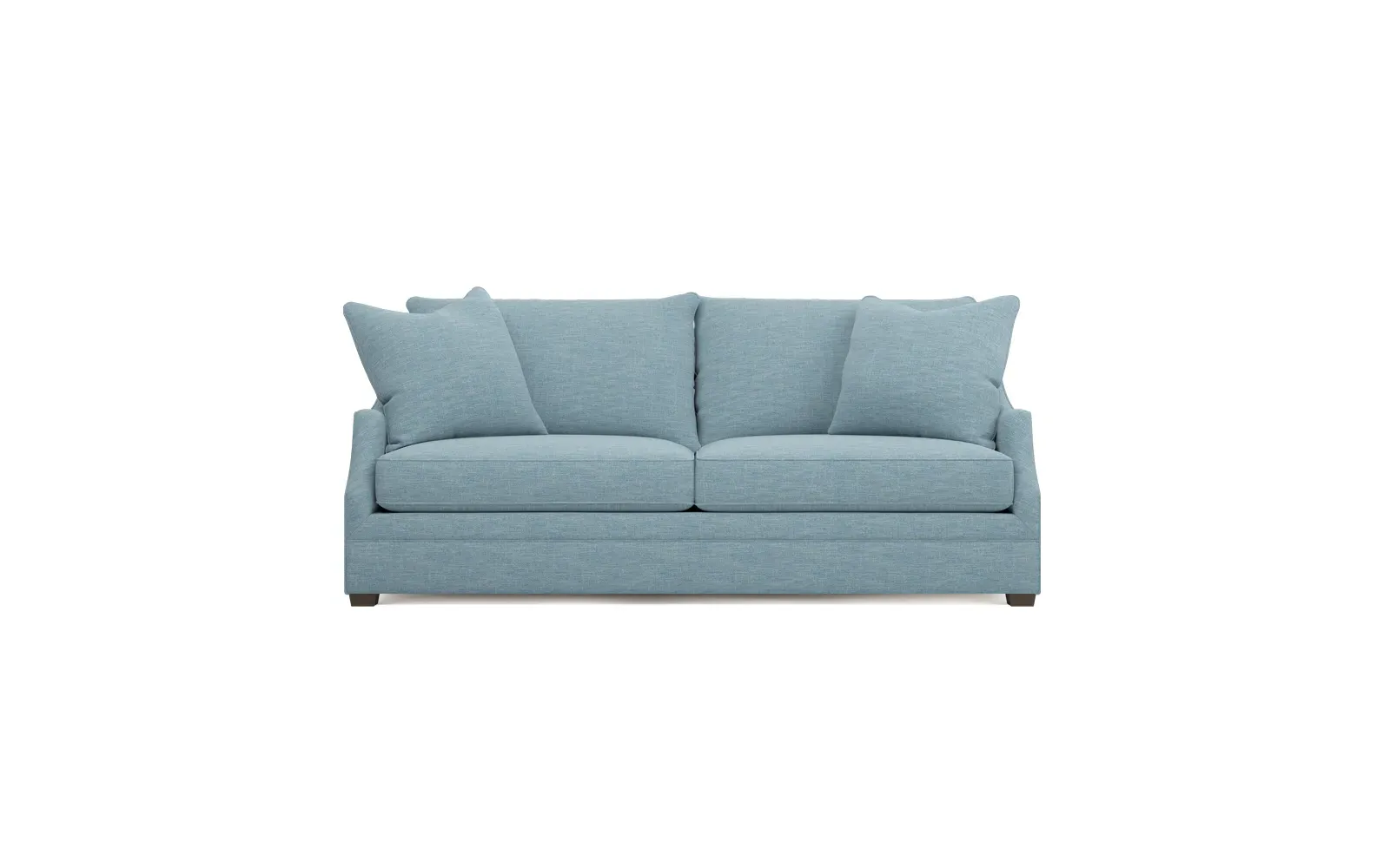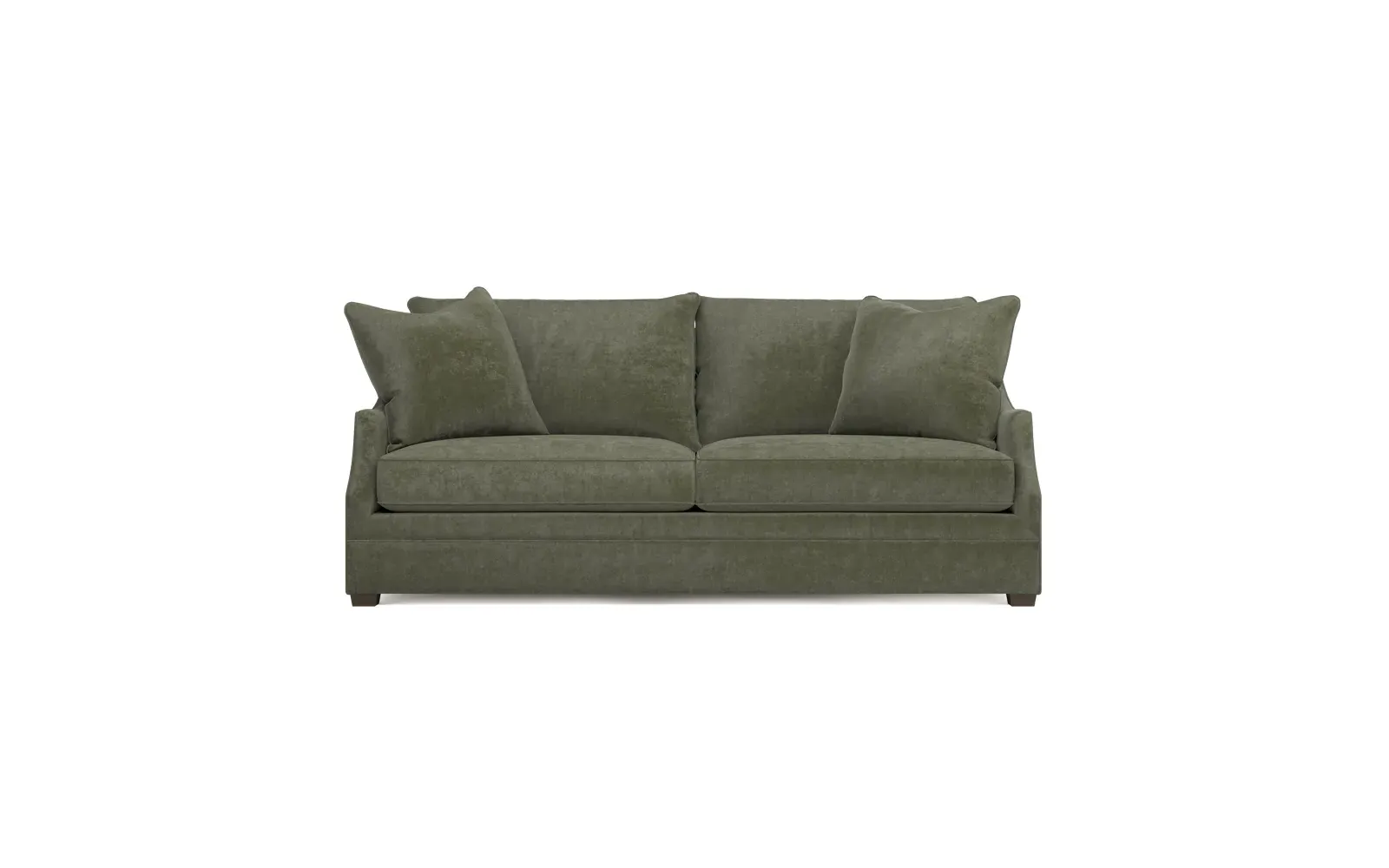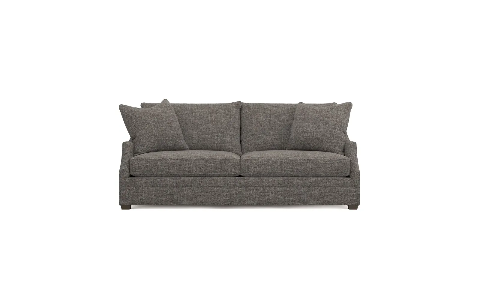 <b>Overall Dimensions:</b> 90" W x 39" D x 40" H. <b>Seat Dimensions:</b> 81” W x 23” D x 21” H; <b>Arm Height:</b> 24”; <b>Leg Height:</b> 2". <b>Materials:</b> FSC®-certified, US-sourced, formaldehyde-free solid kiln-dried hardwood and furniture-grade laminates. <b>Material Finish:</b> Espresso. <b>Cushion Fill:</b> A CertiPUR-US® certified, high-resiliency foam core wrapped with a super soft foam layer then inserted into a channel-quilted casing filled with a blend of 50% fiber, 5% down, and 45% feather.