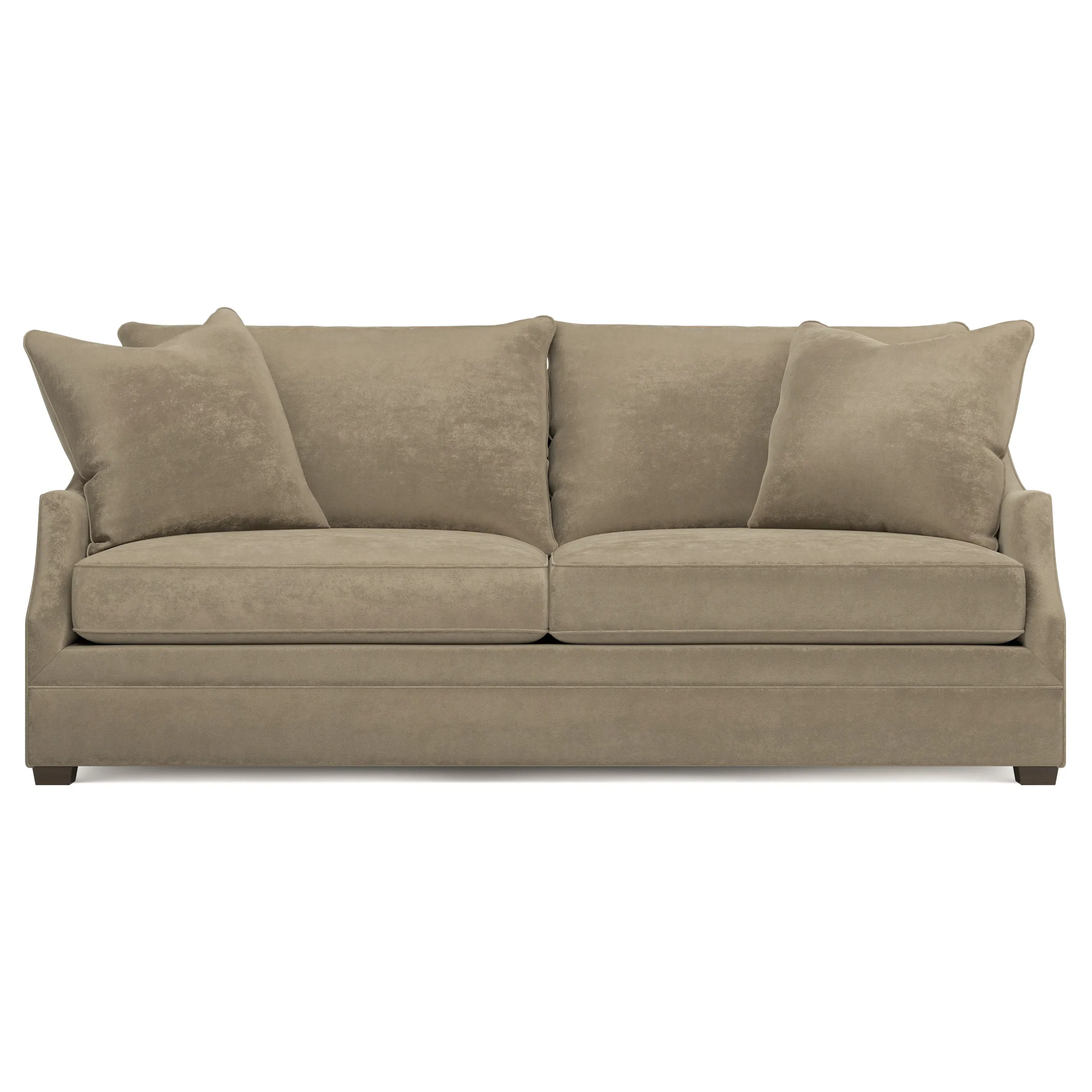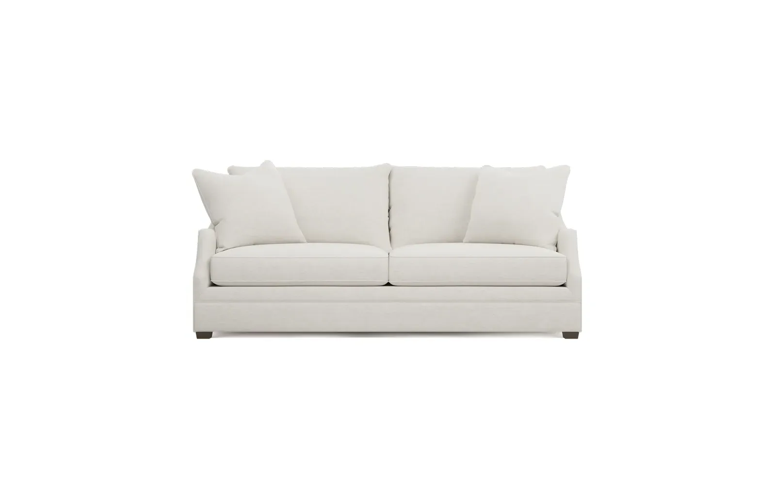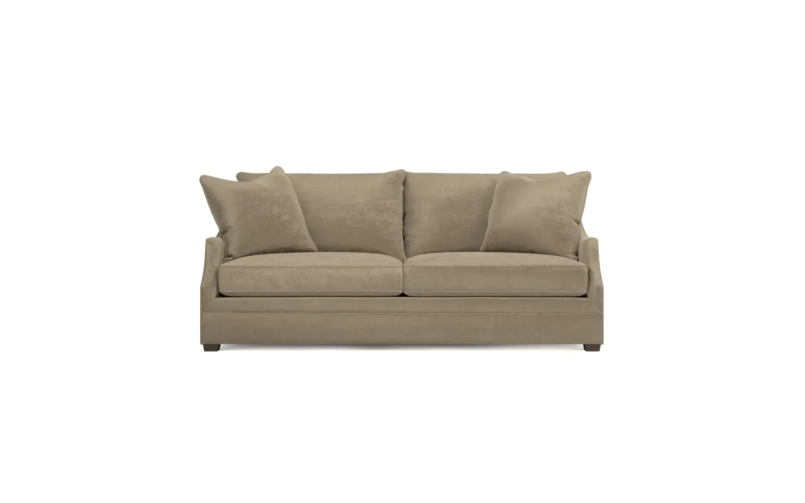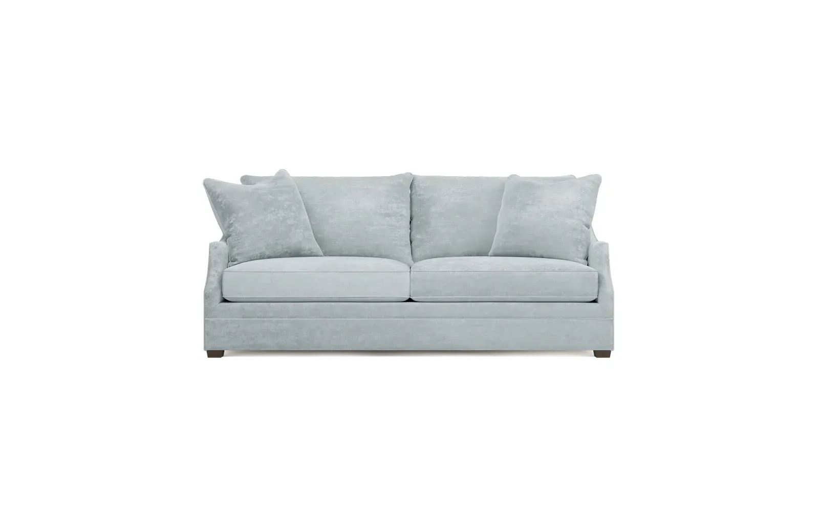 <b>Overall Dimensions:</b> 90" W x 39" D x 40" H. <b>Seat Dimensions:</b> 81” W x 23” D x 21” H; <b>Arm Height:</b> 24”; <b>Leg Height:</b> 2". <b>Materials:</b> FSC®-certified, US-sourced, formaldehyde-free solid kiln-dried hardwood and furniture-grade laminates. <b>Material Finish:</b> Espresso. <b>Cushion Fill:</b> A CertiPUR-US® certified, high-resiliency foam core wrapped with a super soft foam layer then inserted into a channel-quilted casing filled with a blend of 50% fiber, 5% down, and 45% feather.